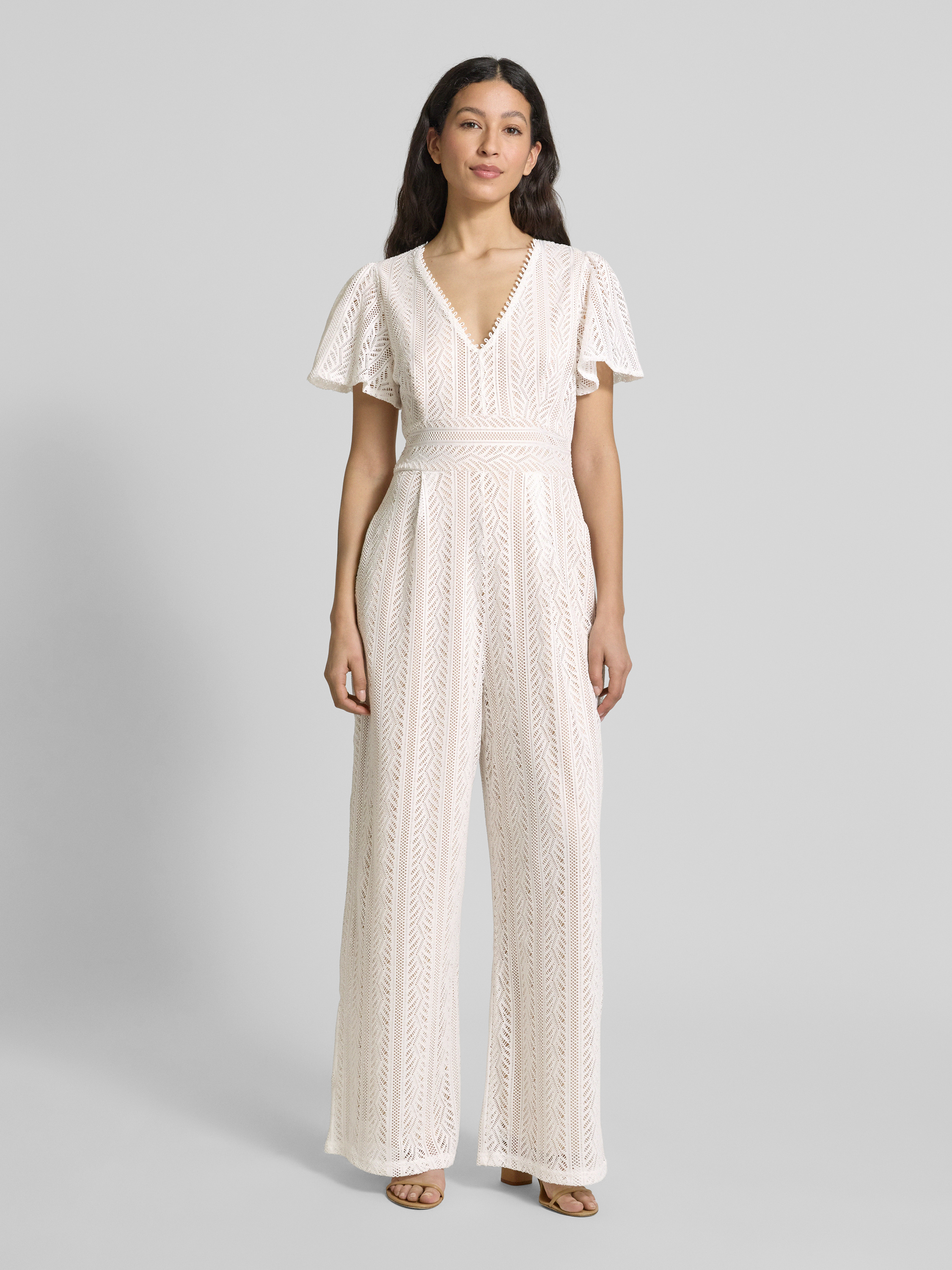 Jumpsuit met V-hals in offwhite