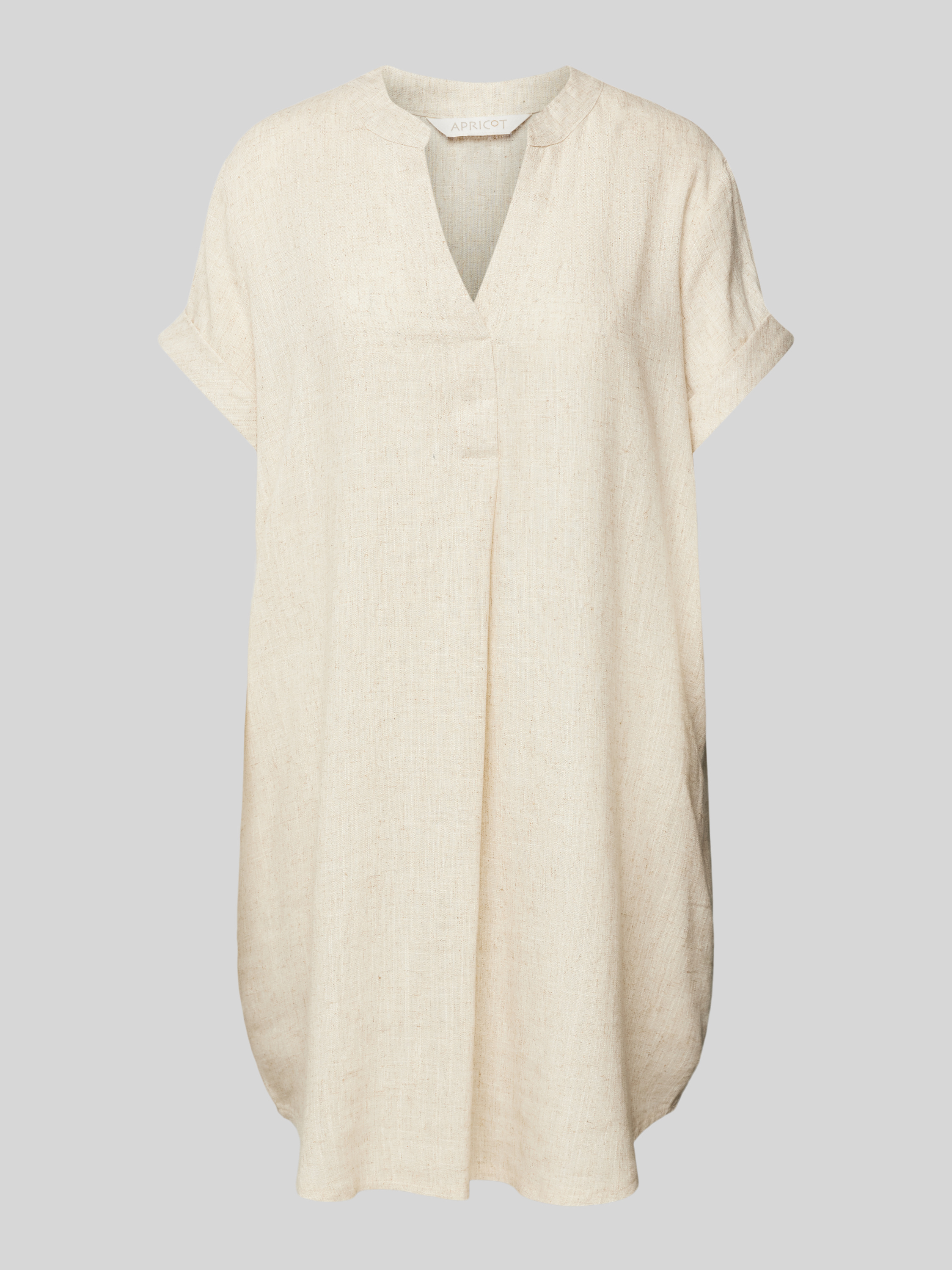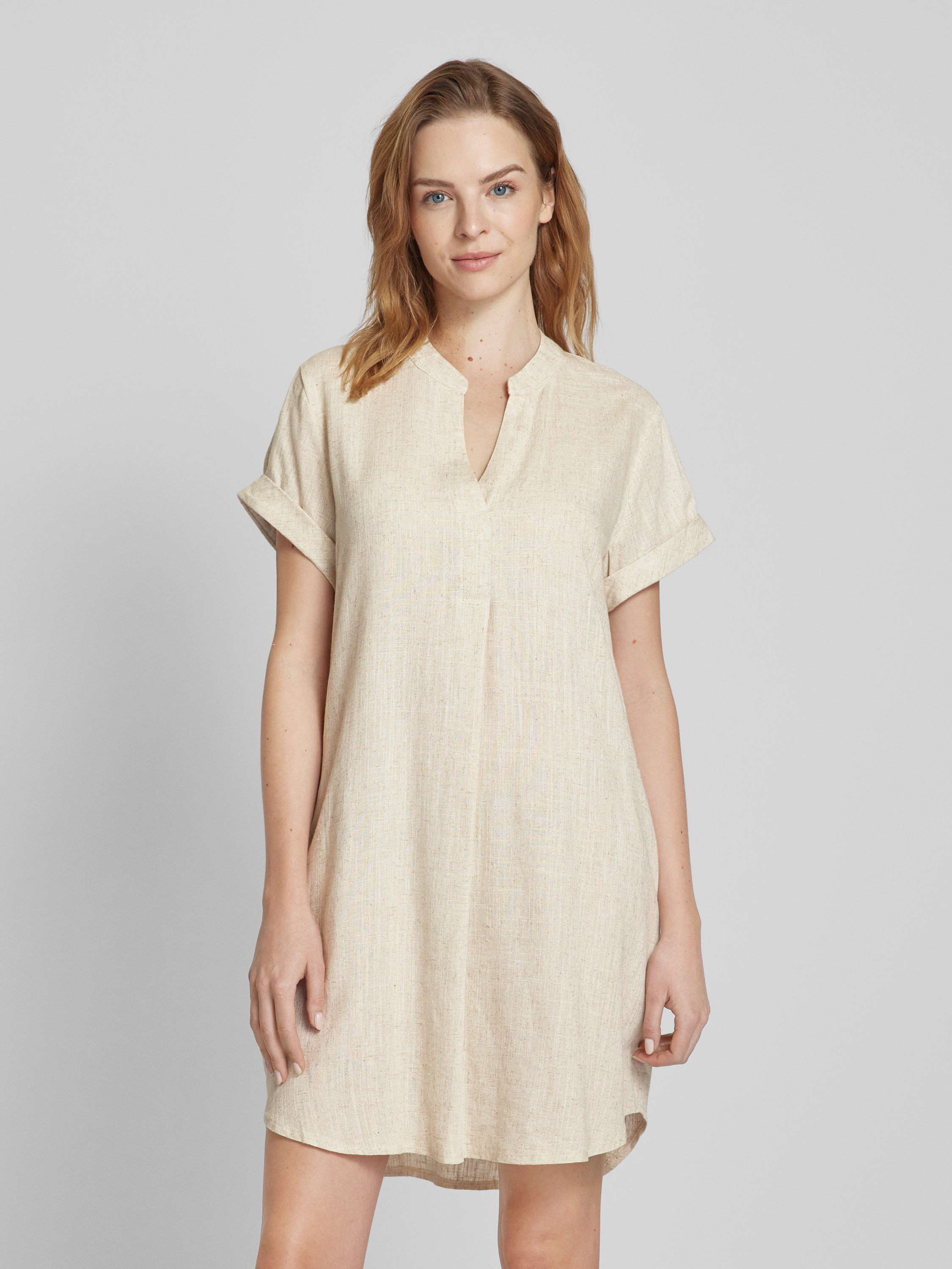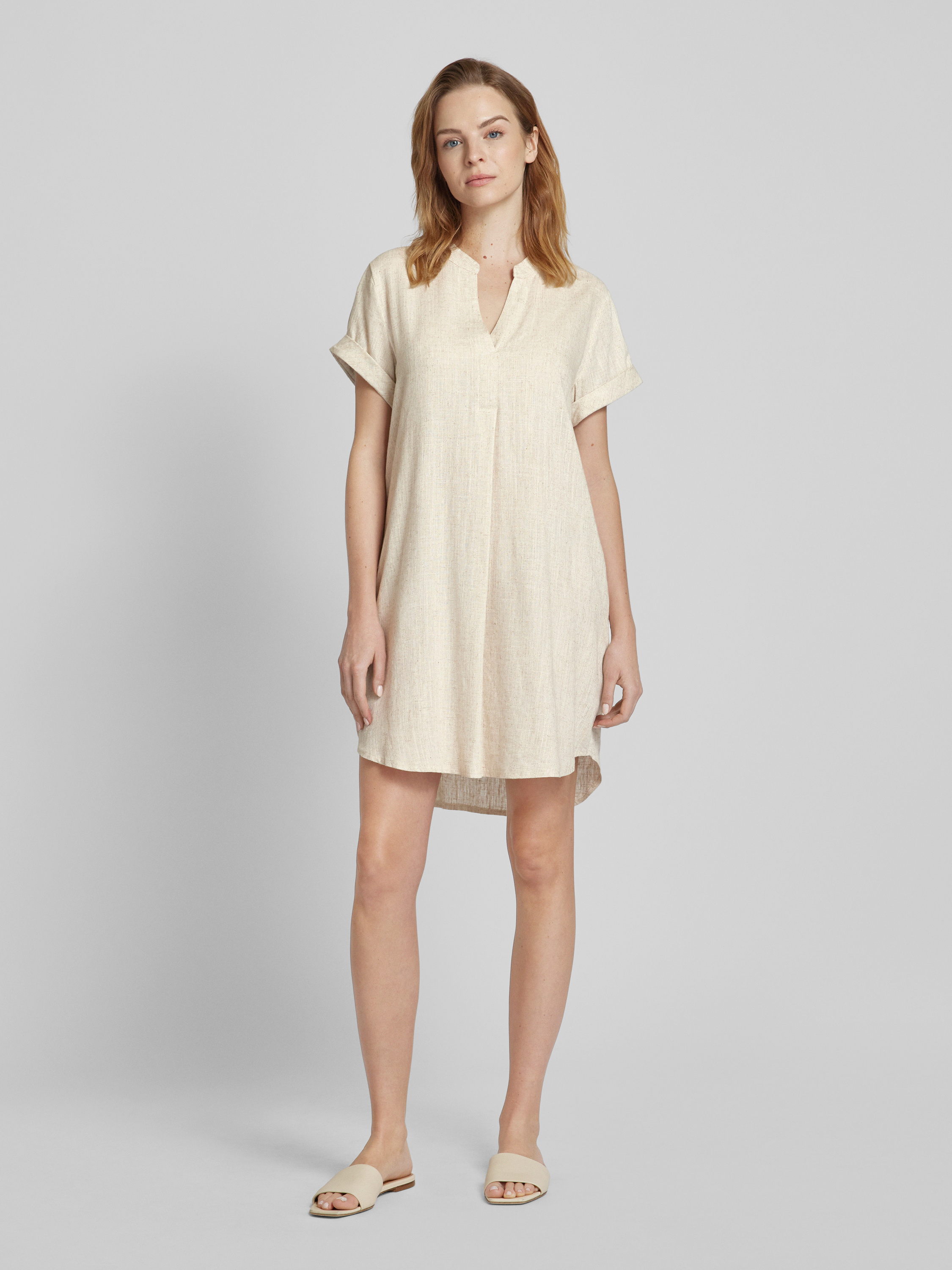 Knielange jurk van een mix van viscose en linnen in zand gemêleerd