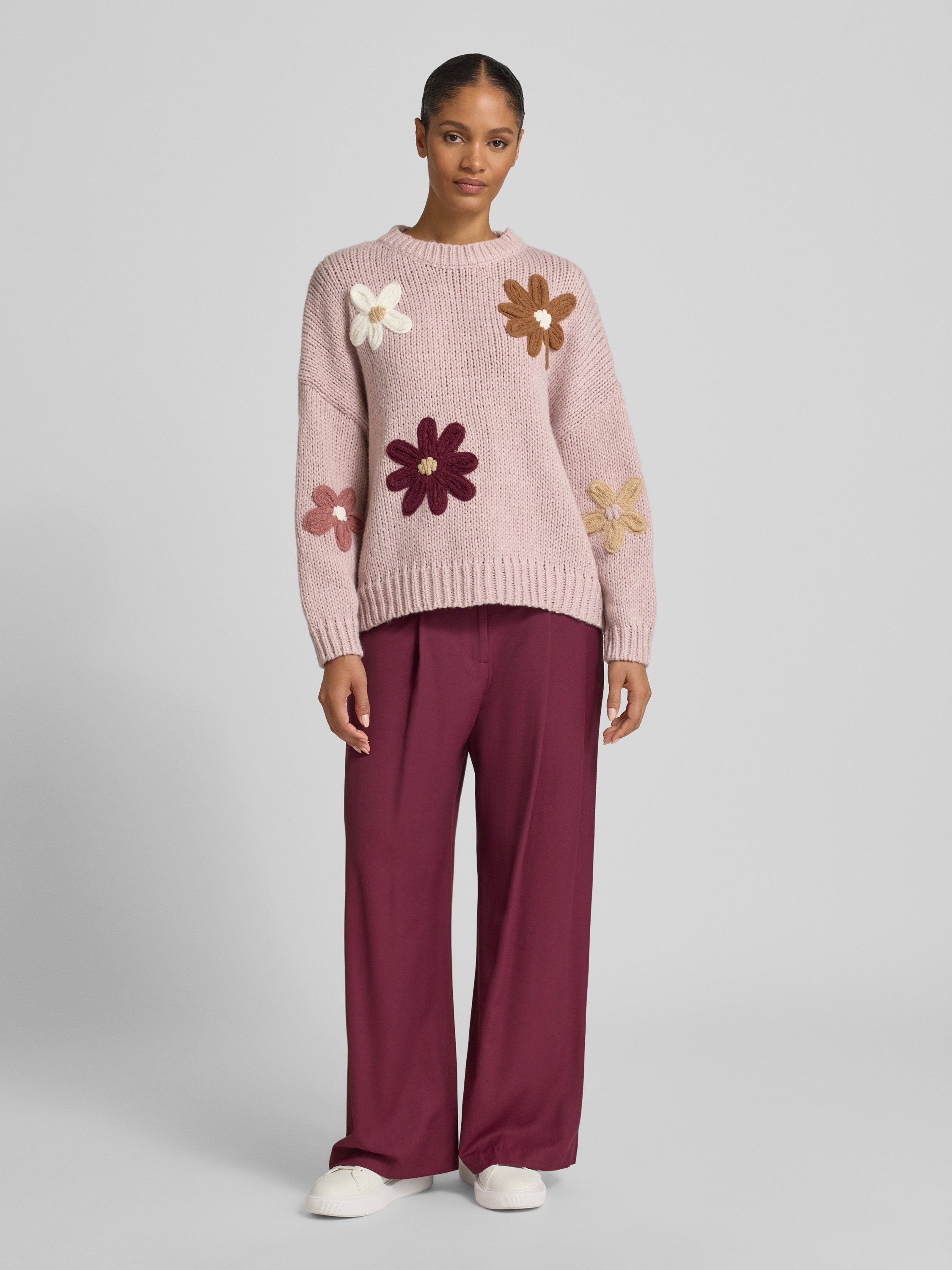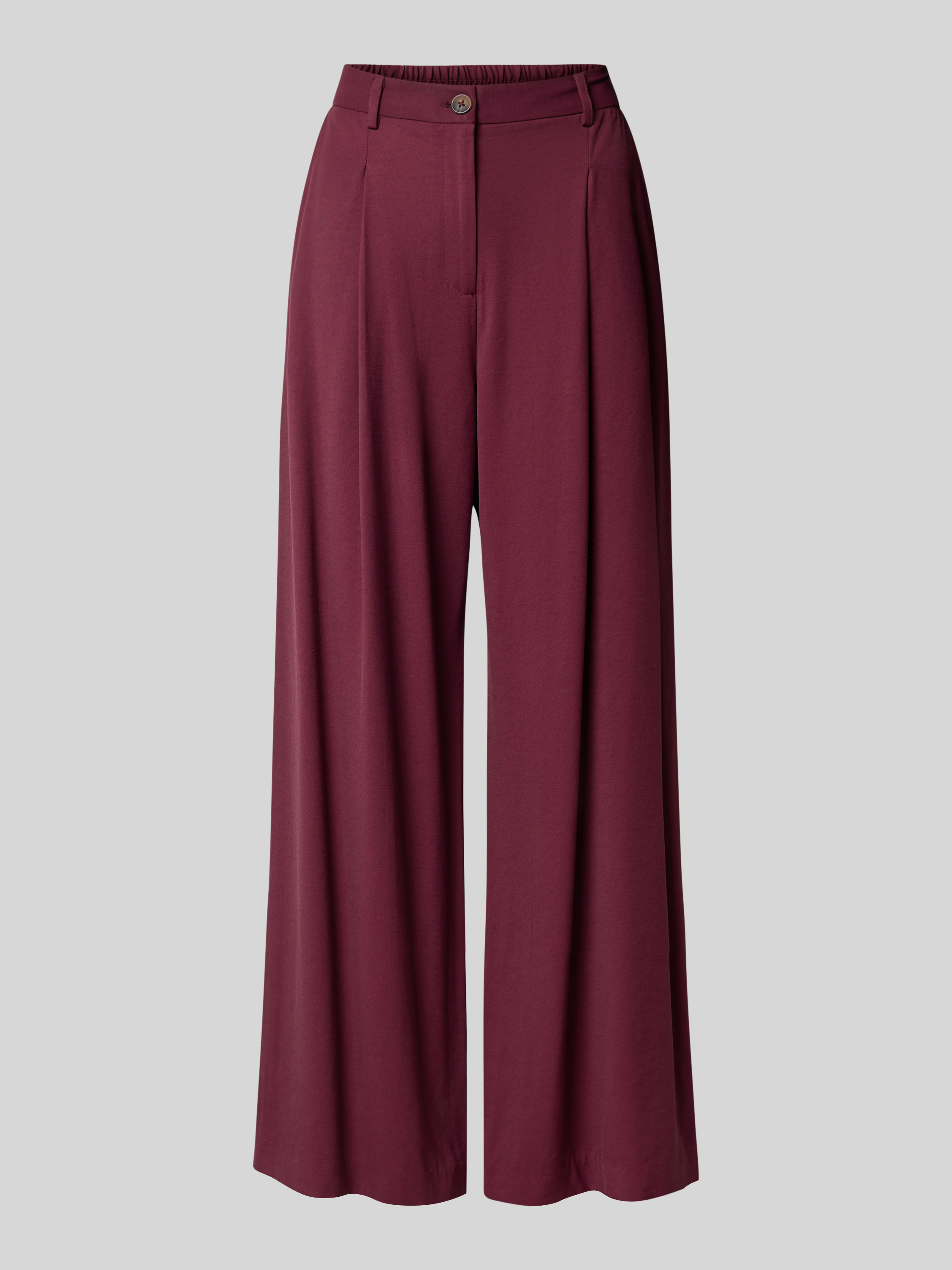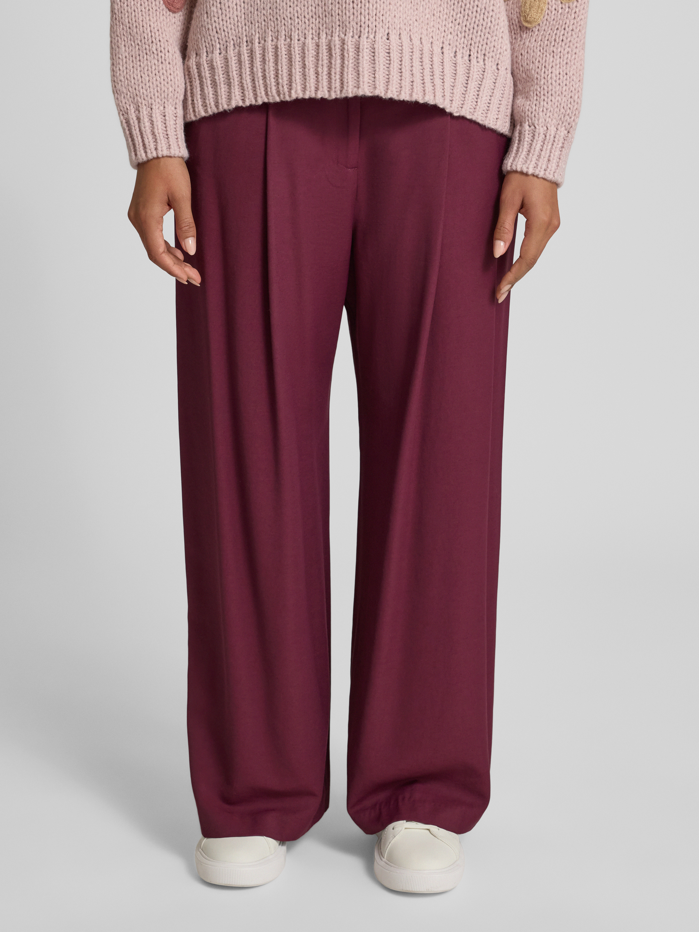 Wide fit stoffen broek van viscosemix met bandplooien in bordeaux