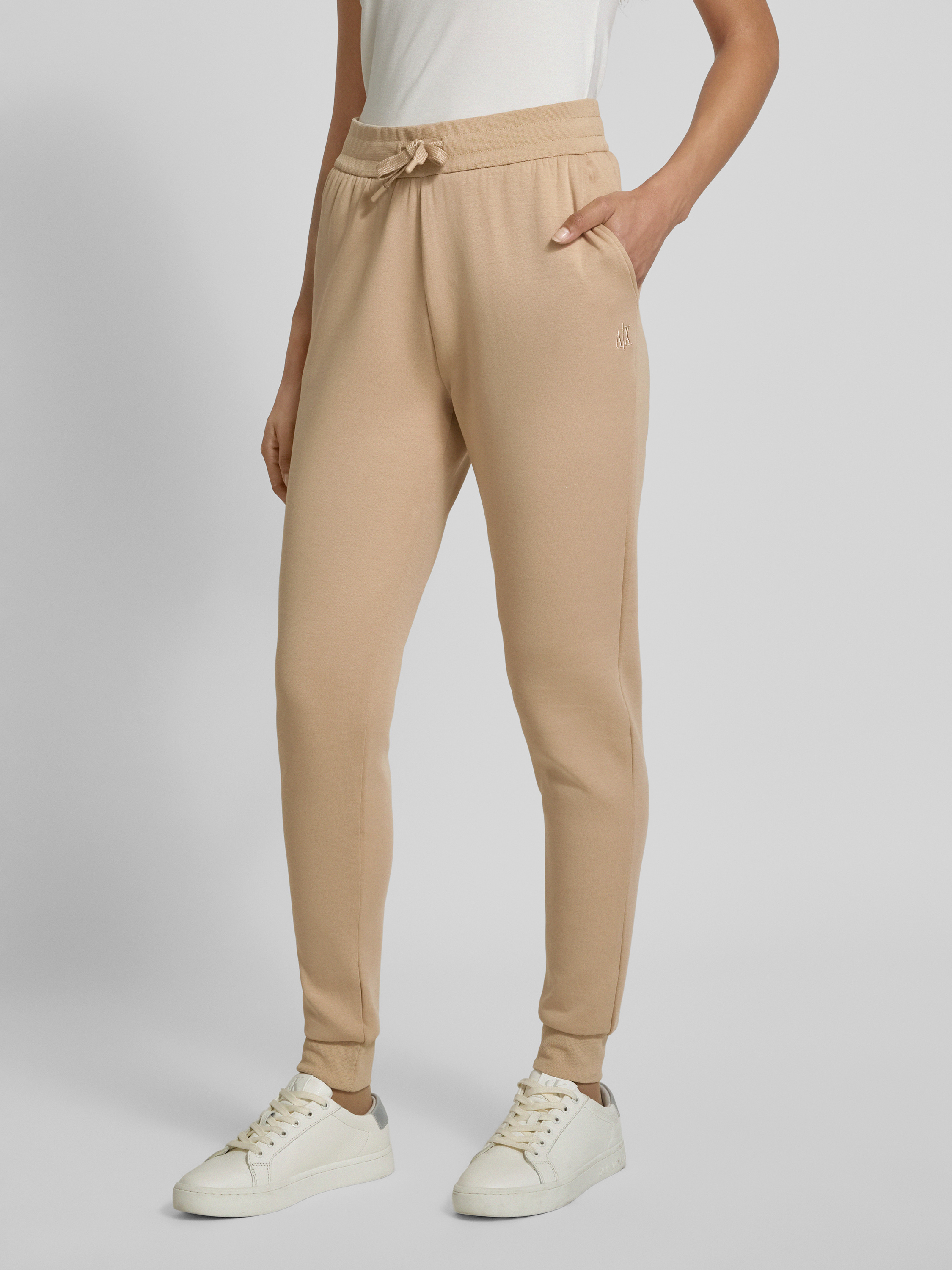 Slim fit sweatpants van katoenmix met tunnelkoord in camel