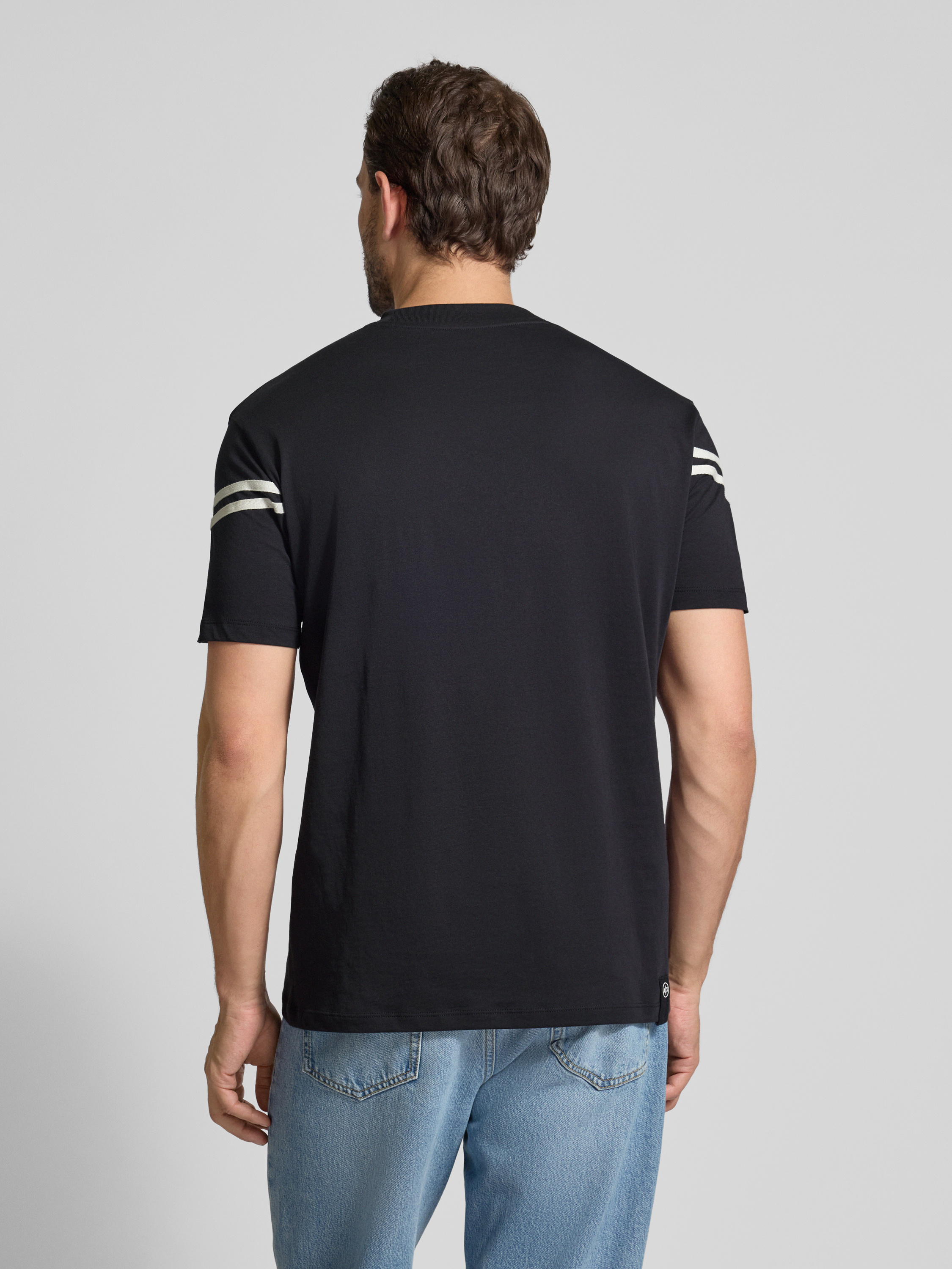 T-shirt met labelstitching en ronde hals in marineblauw