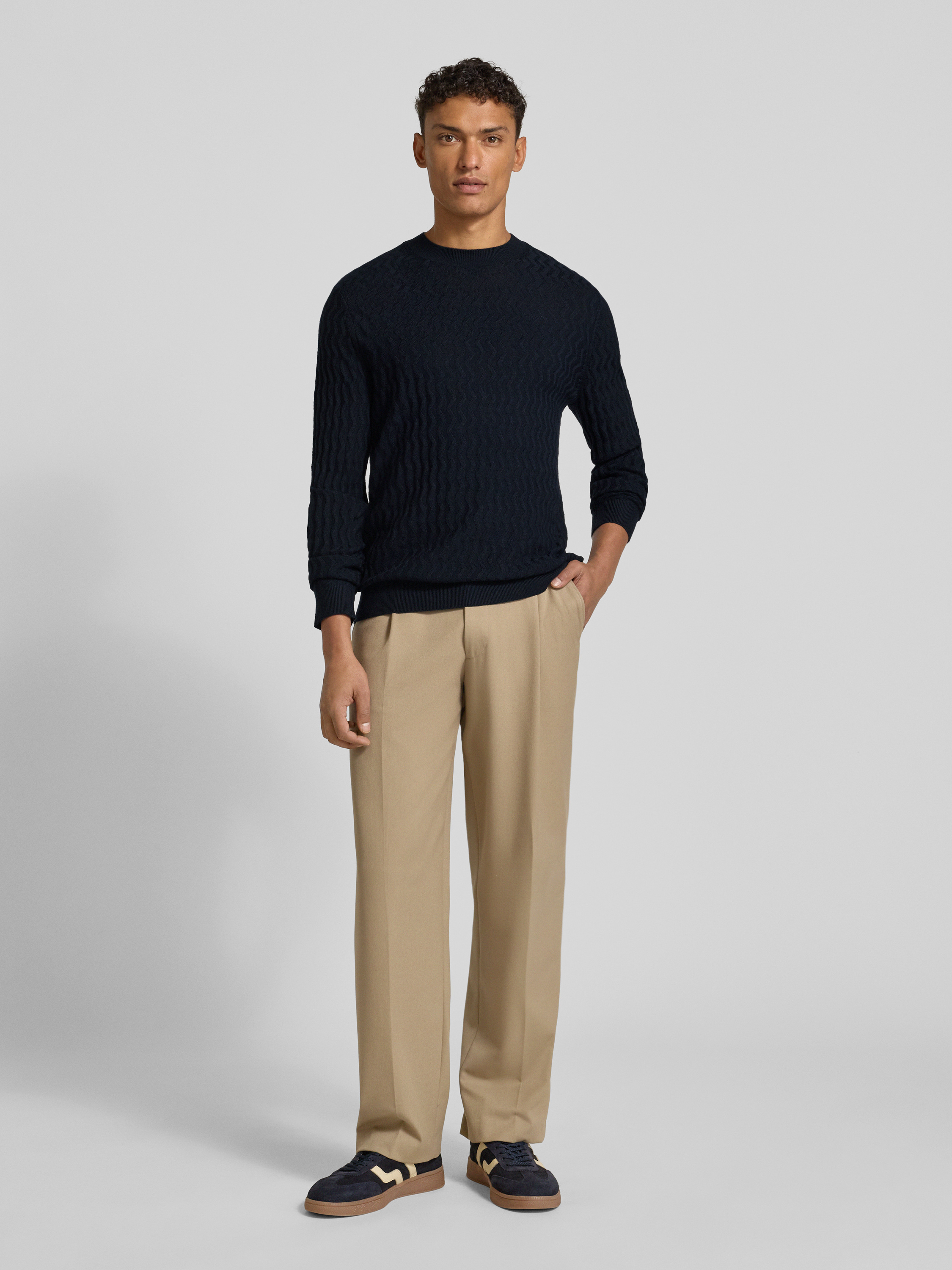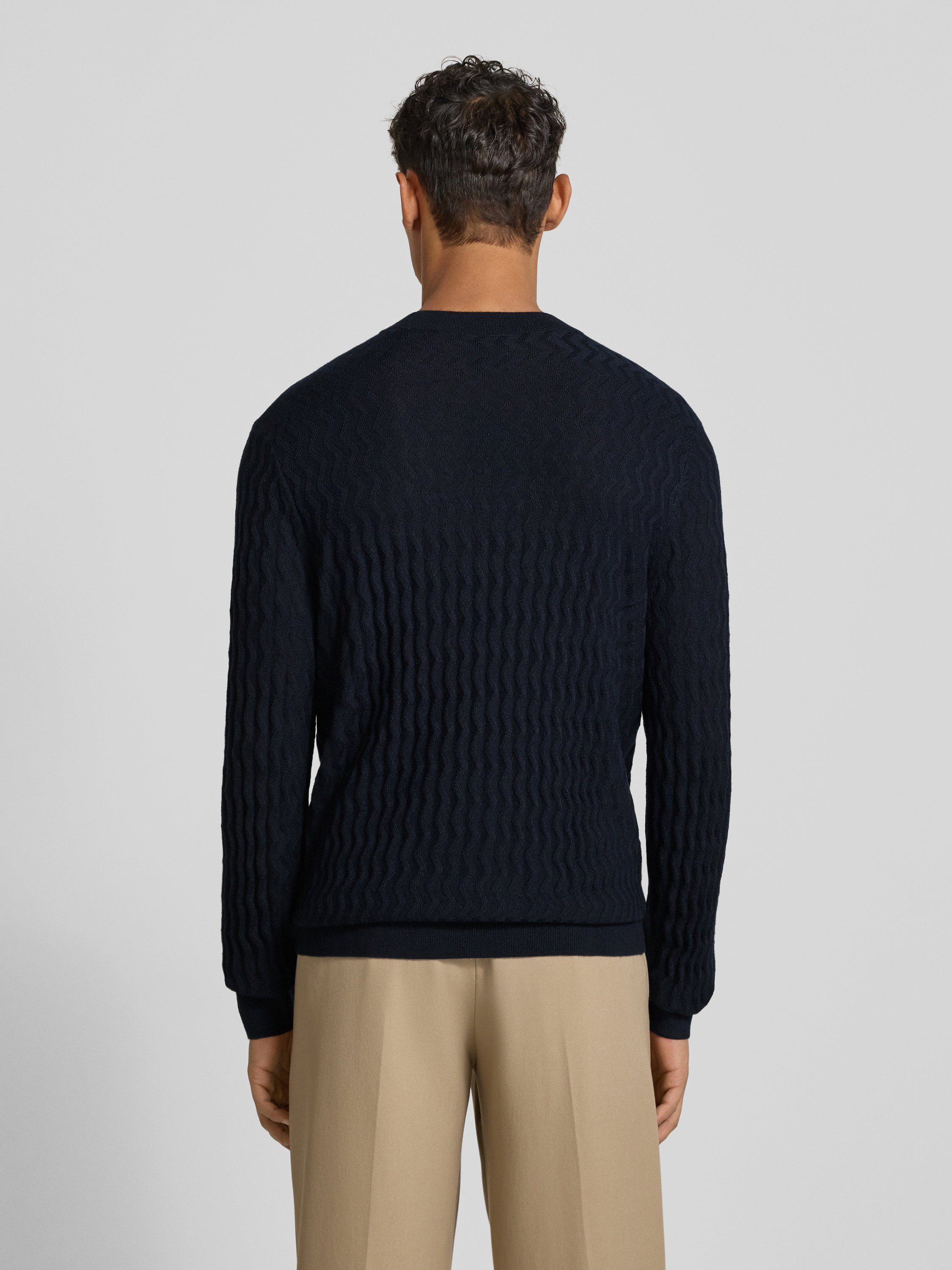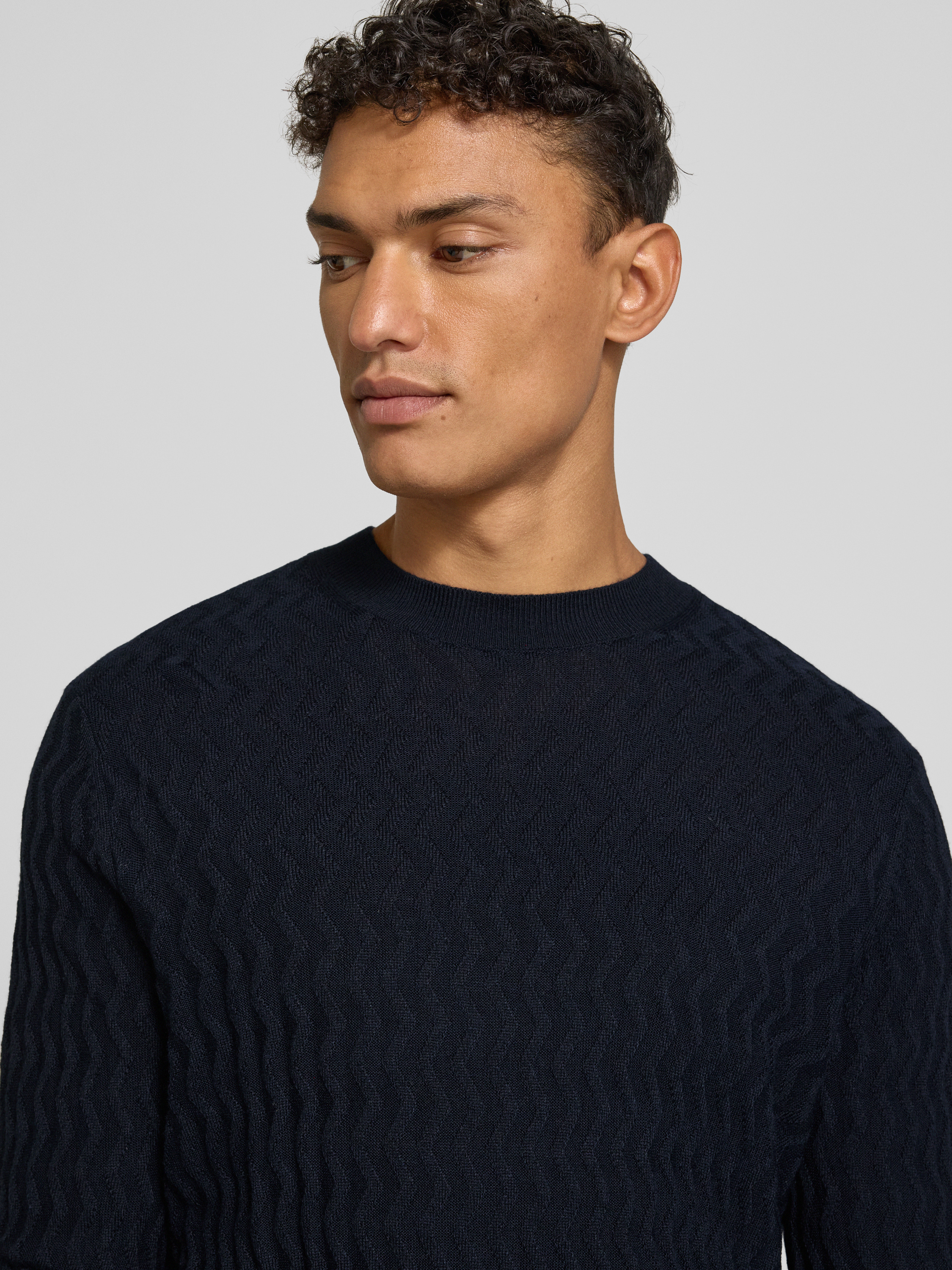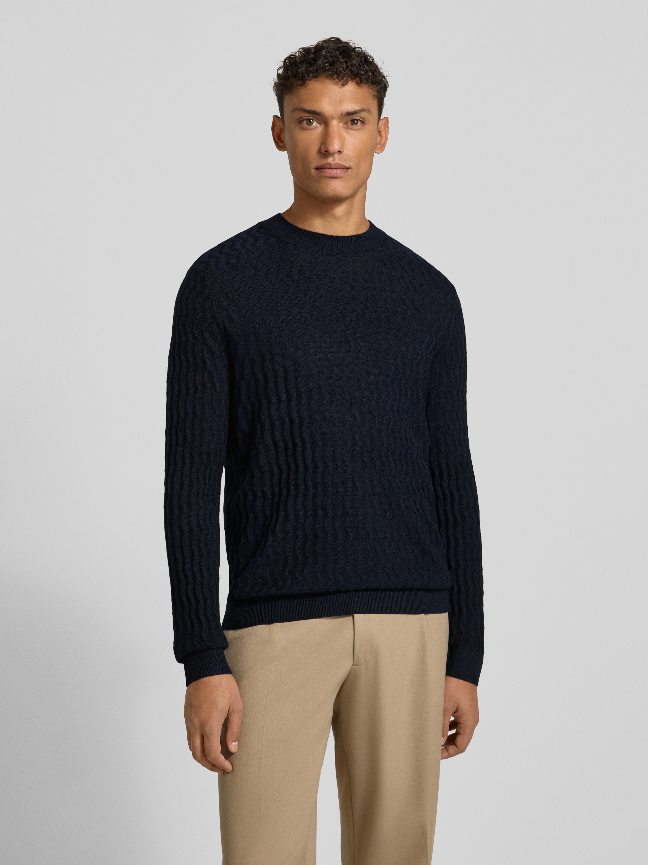 Wollen pullover met structuurmotief in marineblauw