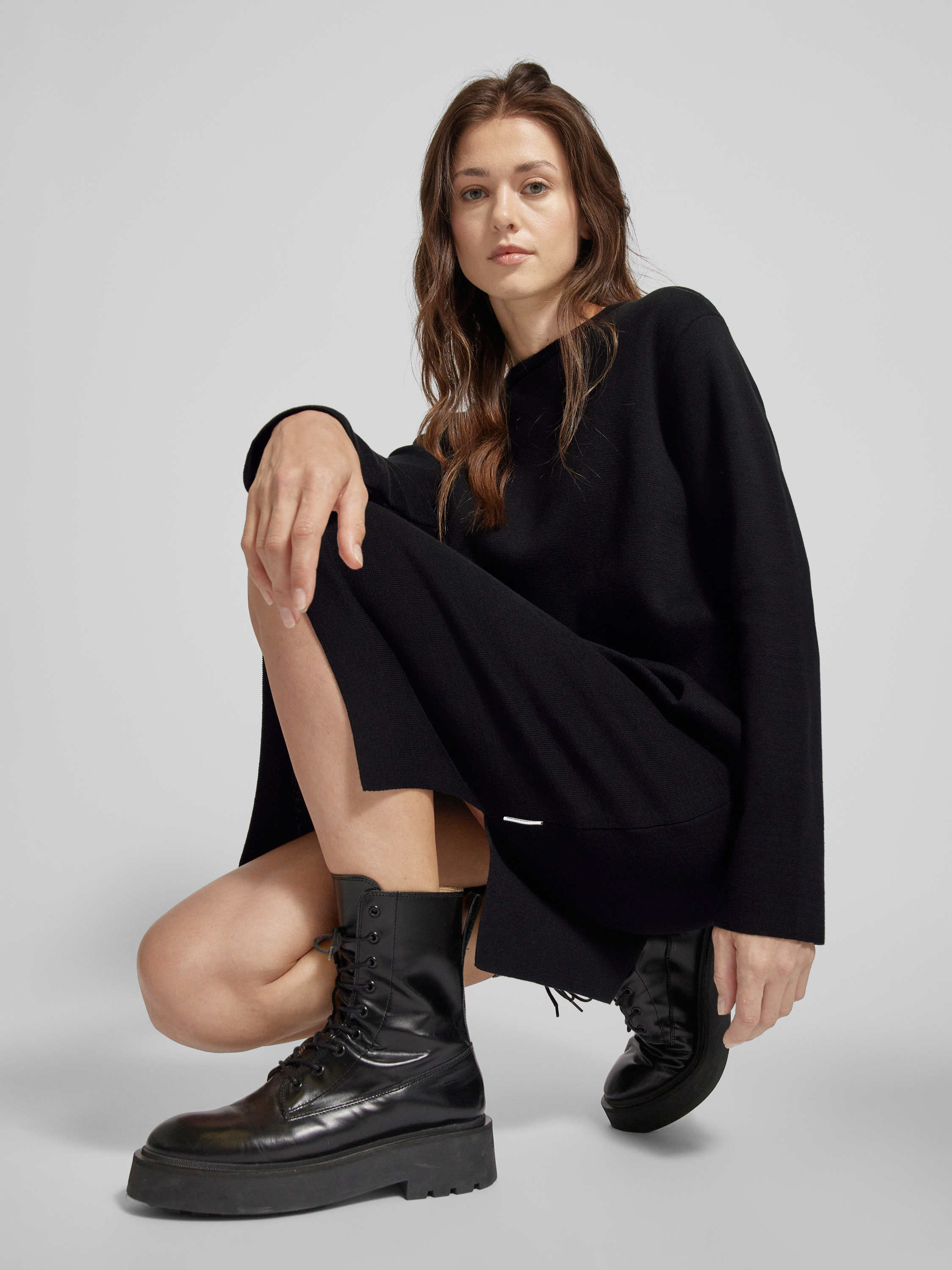 ArmedangelsKnielange gebreide jurk met ronde hals, model 'LIAA' in zwart