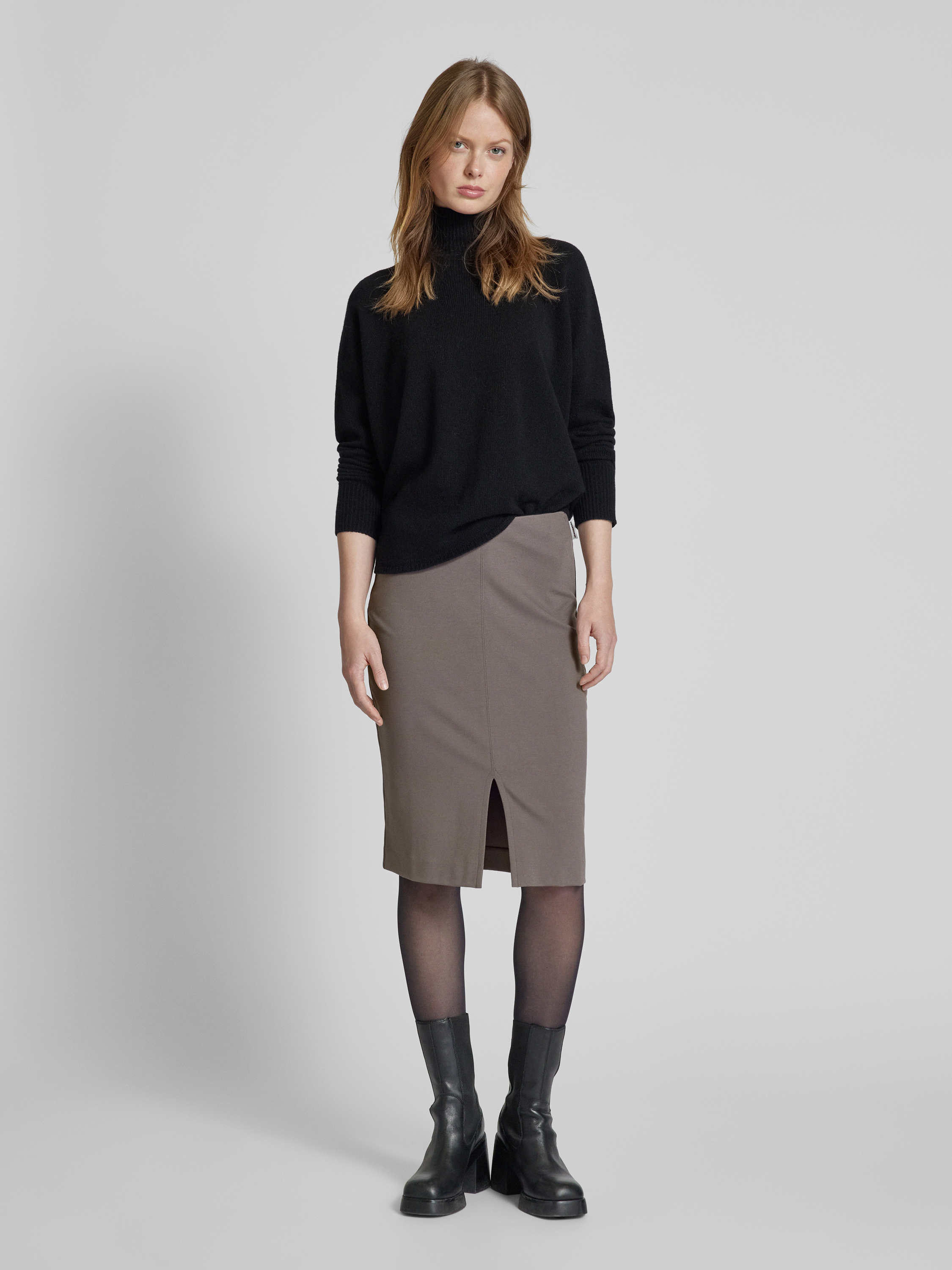 ArmedangelsKnielange rok met loopsplit, model 'MEDITAA' in taupe