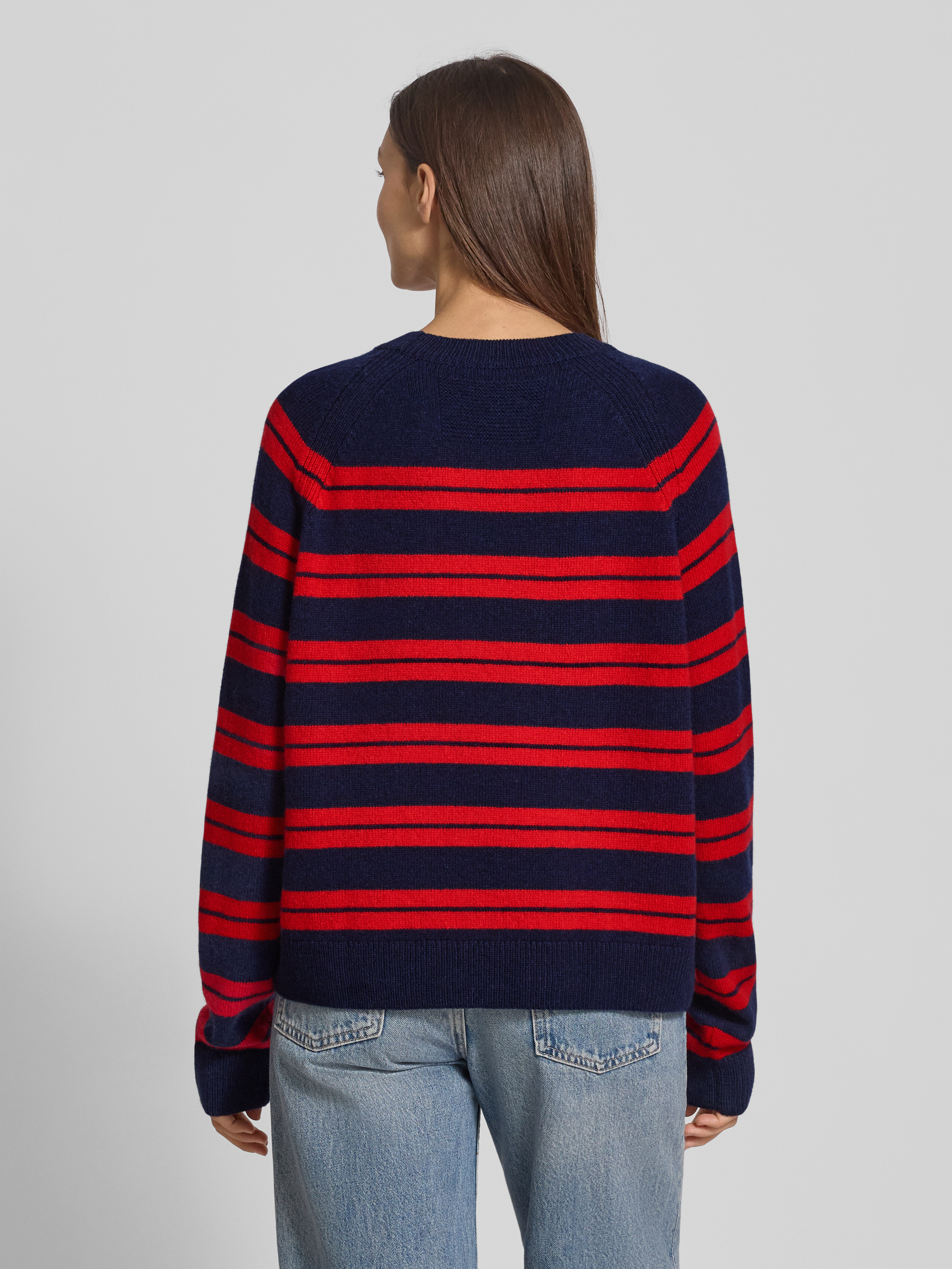 ArmedangelsLoose fit gebreide pullover van pure wolmix, model 'LILIRIAA FINE STRIPES' in marineblauw