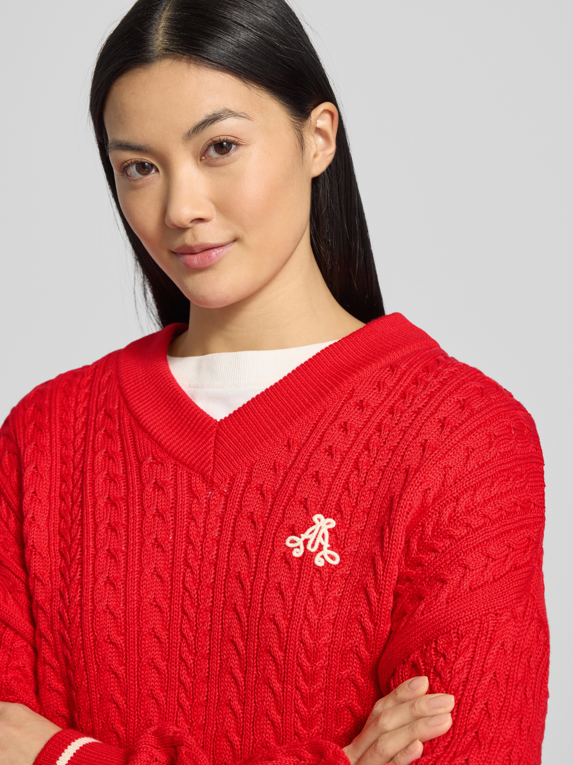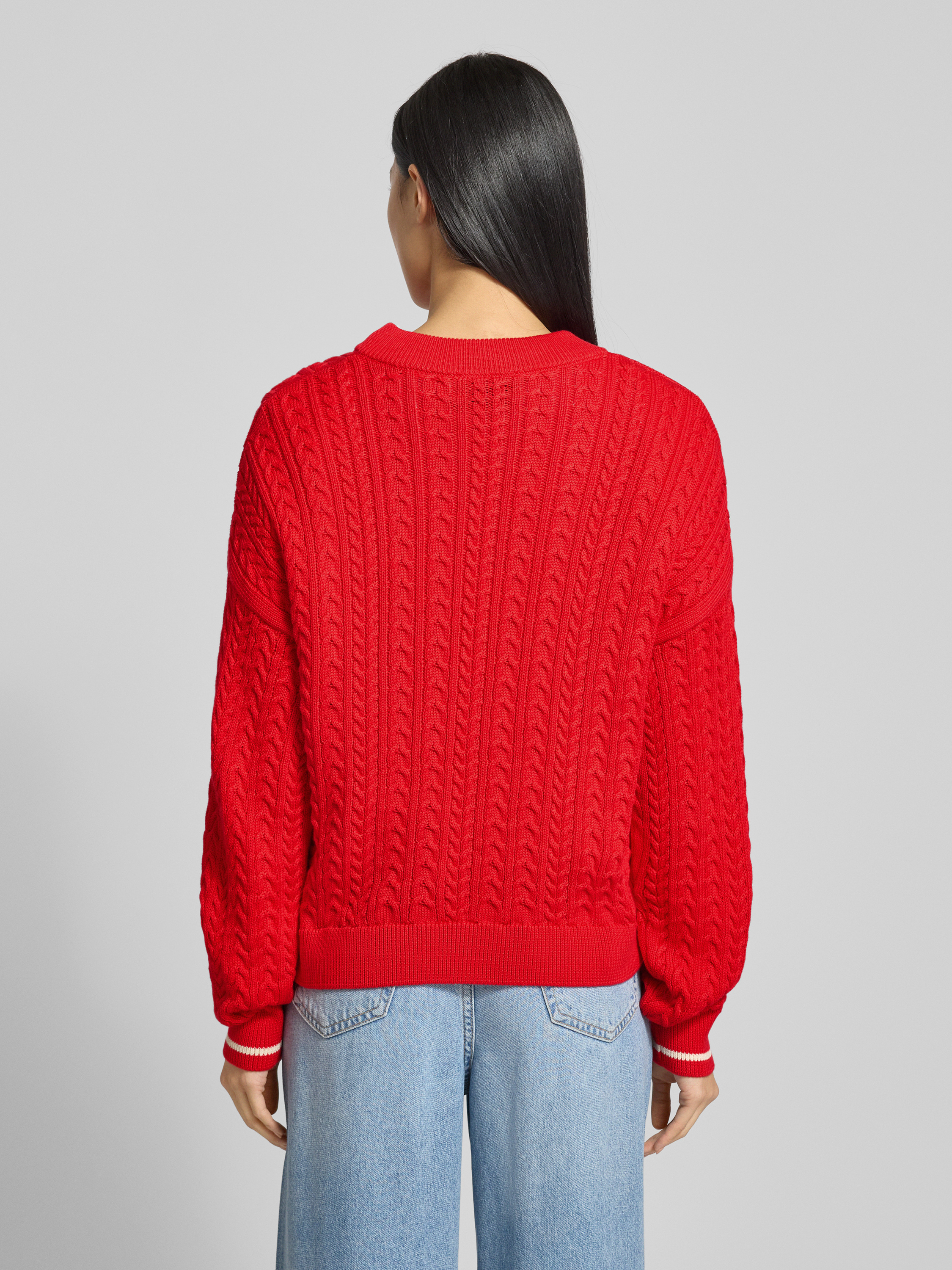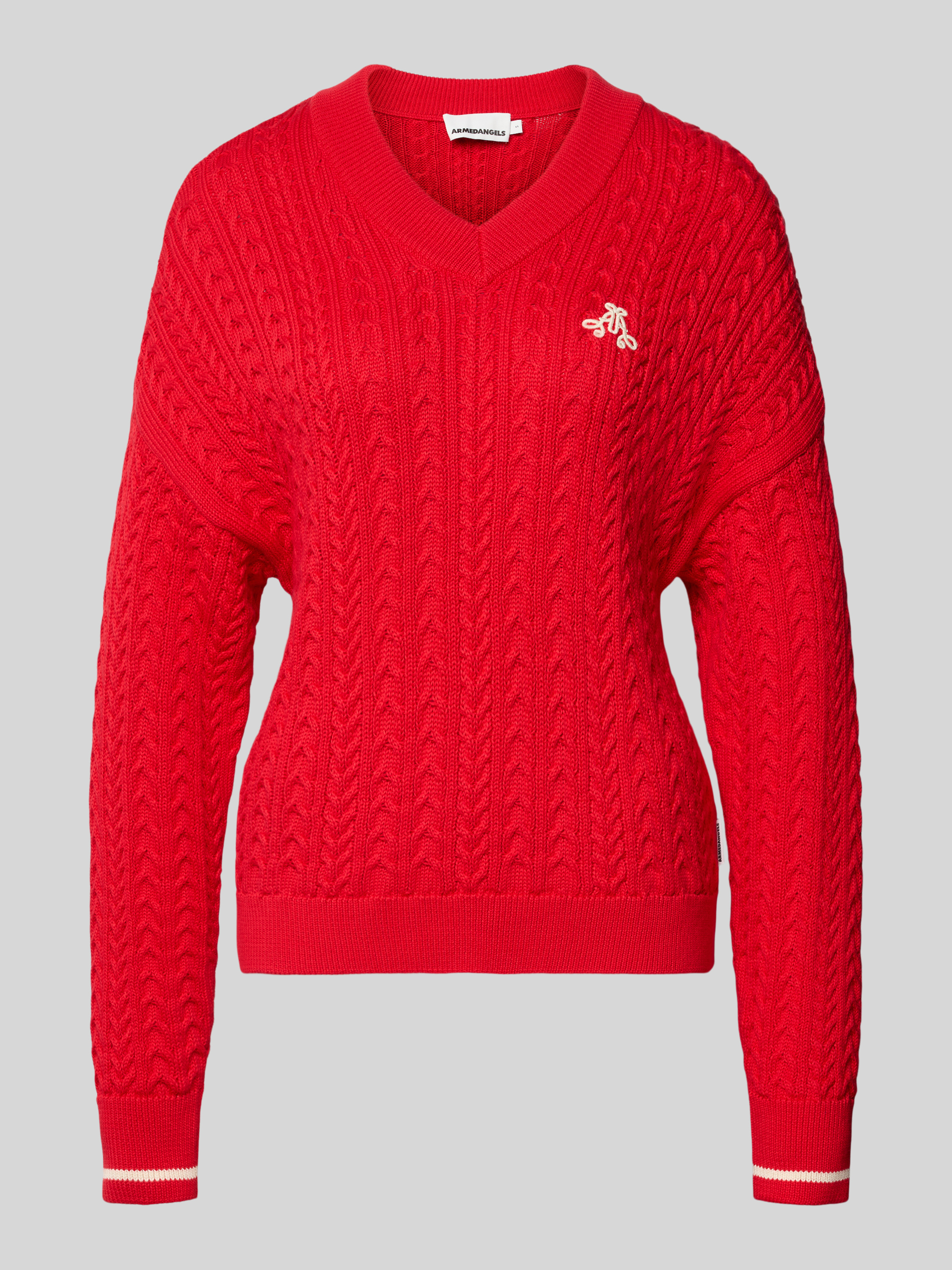 ArmedangelsLoose fit gebreide pullover van puur biologisch katoen, model 'CAARLOA CABLE' in lichtrood