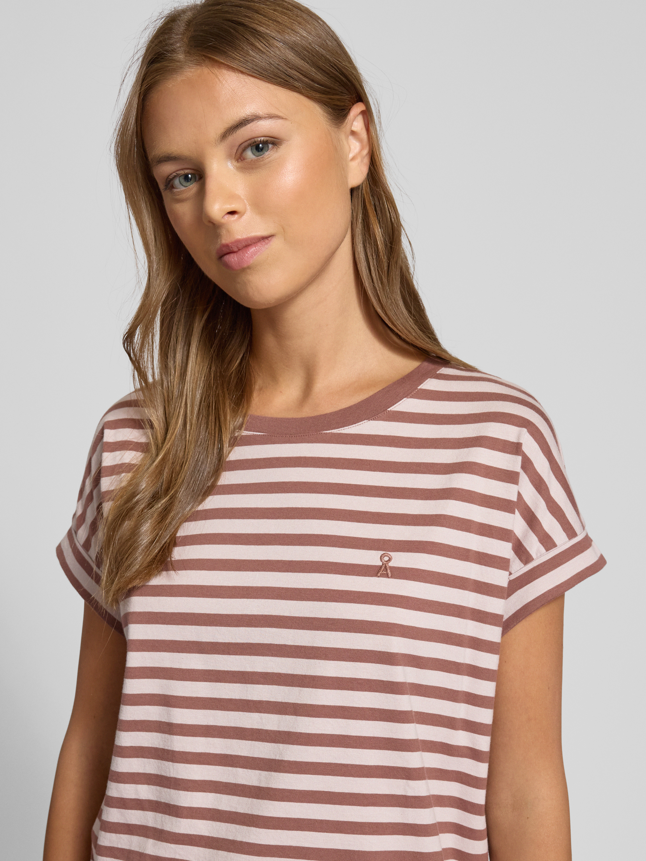 ArmedangelsLoose fit T-shirt van puur katoen, model 'IDAARA STRIPES' in rosé