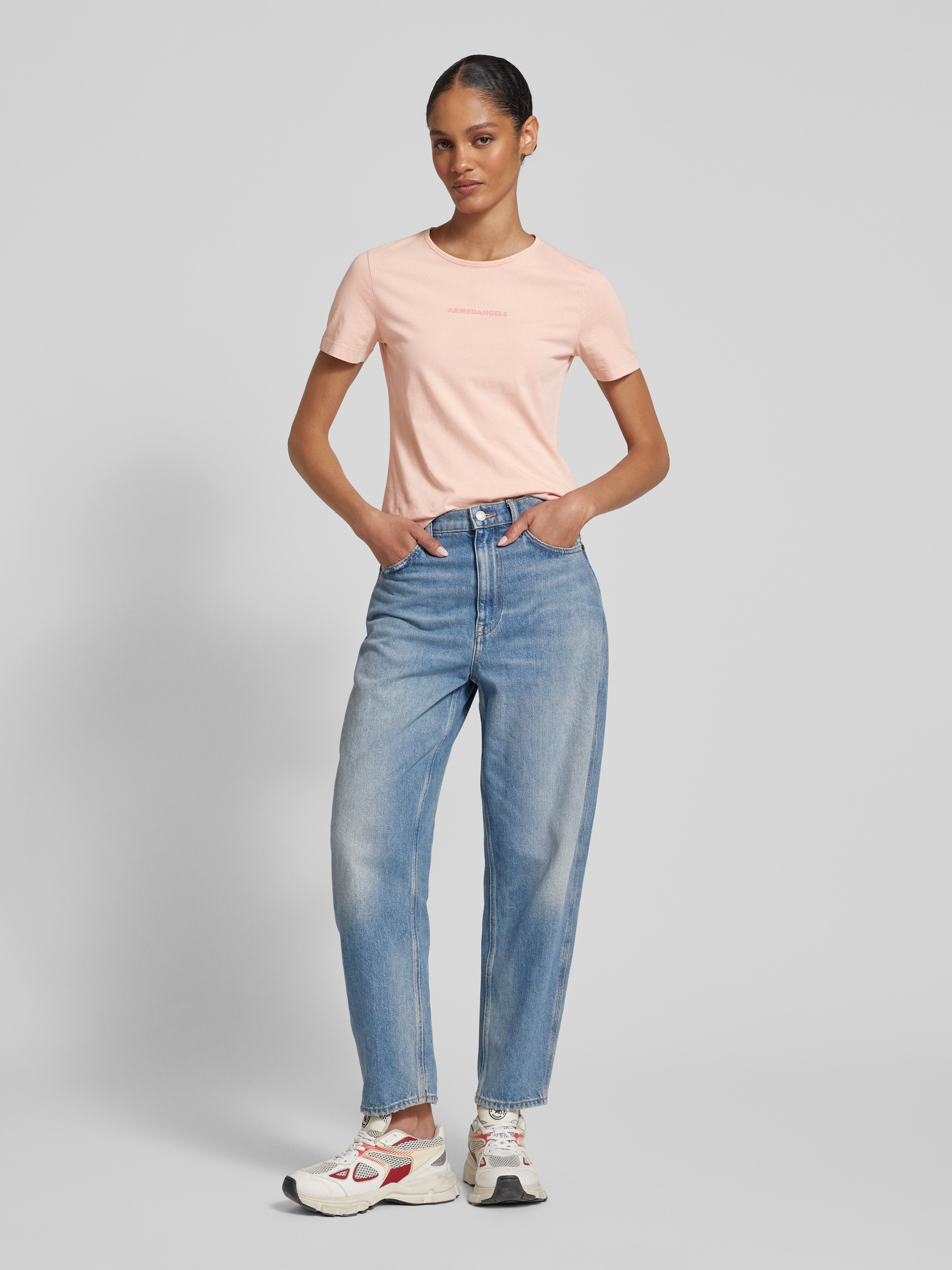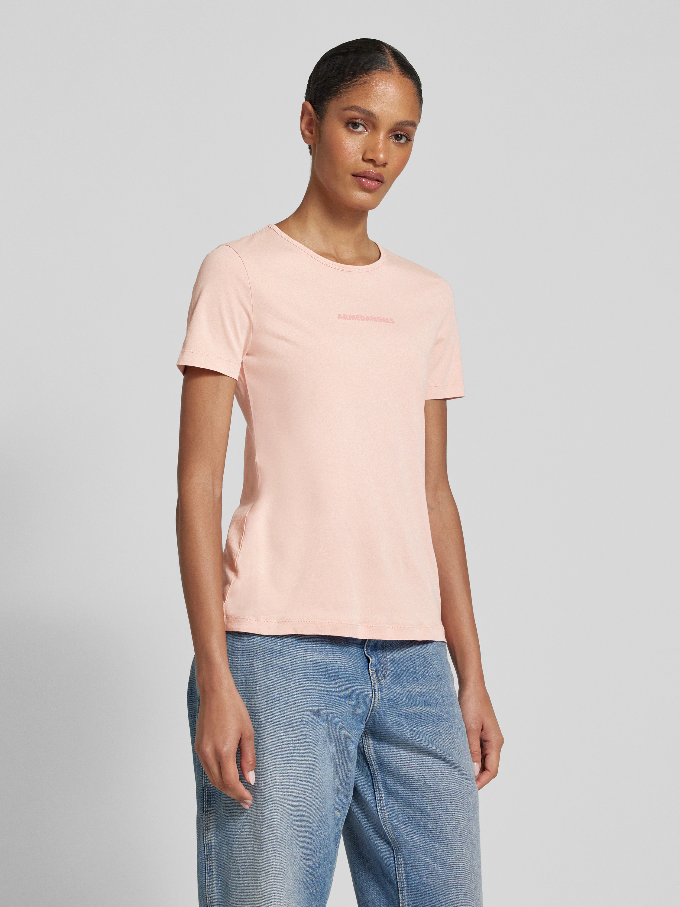 ArmedangelsT-shirt met labelprint, model 'EBAANORA' in zalm