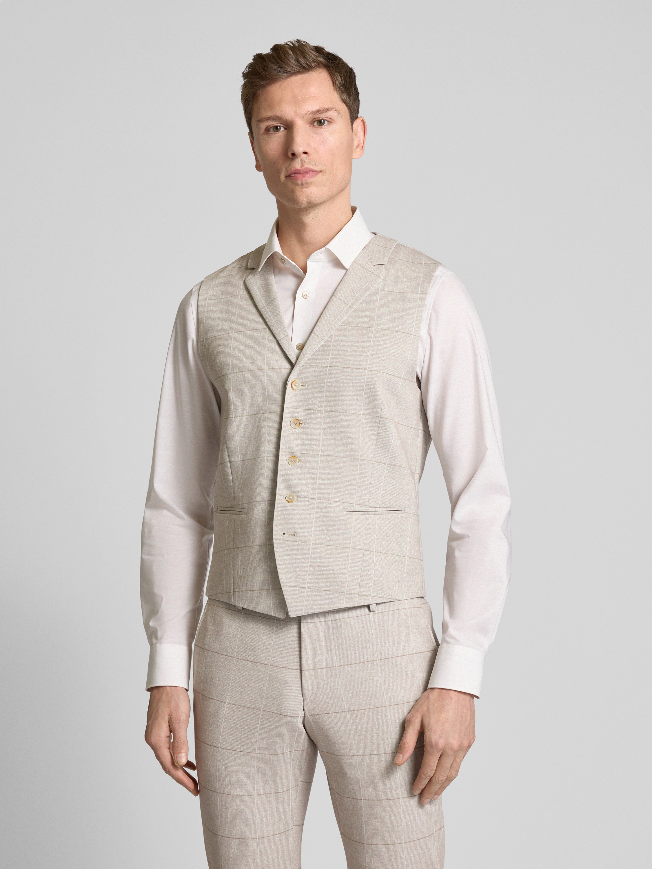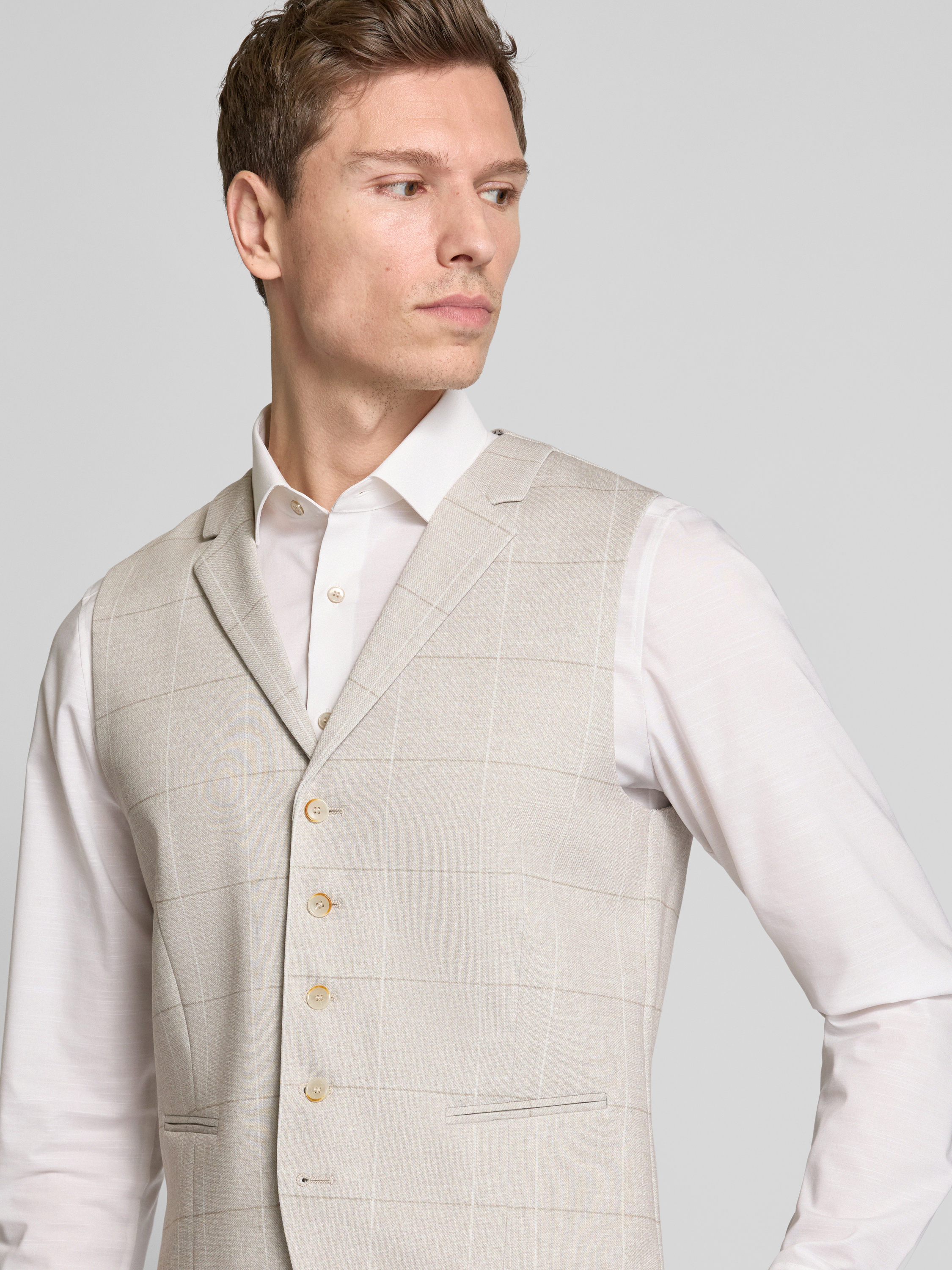 Gilet met paspelzakken in beige