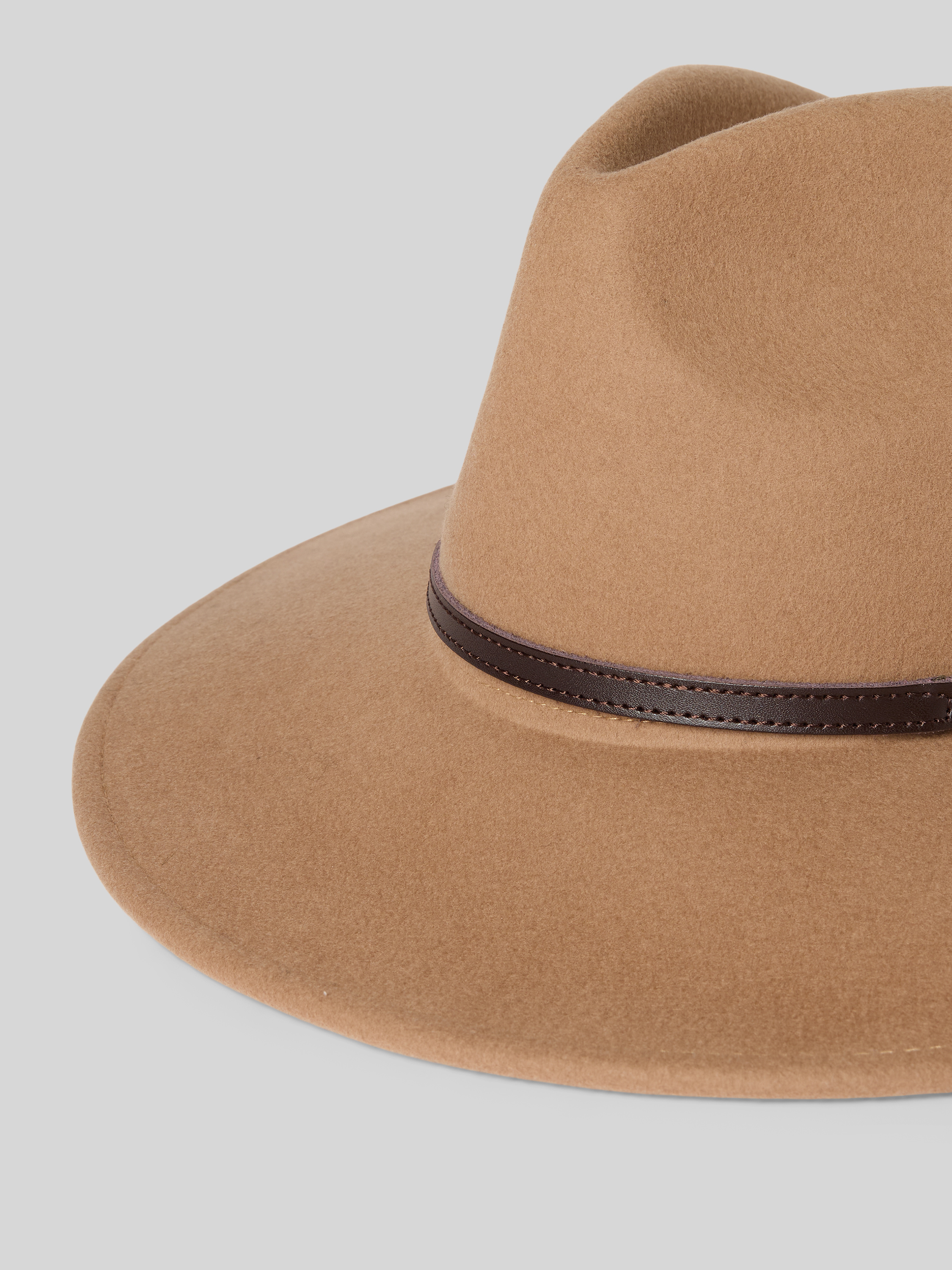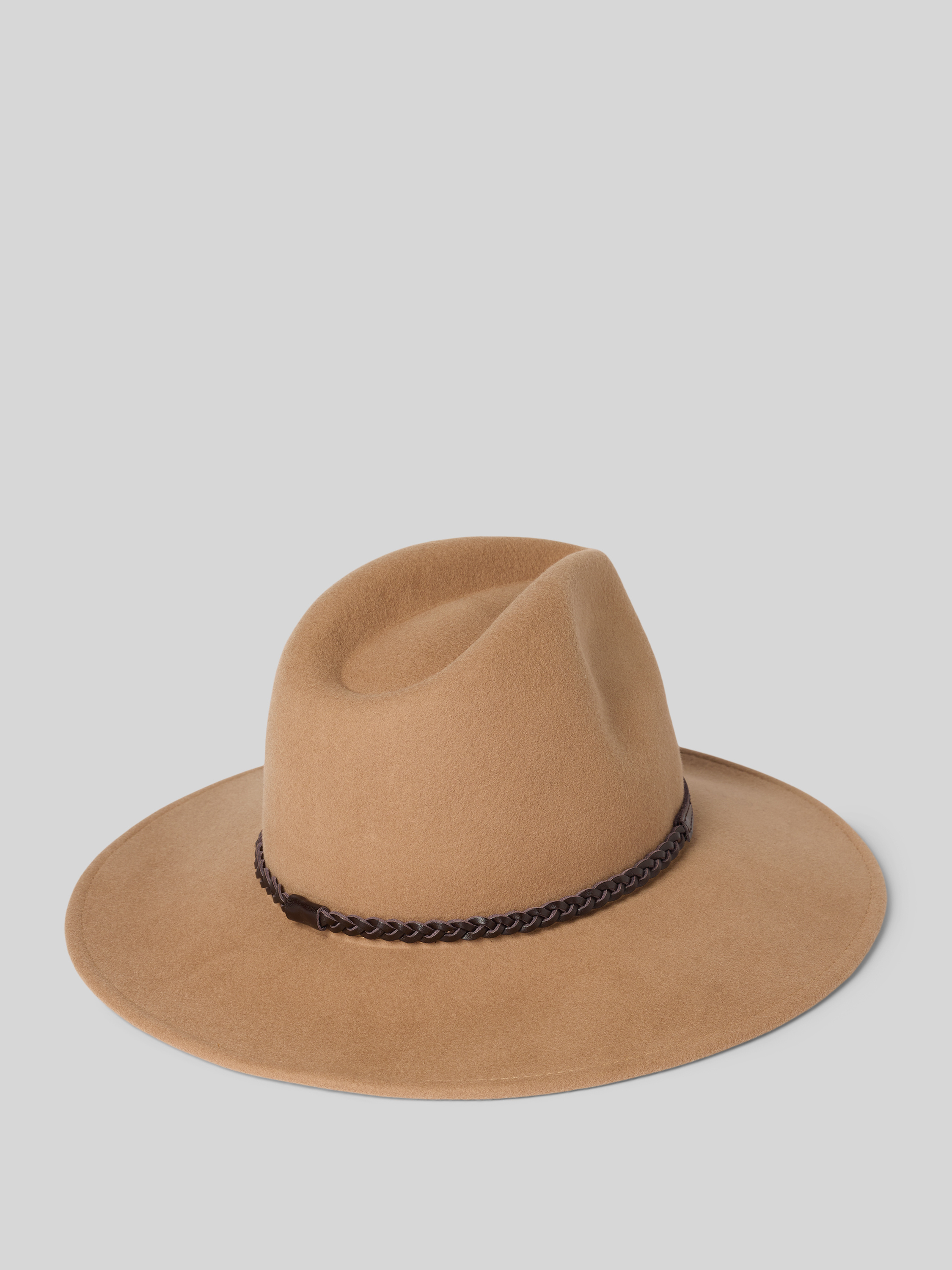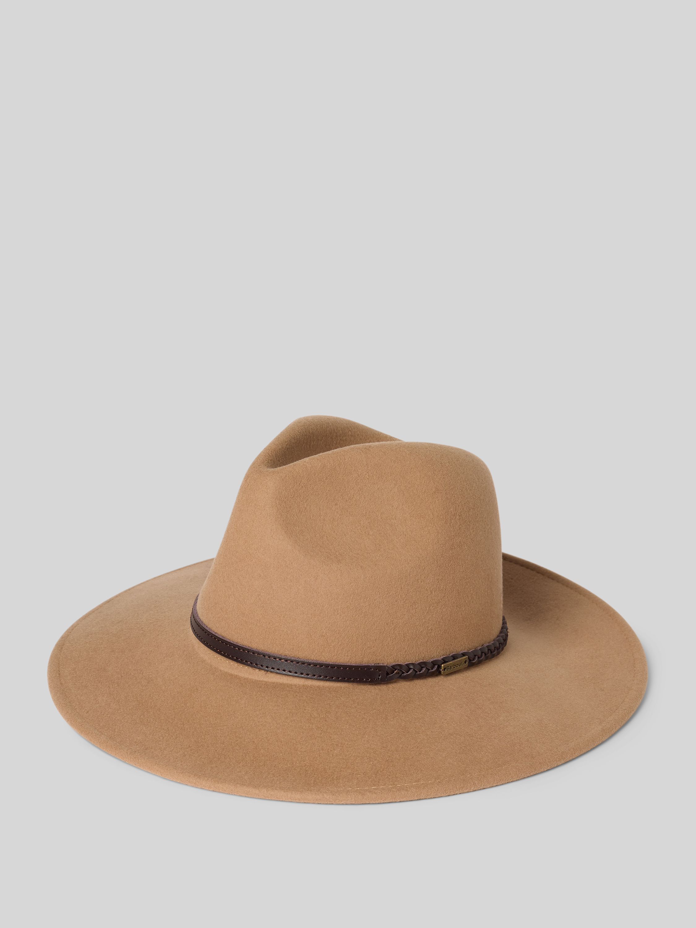 Applicatie: Leren hoedband, labelapplicatie van metaal