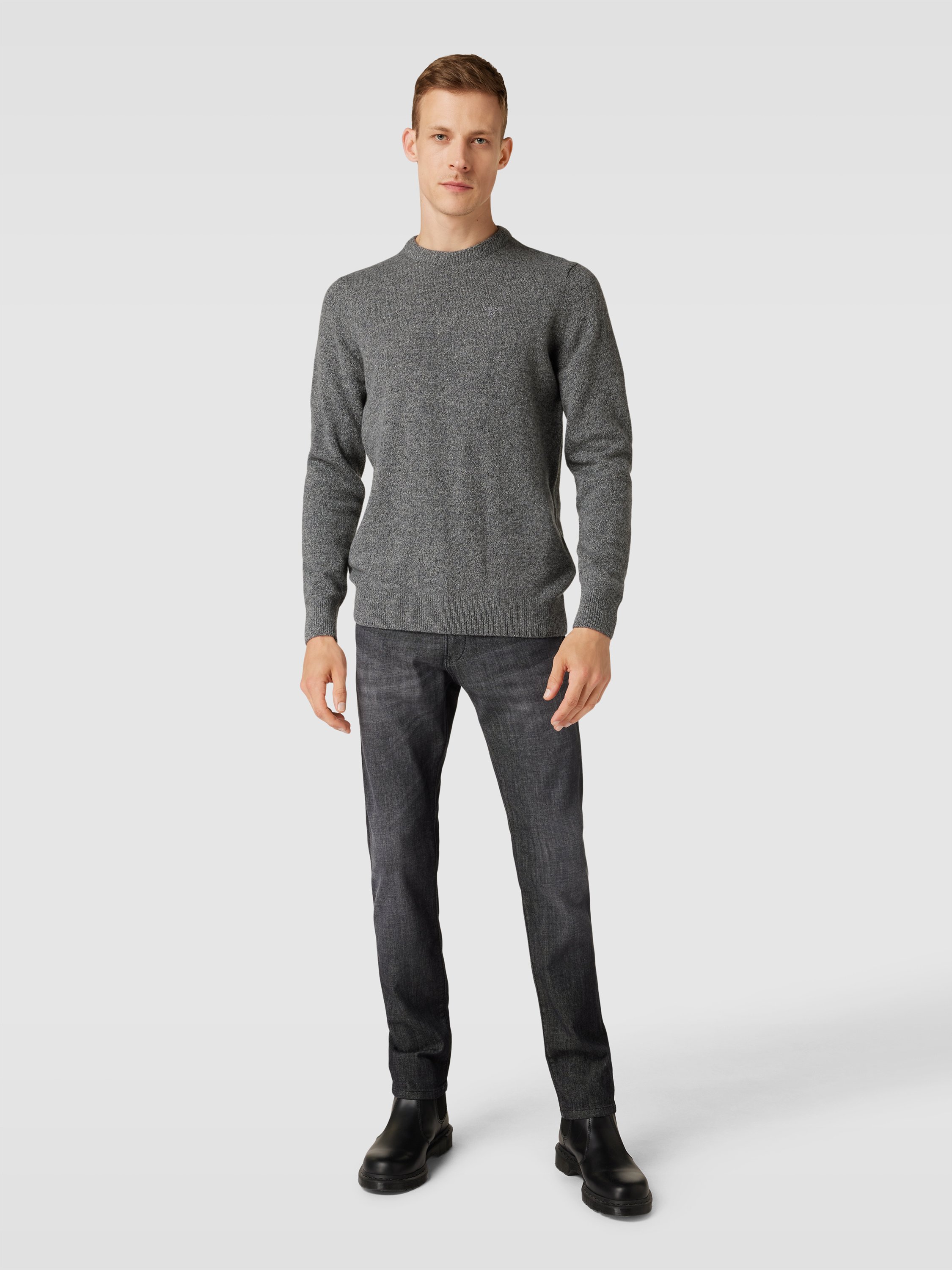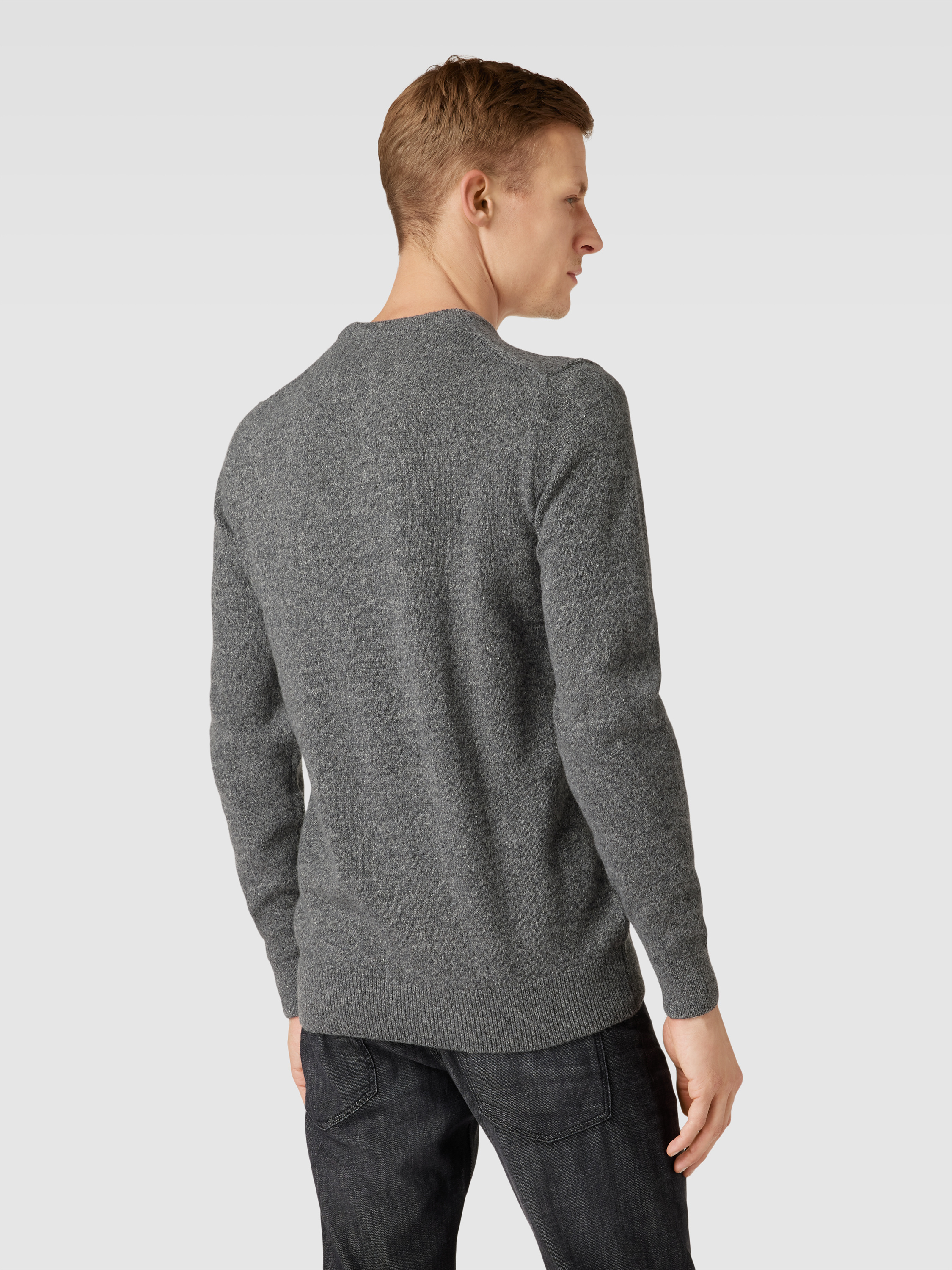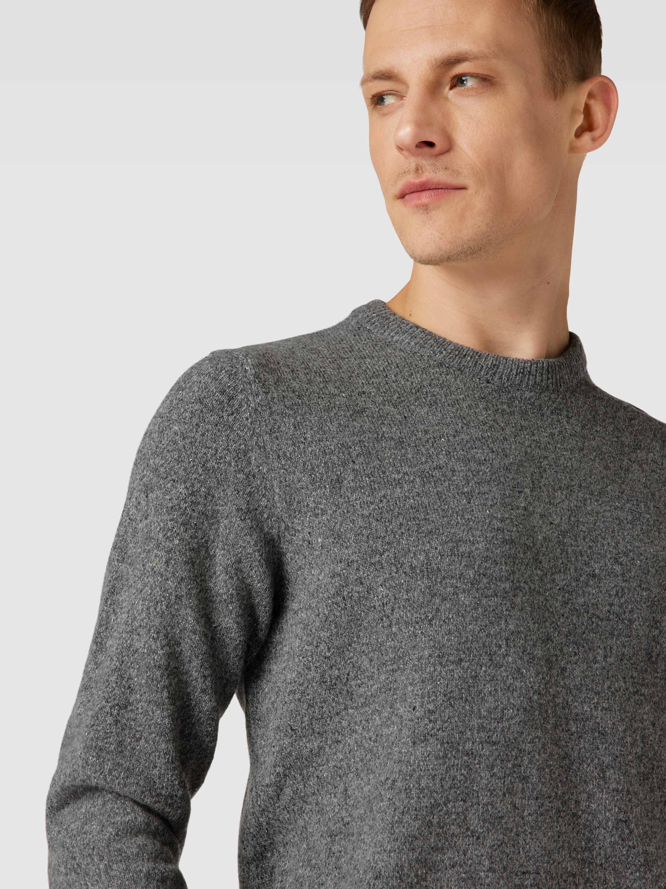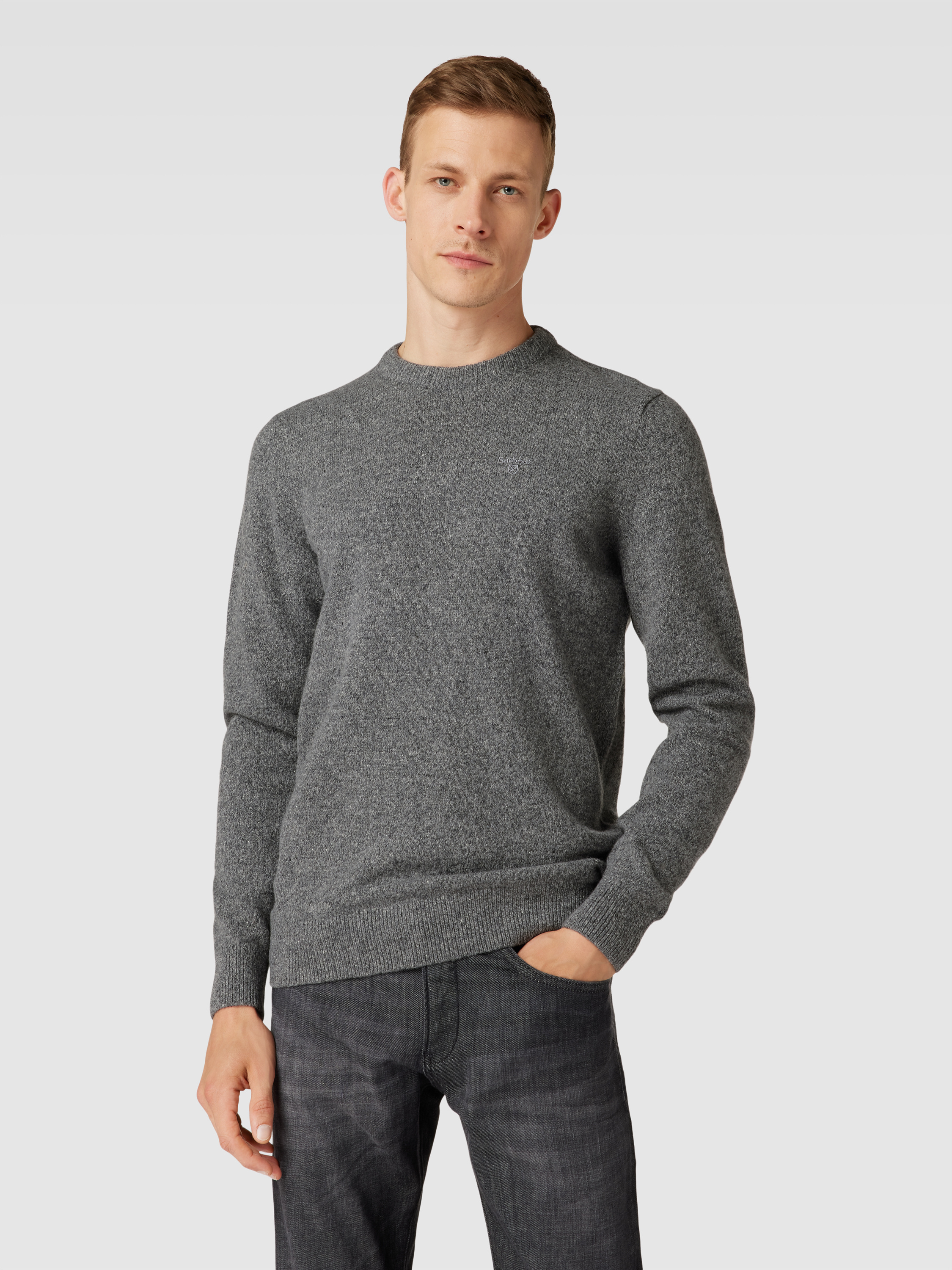 BarbourGebreide pullover van Escorial-wolmix met labelstitching in middengrijs gemêleerd