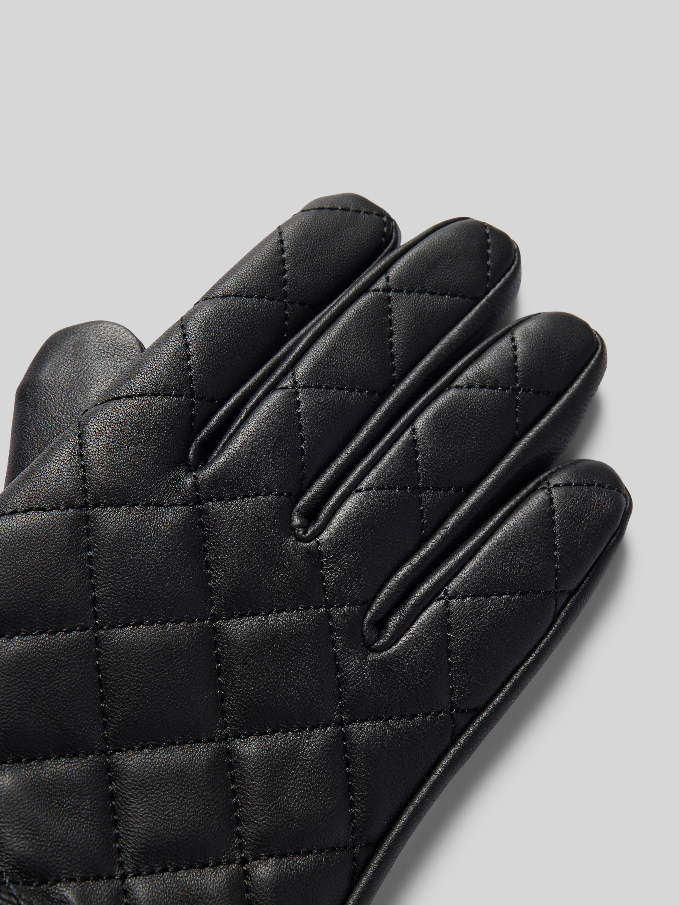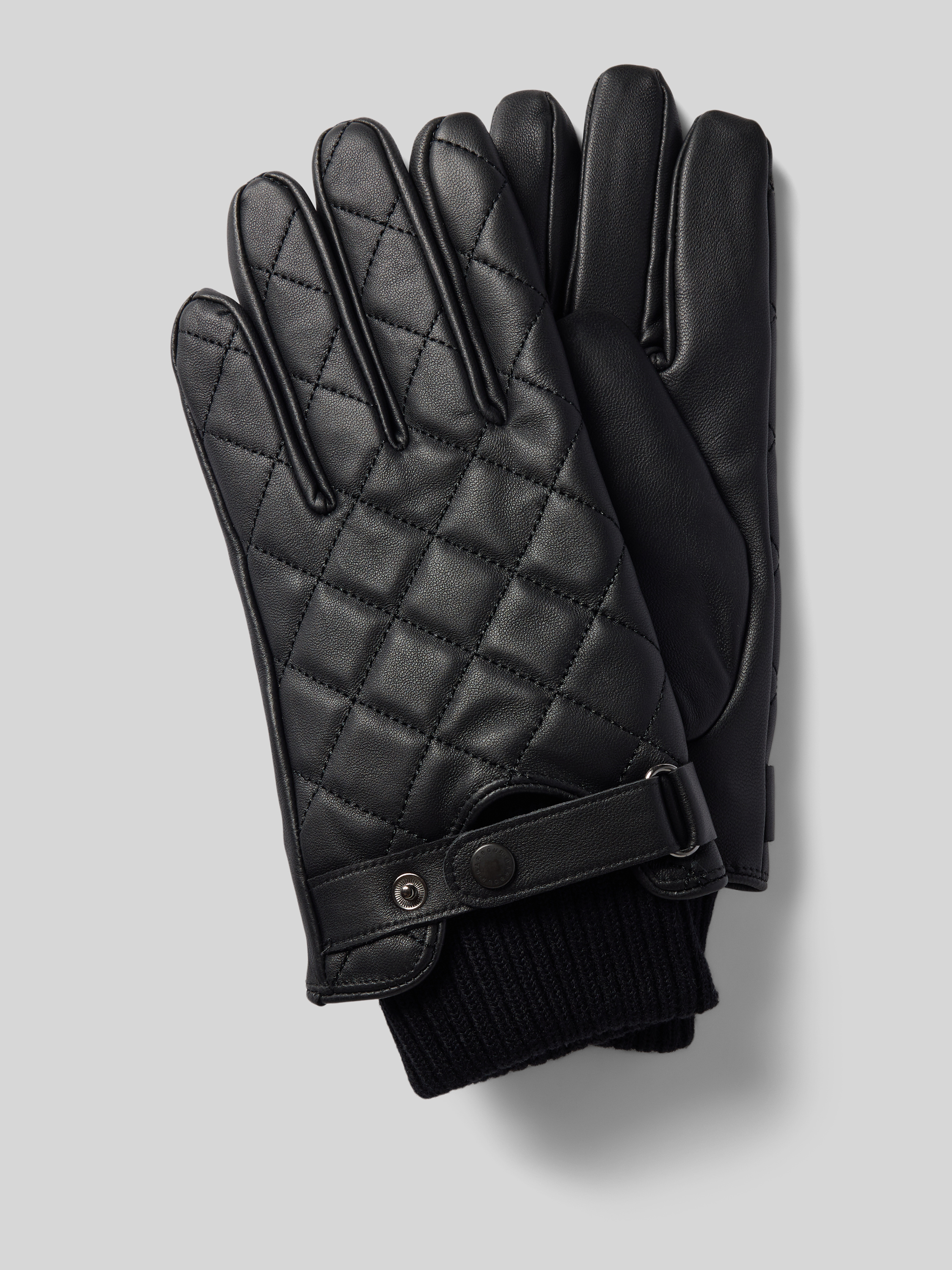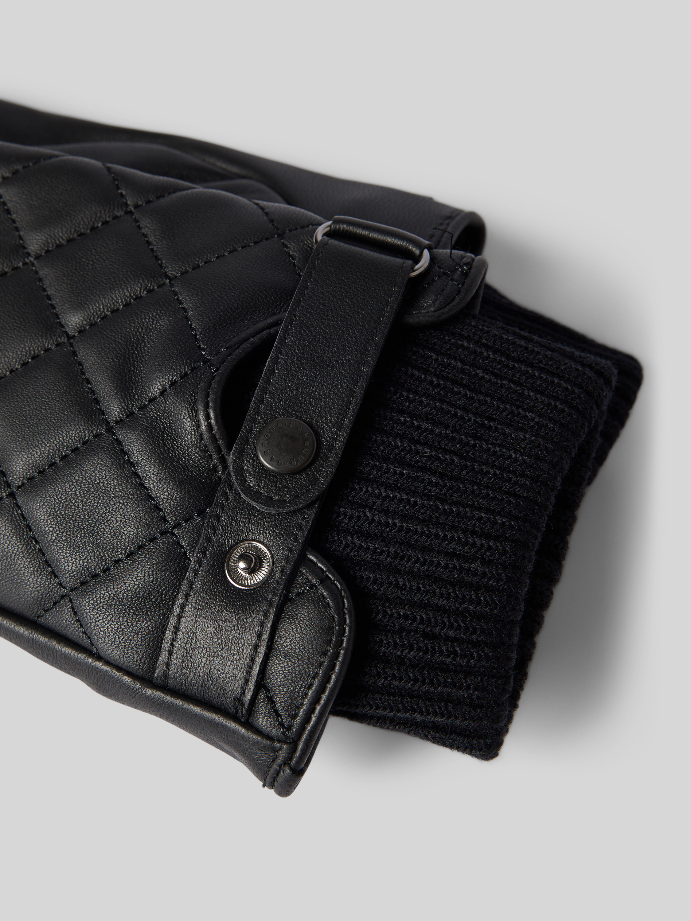 Handschoenen van echt leer met ribgebreide boordjes in zwart