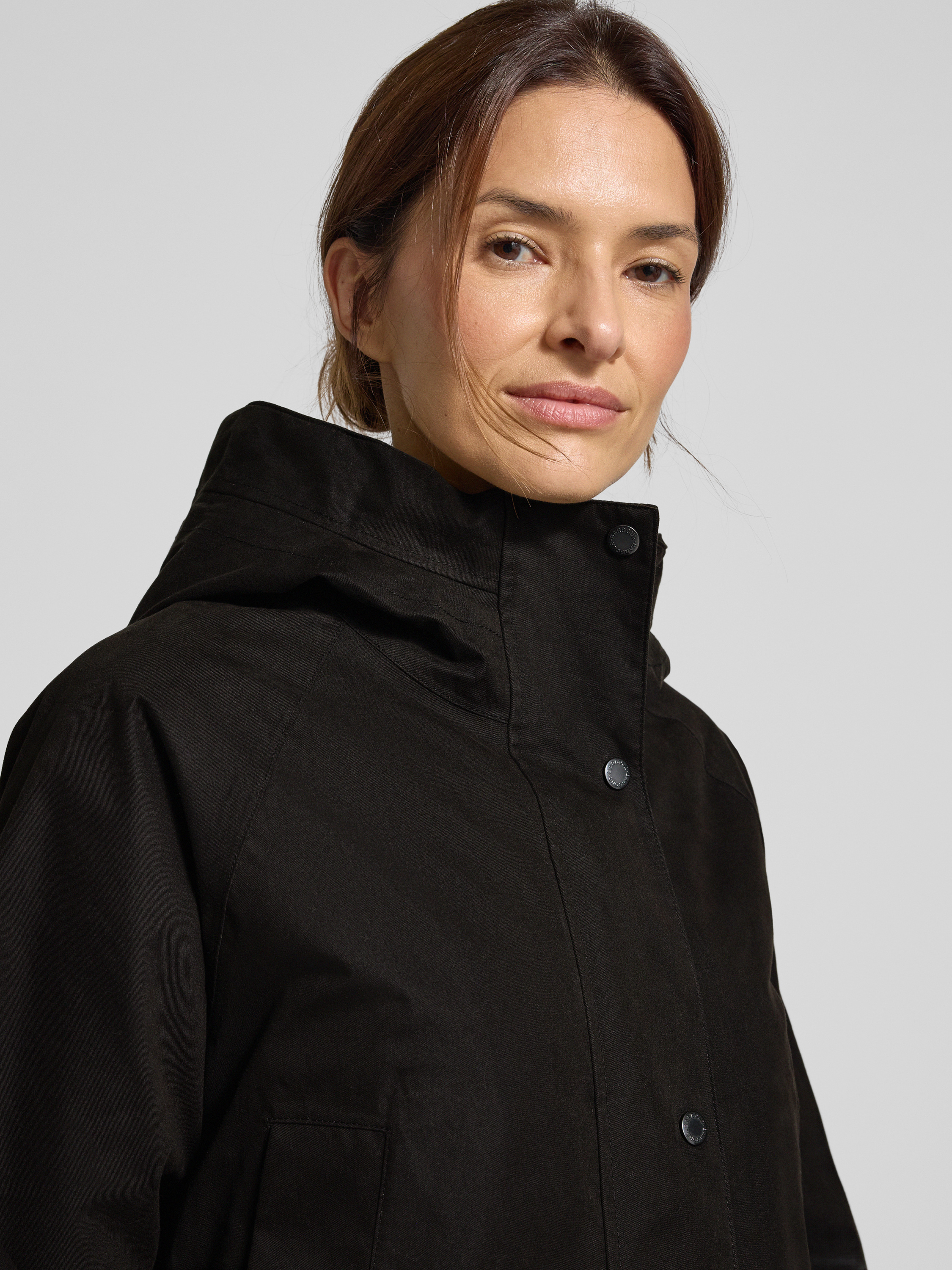 Kraagmodel: Opstaande kraag met capuchon en tunnelkoord aan de binnenkant