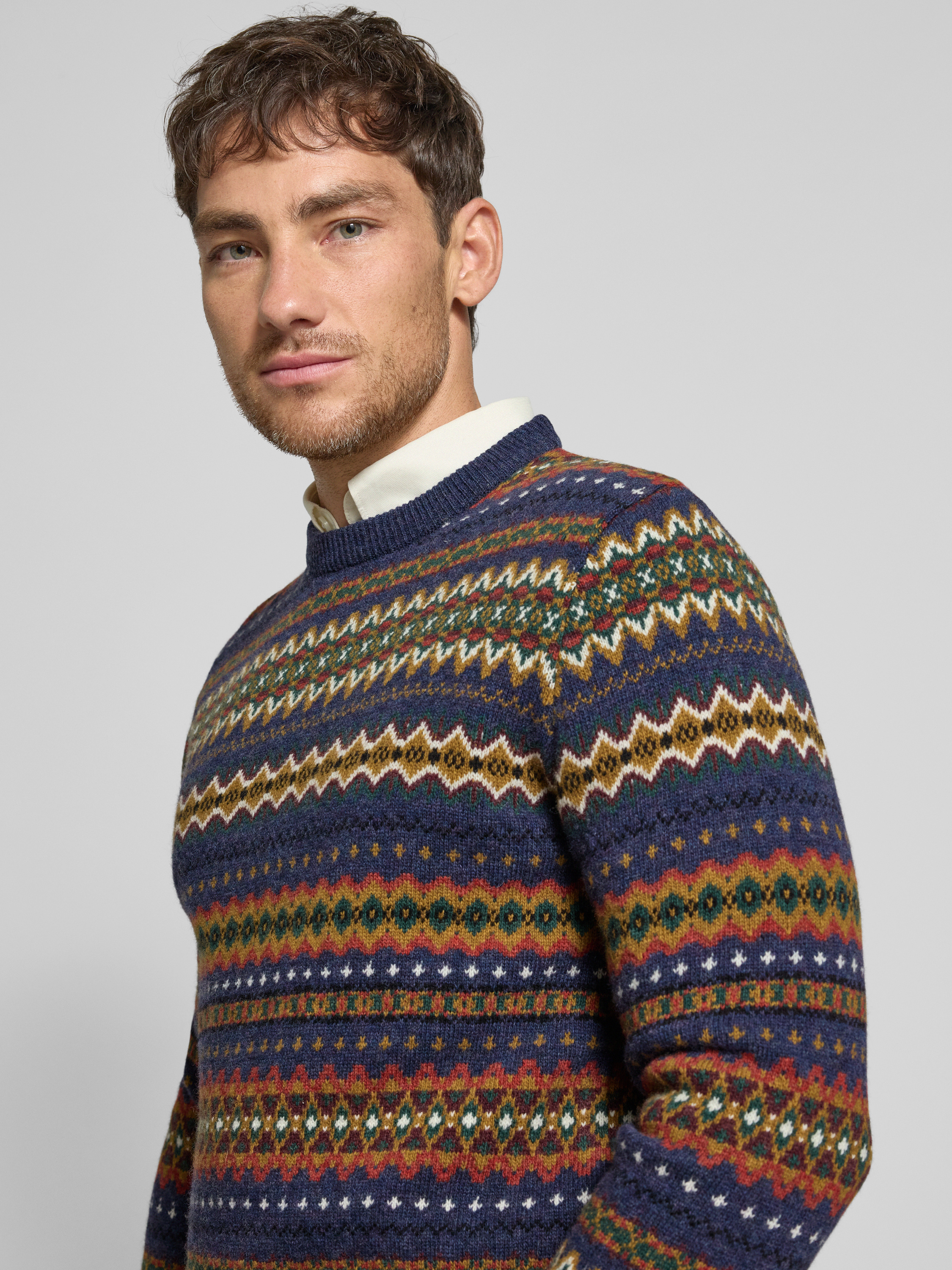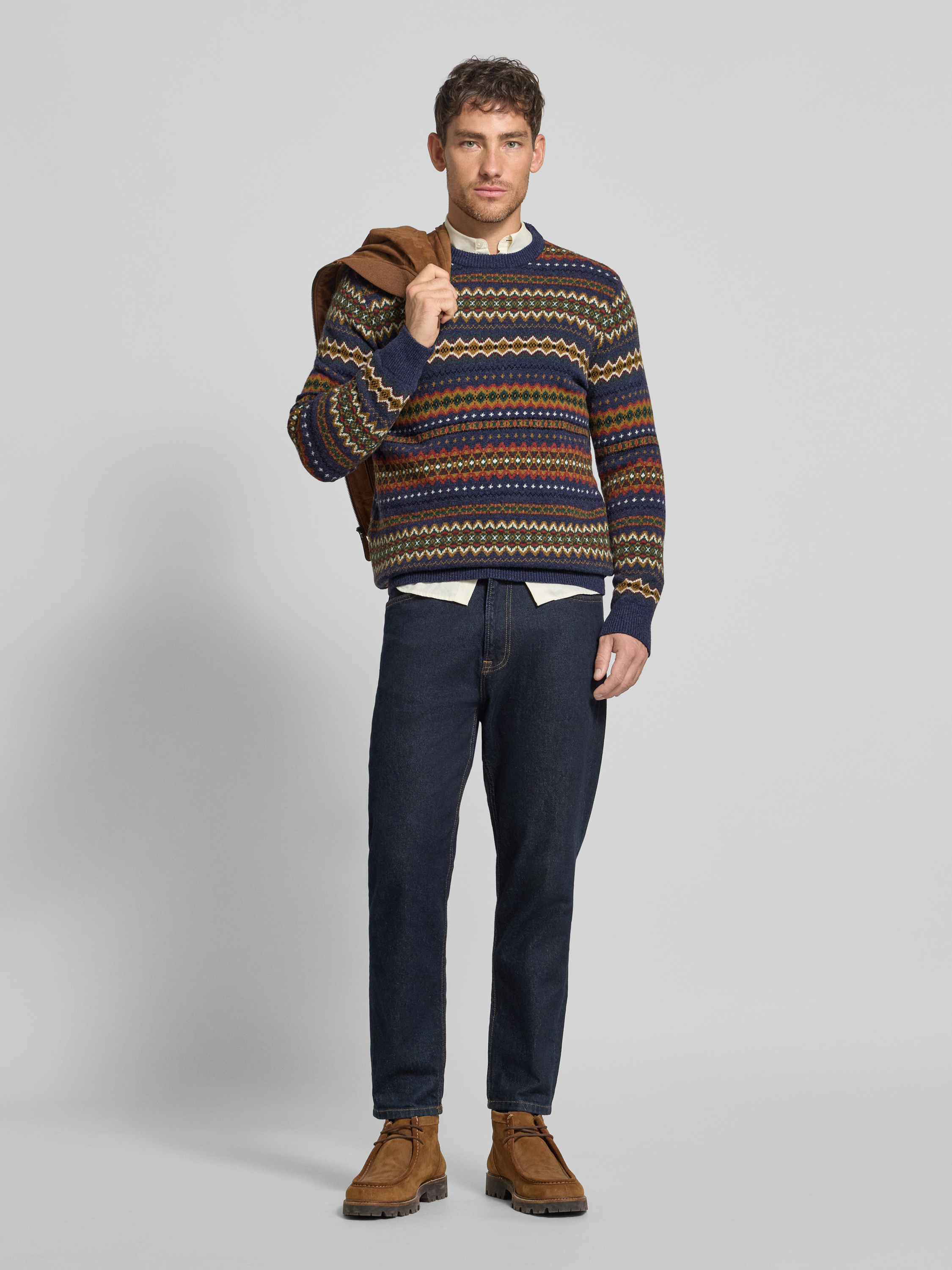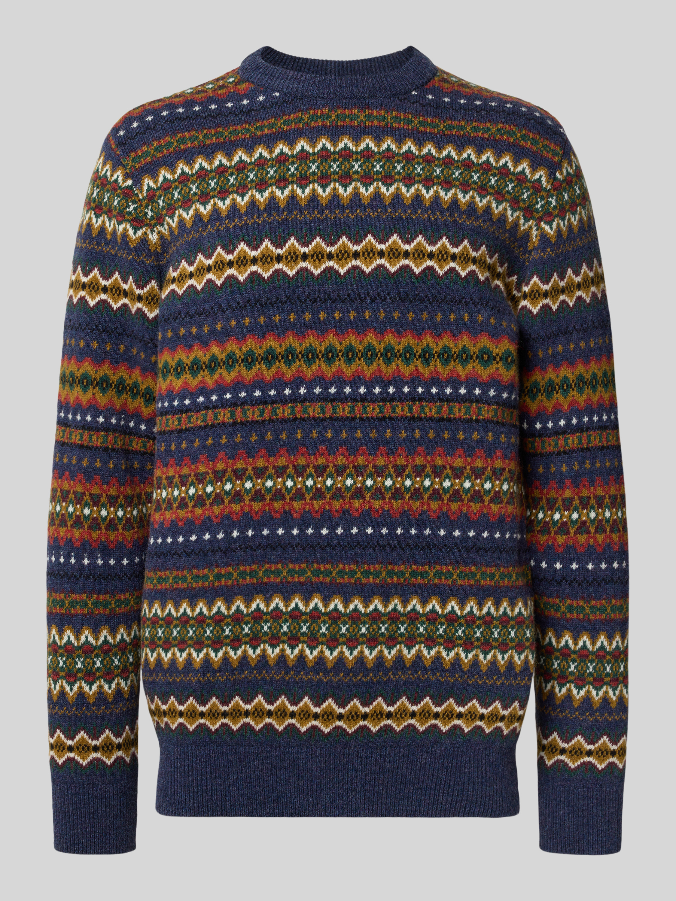 BarbourRegular fit gebreide pullover van zuivere wol, model 'ISLE CREW' in marineblauw gemêleerd