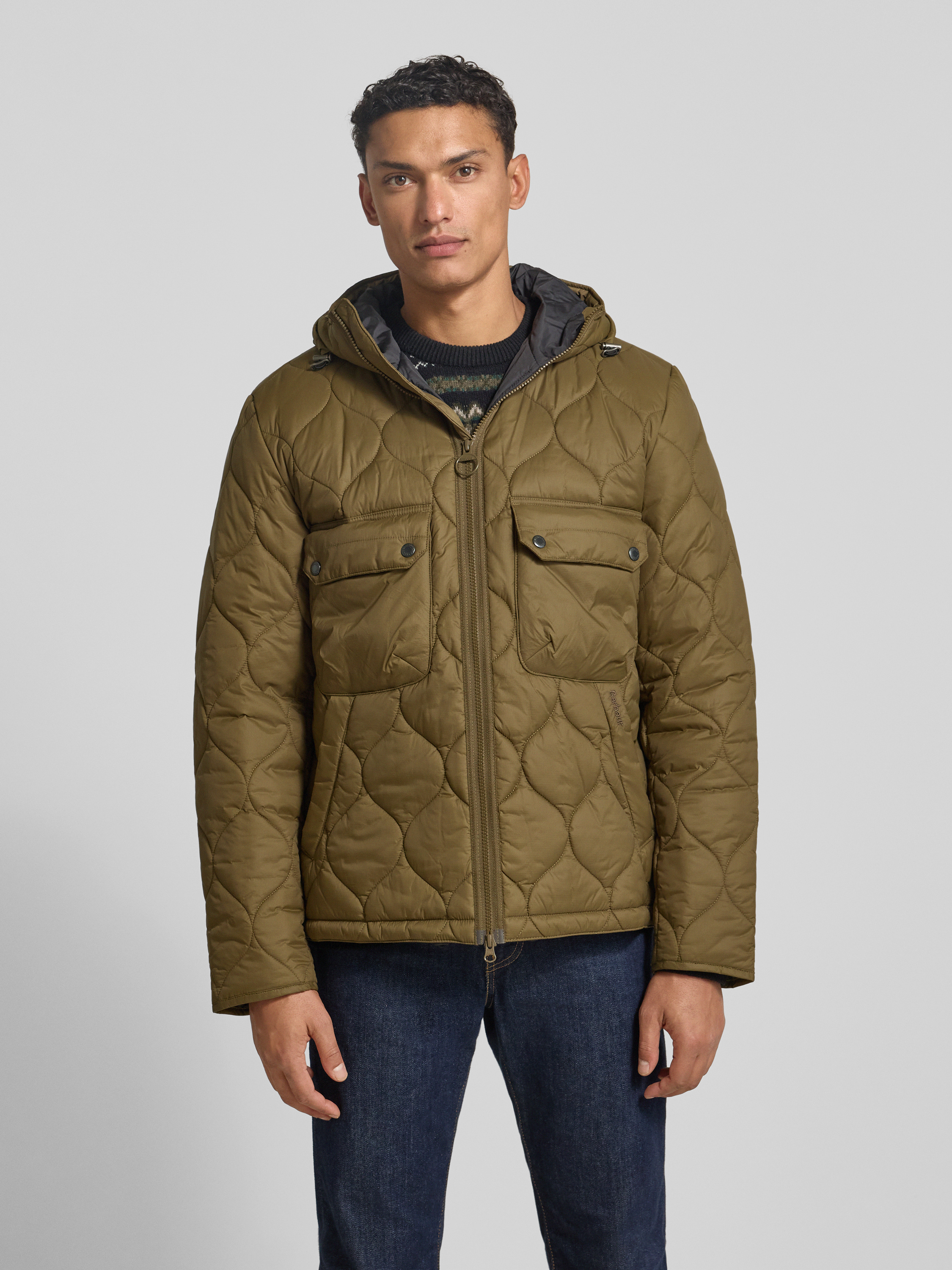 Regular fit gewatteerd jack met capuchon en tunnelkoord in olijfgroen