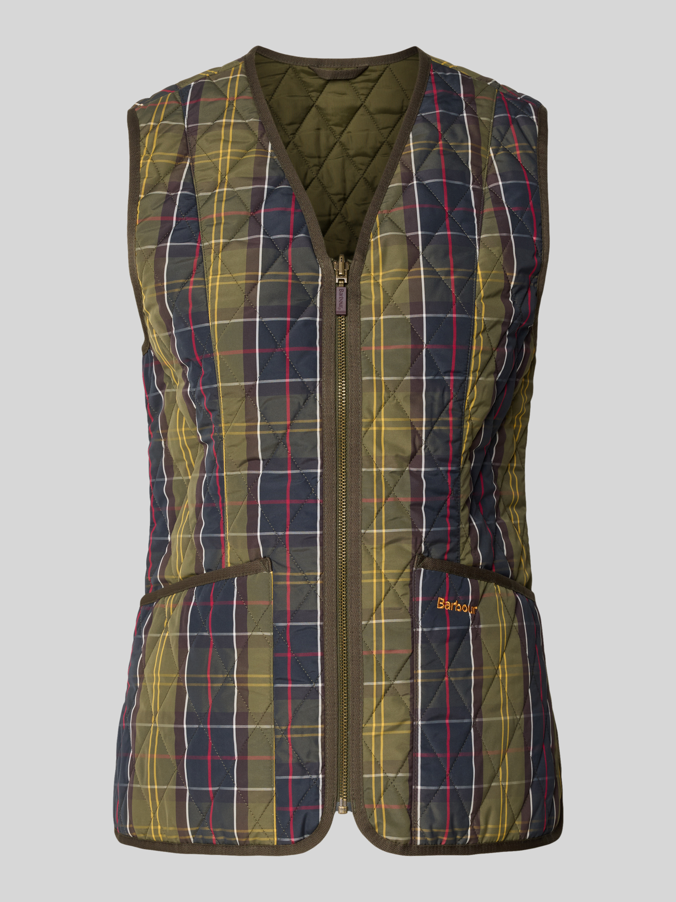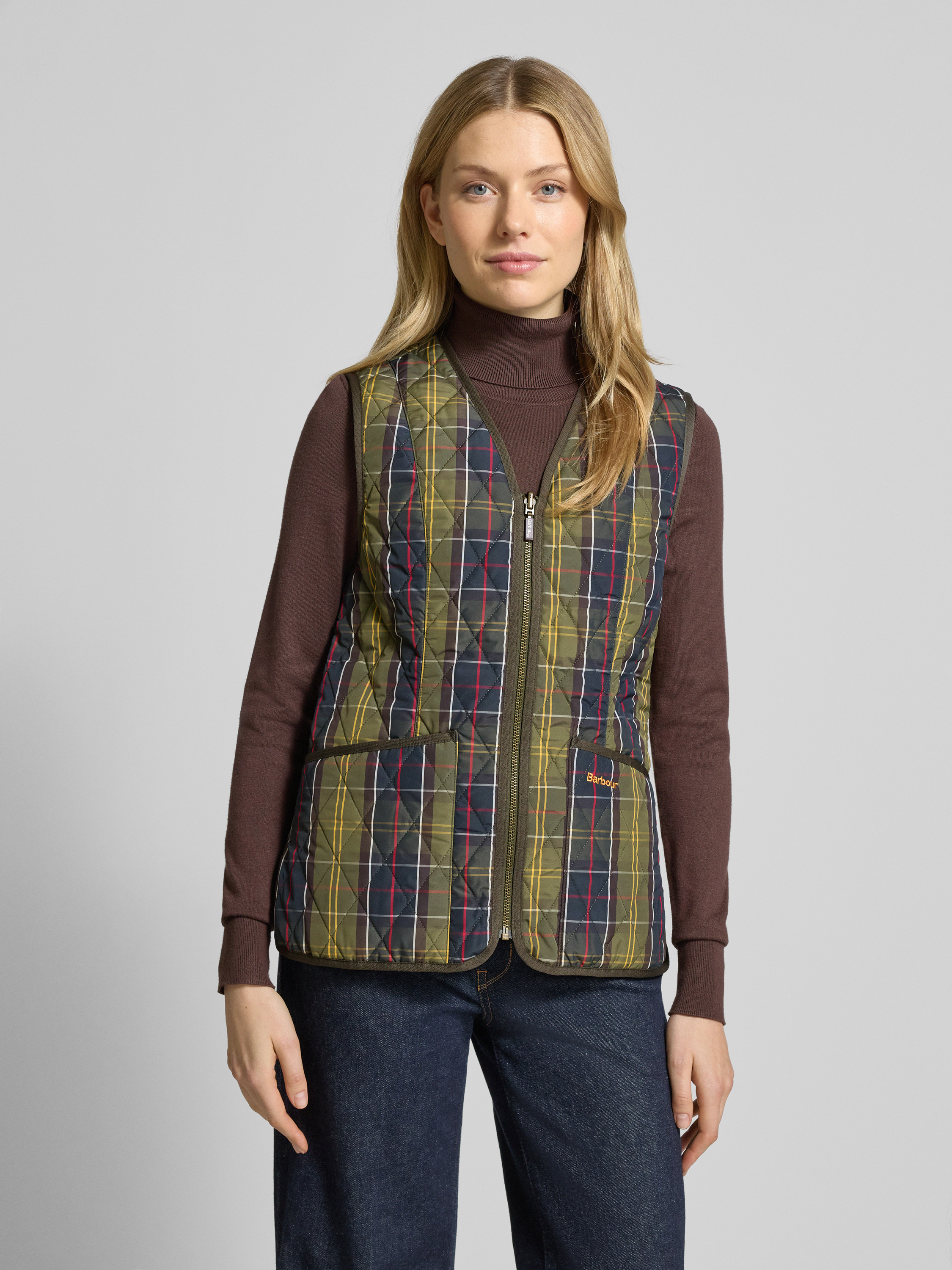 Regular fit gilet met all-over motief, model 'TARTAN BETTY LINER' in olijfgroen
