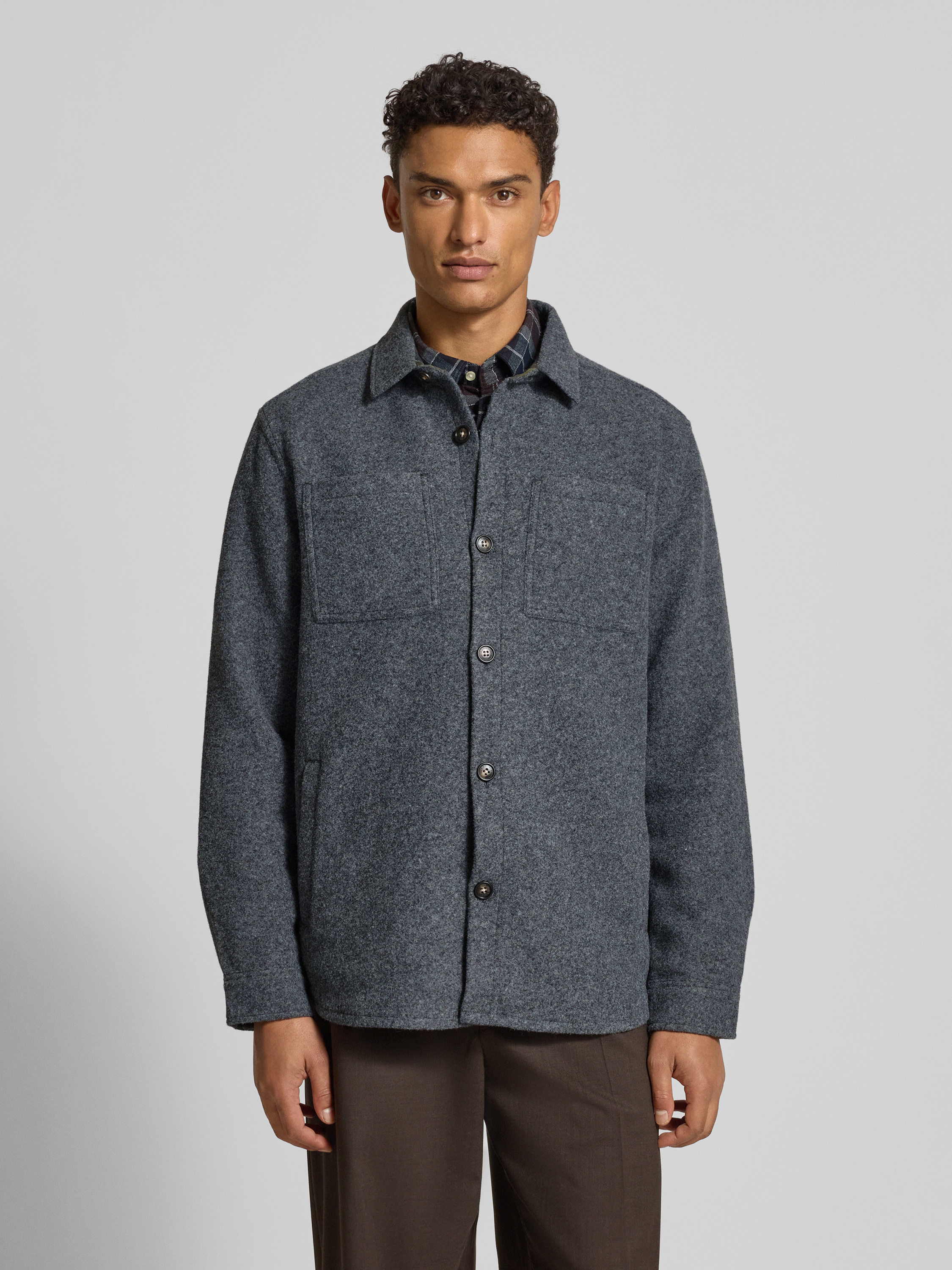 Regular fit overhemdjack met wol, model 'MARLOW' in antraciet