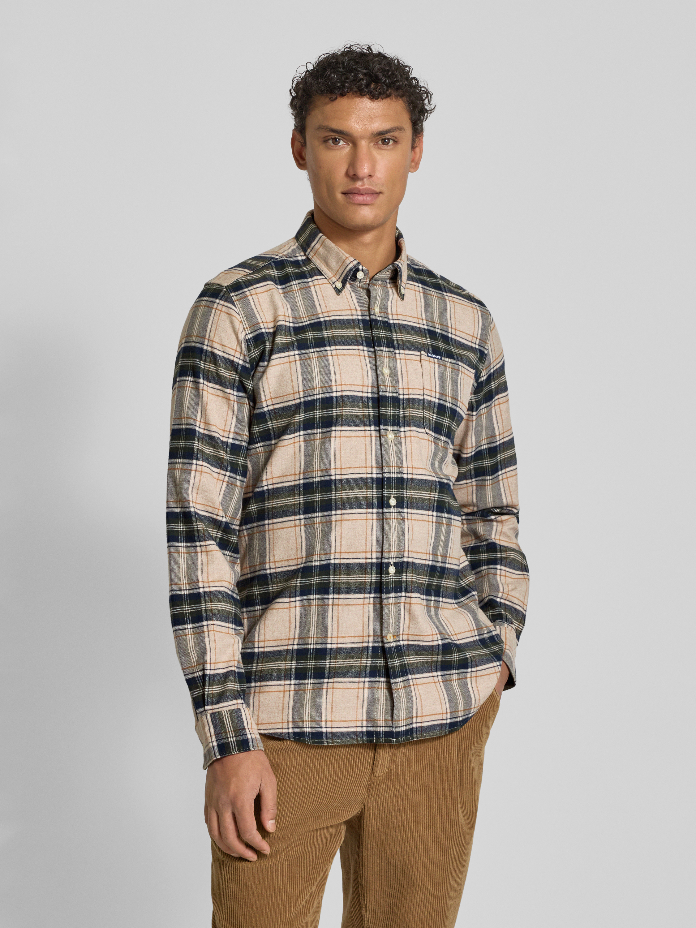 Slim fit flanellen overhemd van puur katoen, model 'BETSOM' in zand