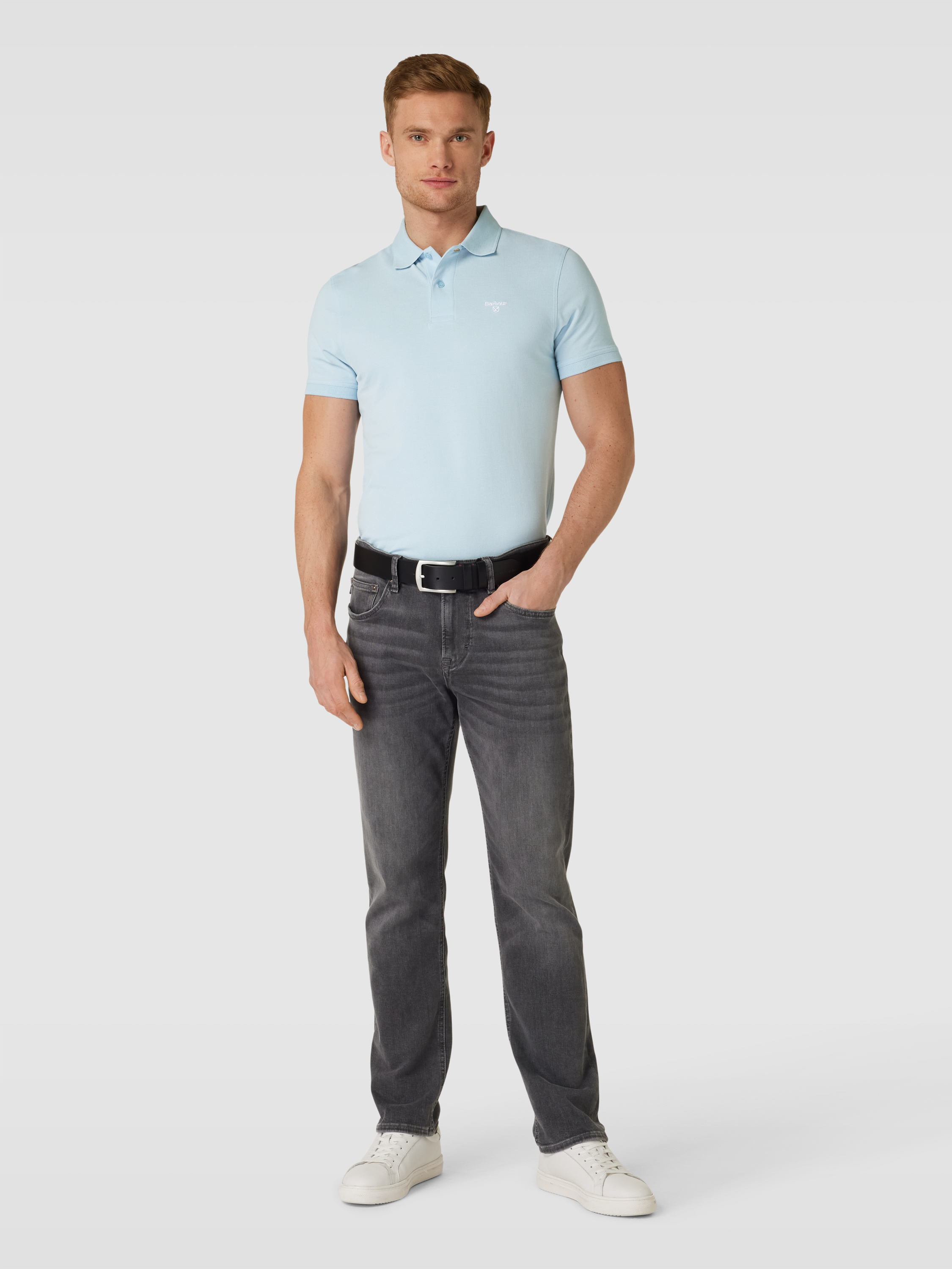 Slim fit poloshirt met labelstitching in bleu gemêleerd