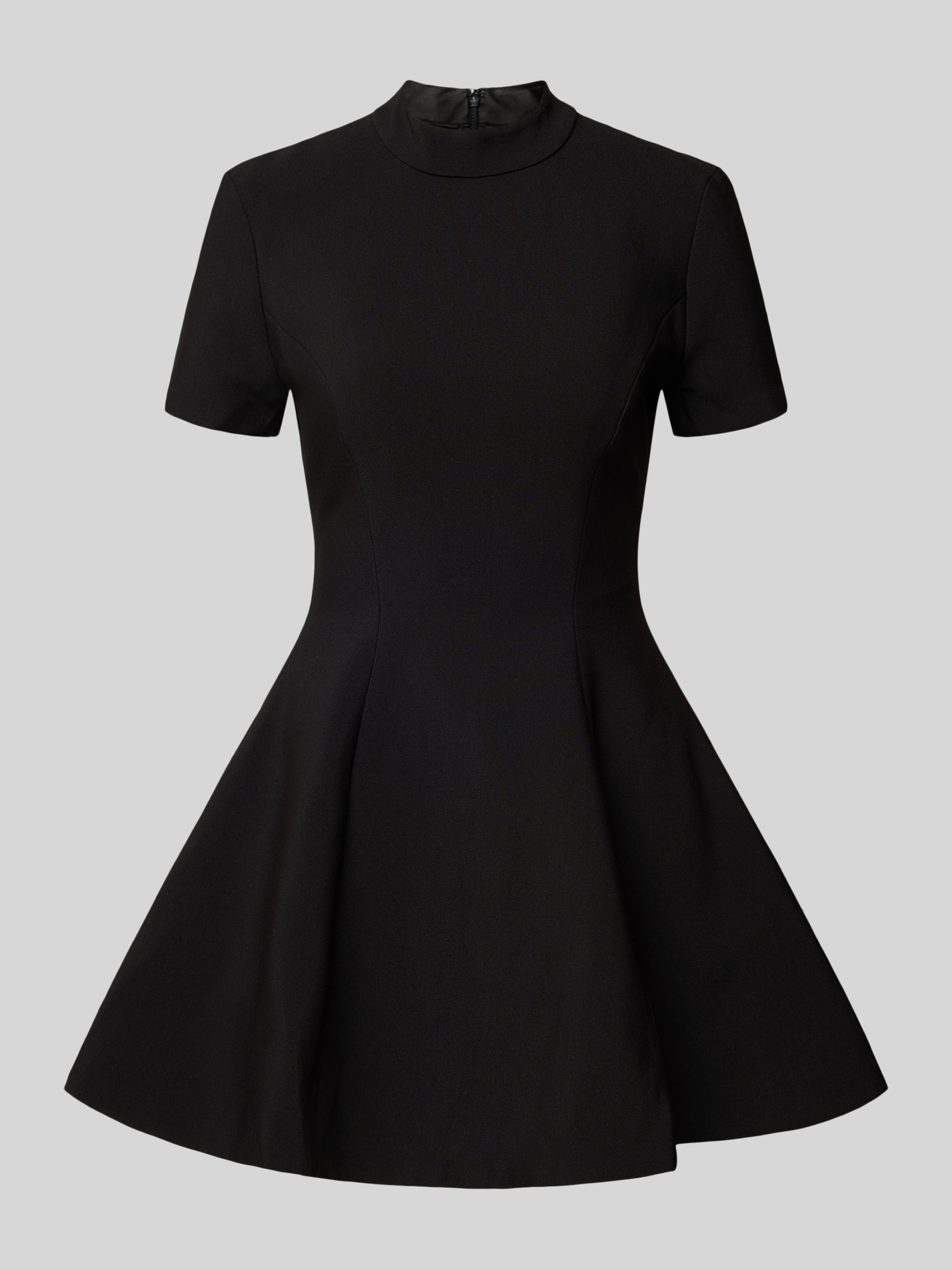 BardotCocktailjurk met geribde ronde hals, model 'ZEPHYRA' in zwart