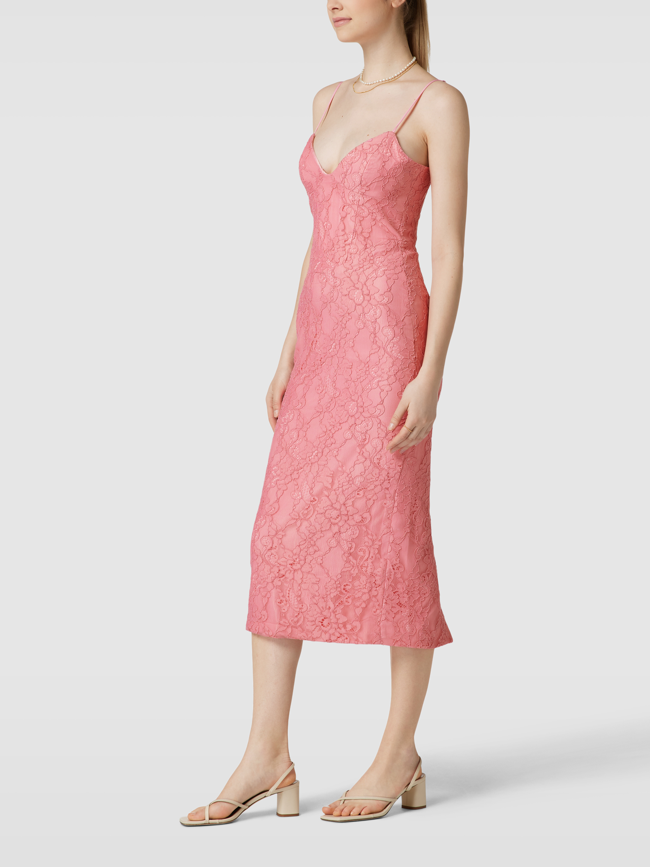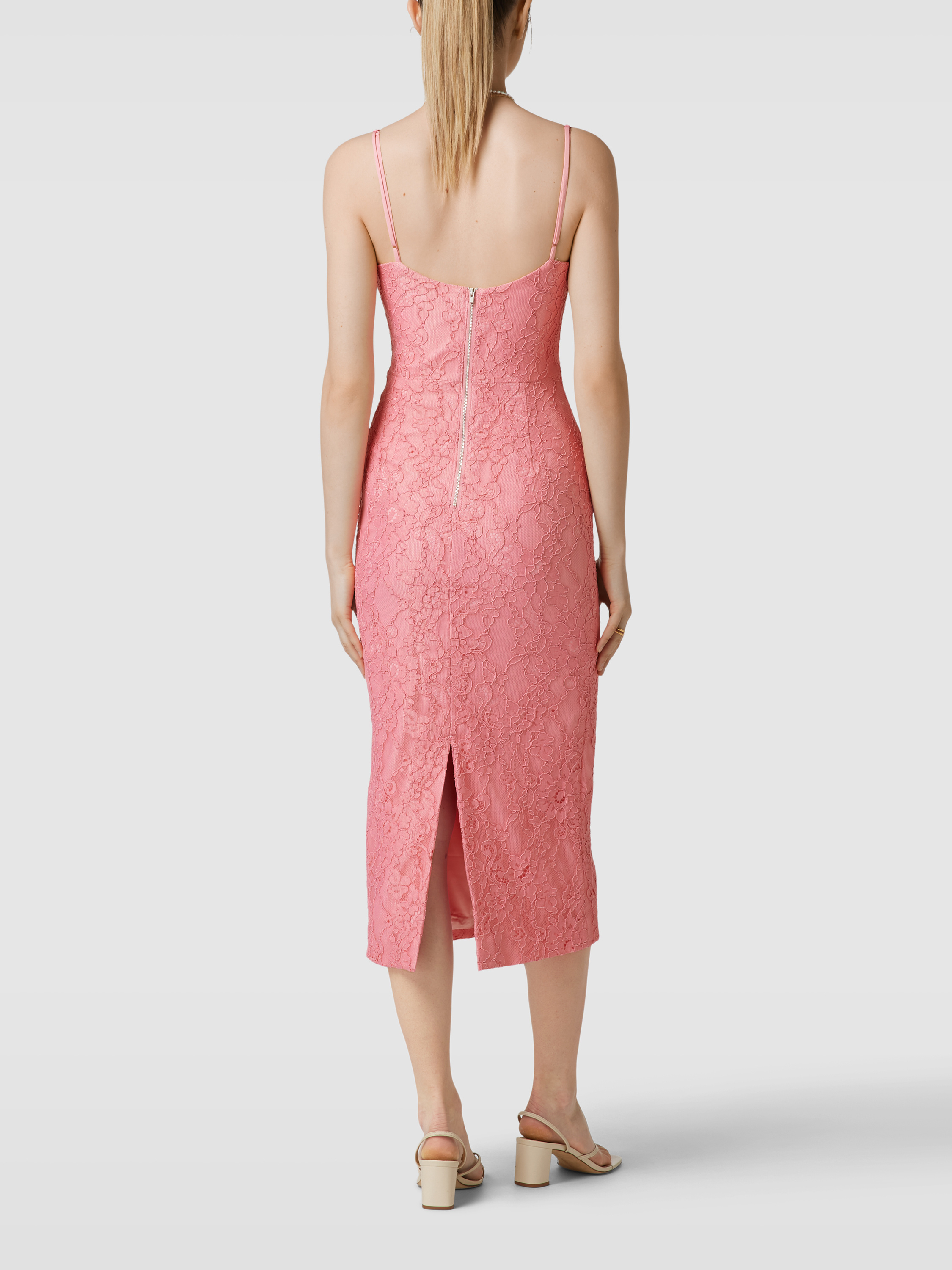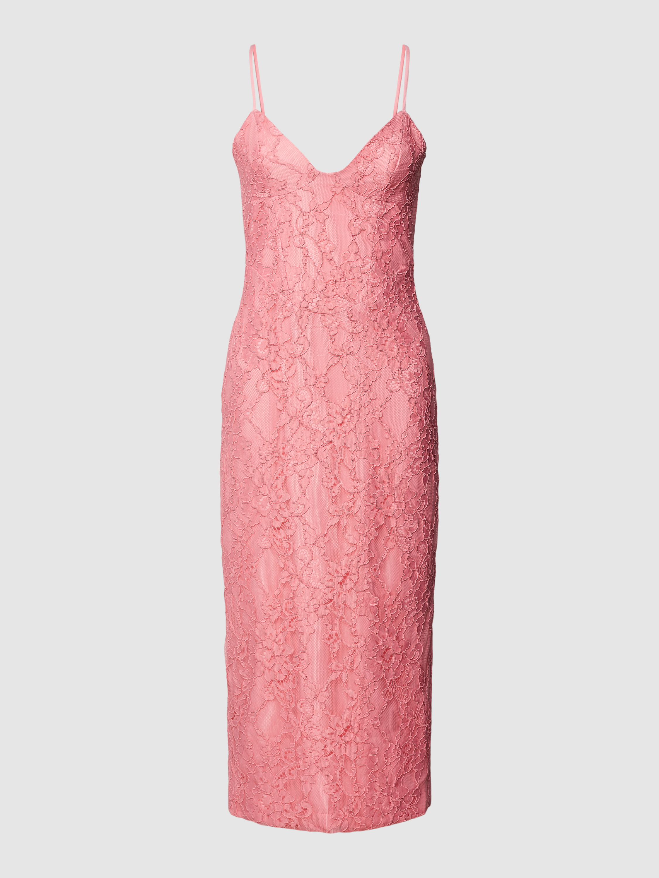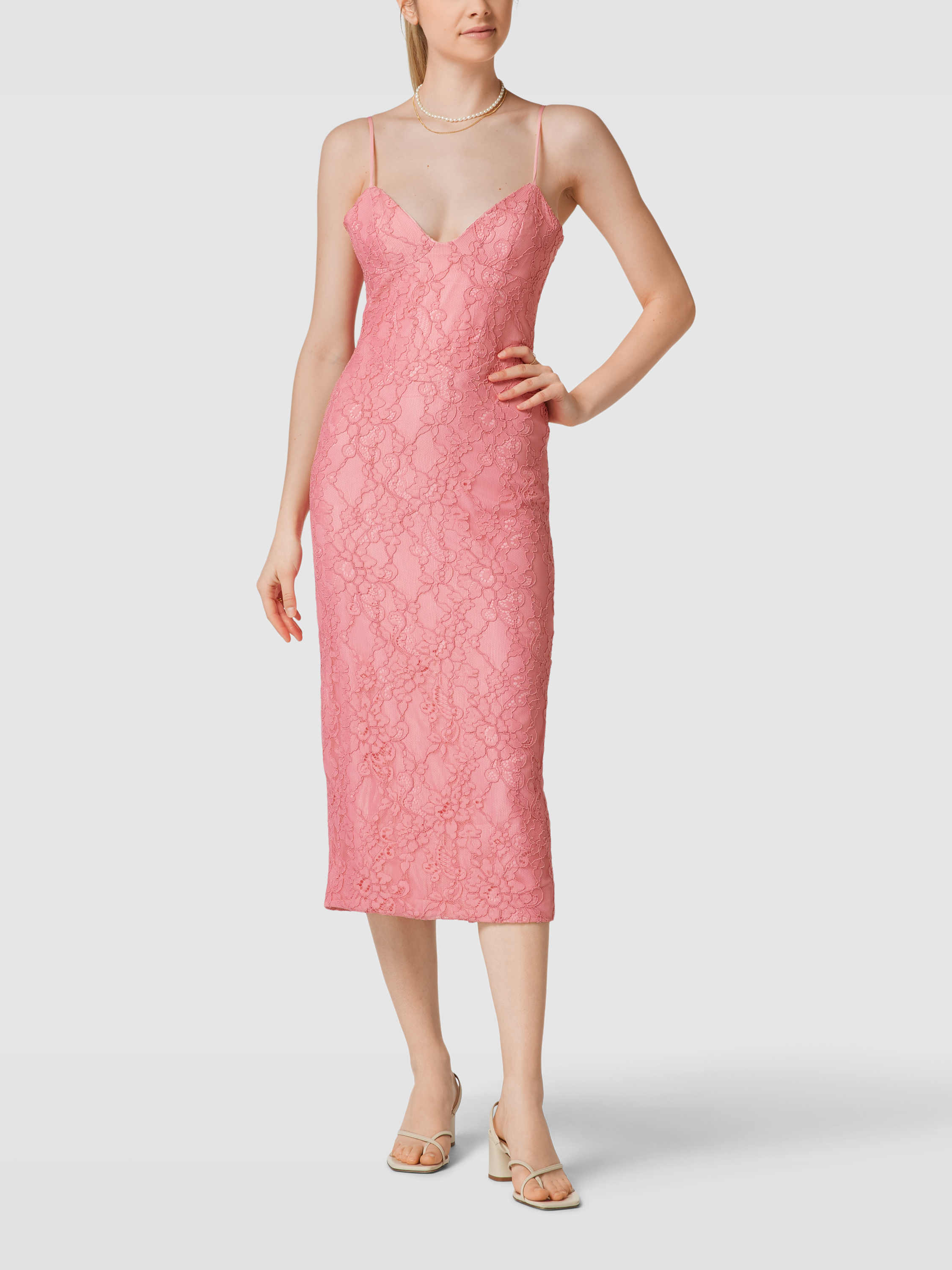 Knielange cocktailjurk met spaghettibandjes, model 'HADLEY' in roze