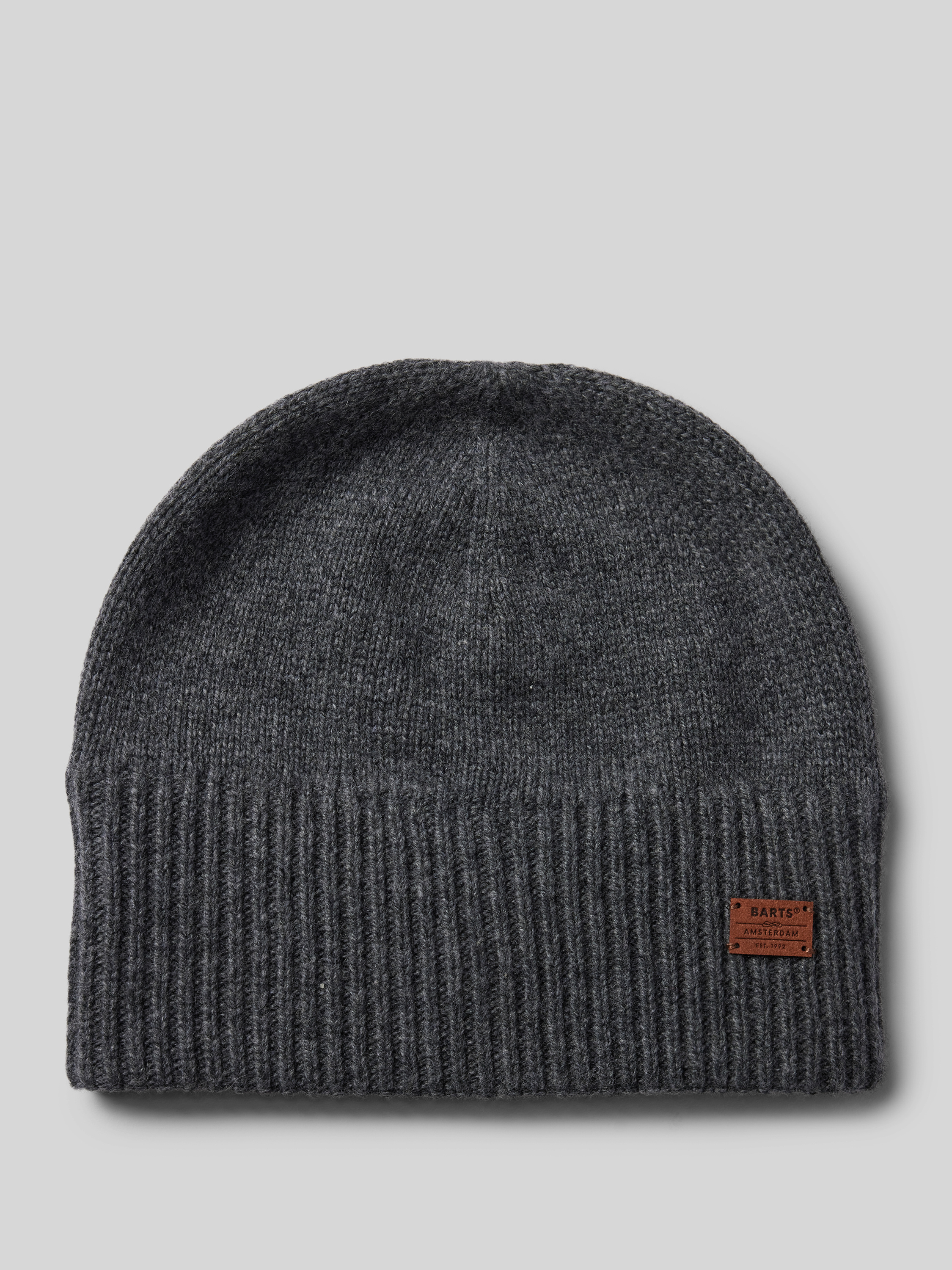 Beanie met labelapplicatie, model 'LACKE' in antraciet