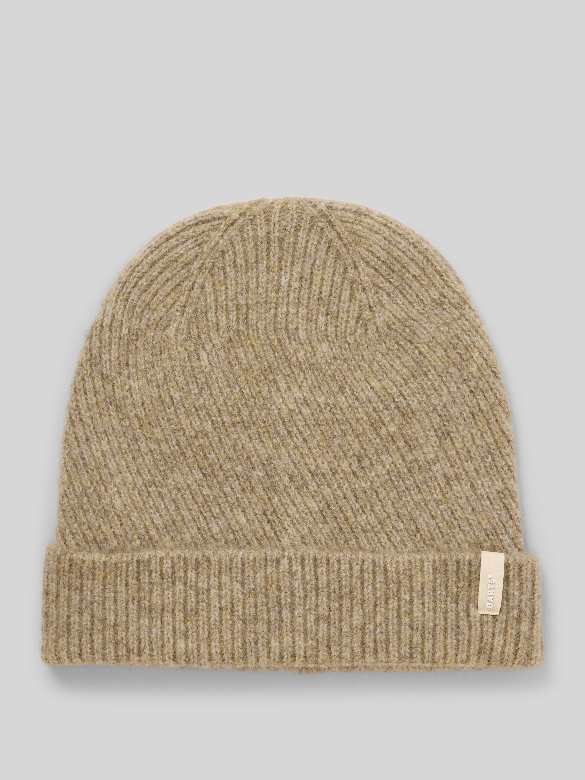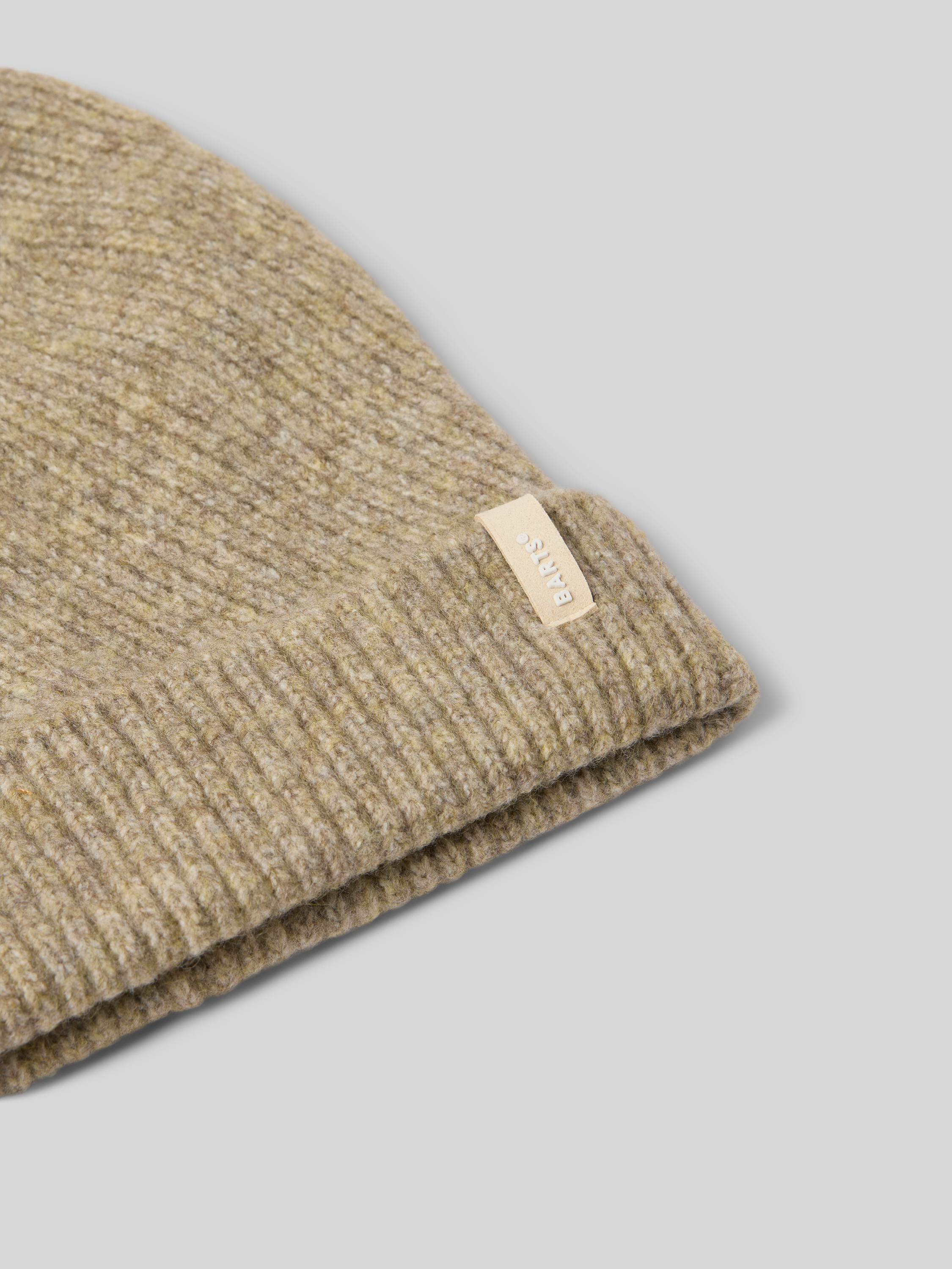 Gebreide muts met labeldetail, model 'Kirinda' in olijfgroen