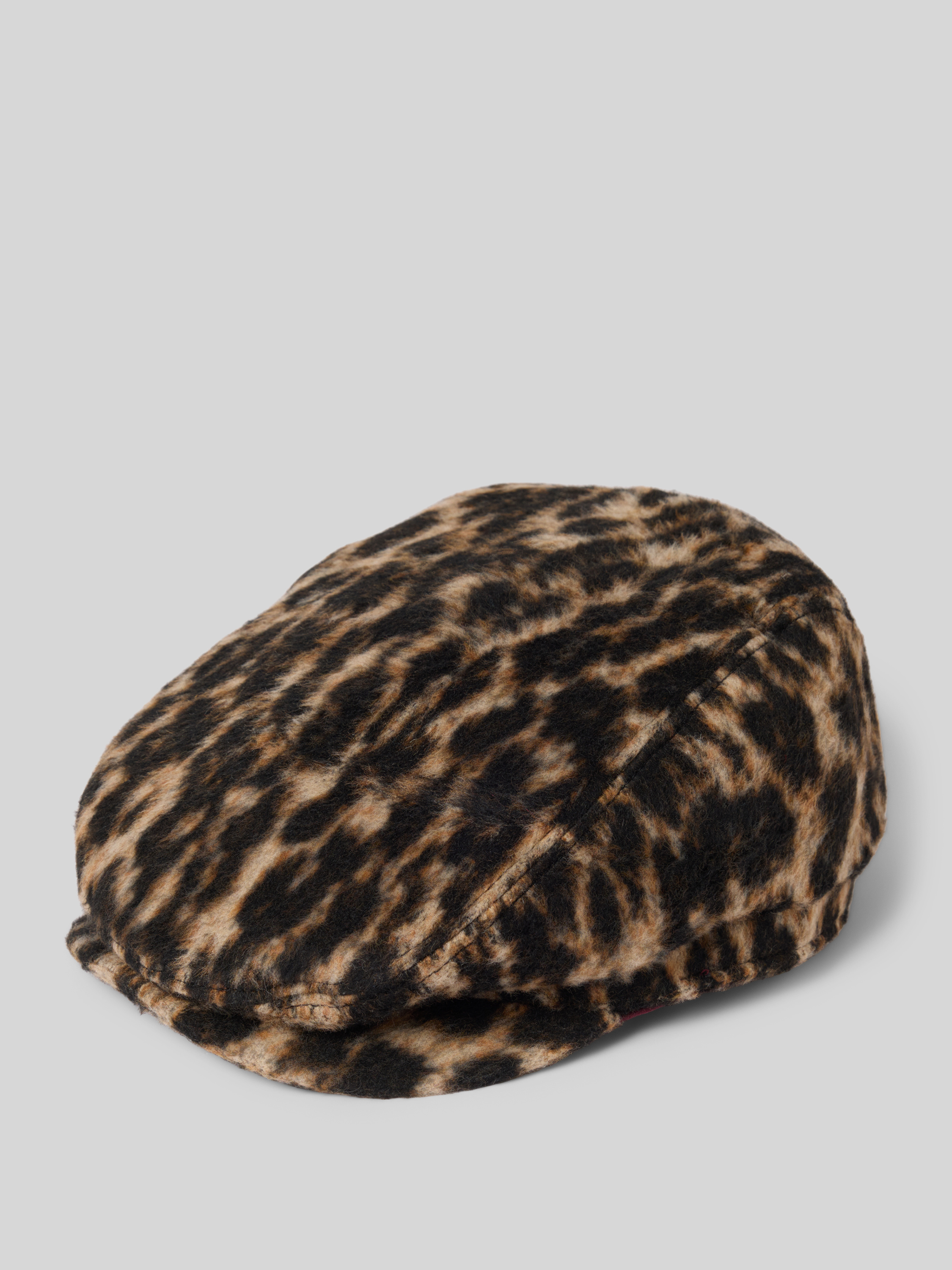 Platte pet van wol met labelpatch, model 'Systa' in middenbruin