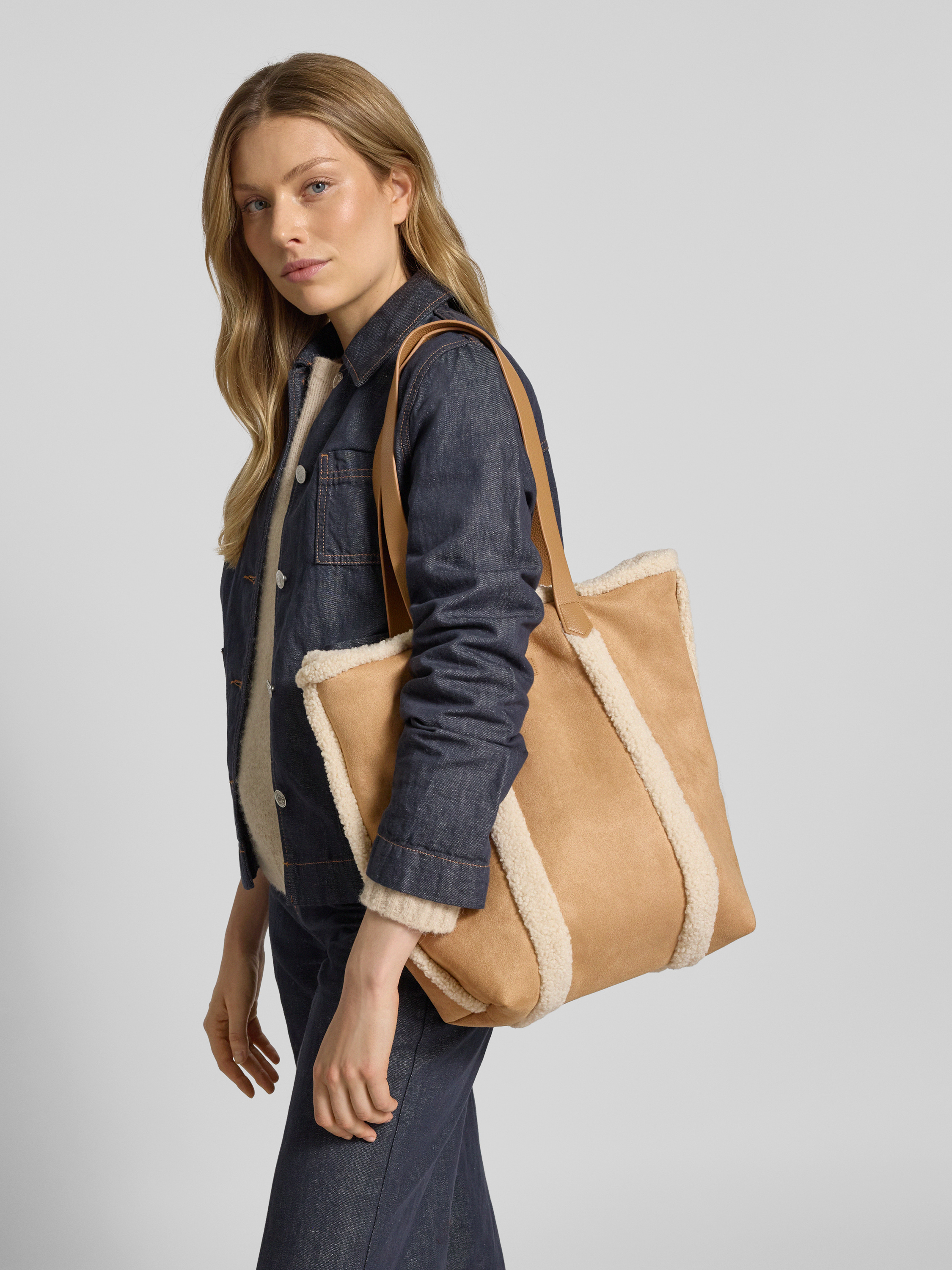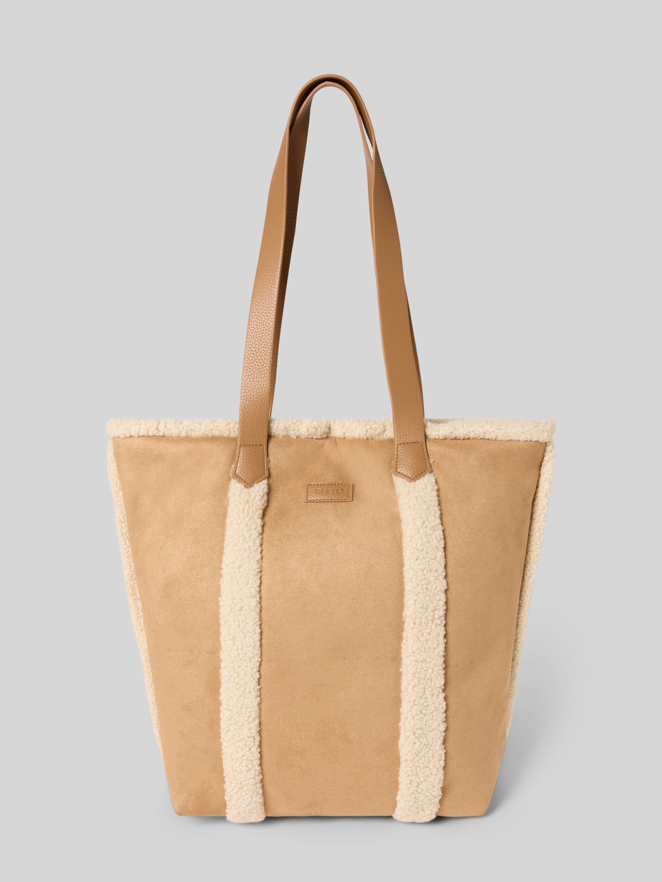 Tote bag met labeldetail, model 'Aedey' in lichtbruin