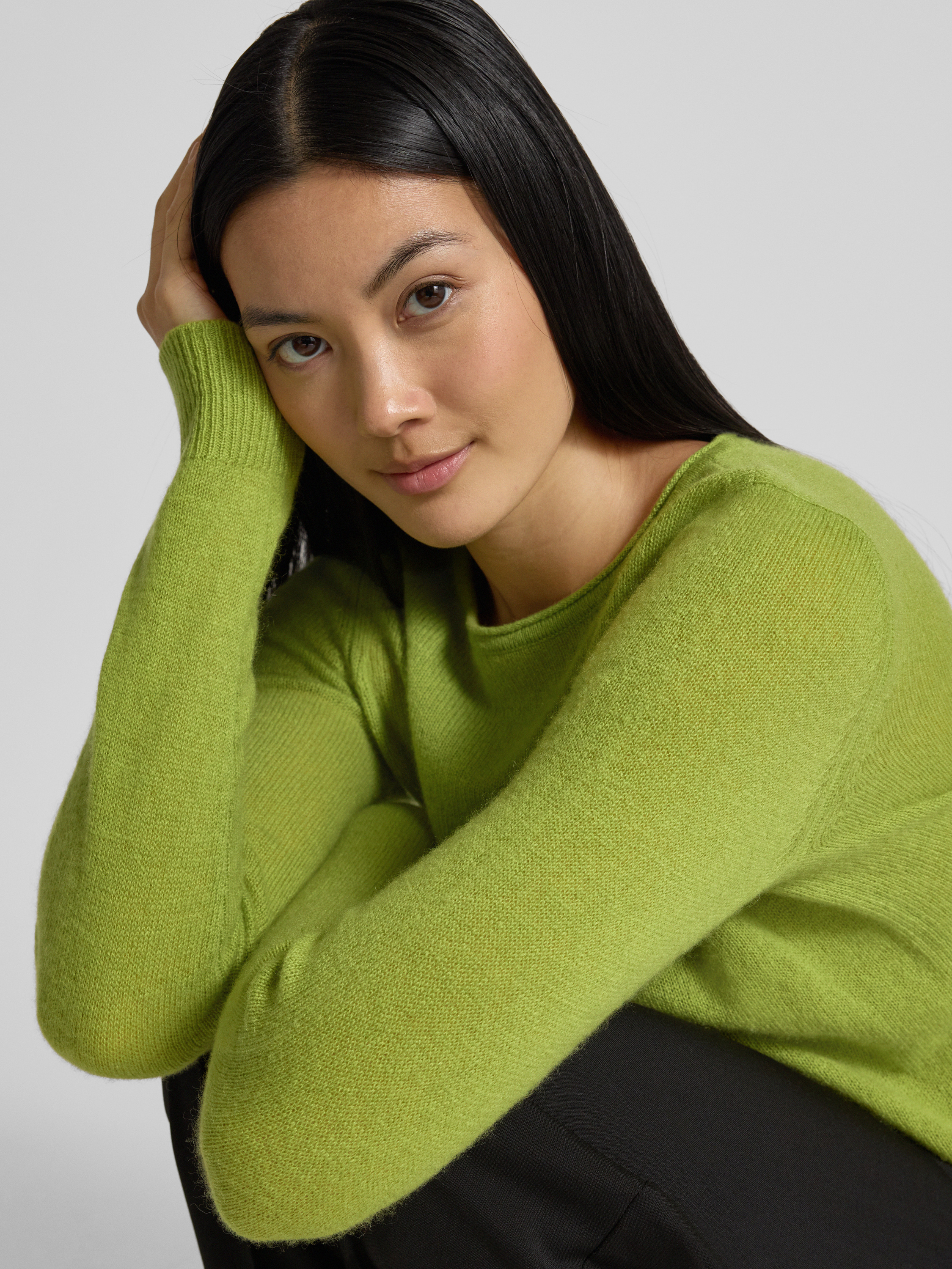 Gebreide pullover van kasjmier met ronde hals in lindegroen