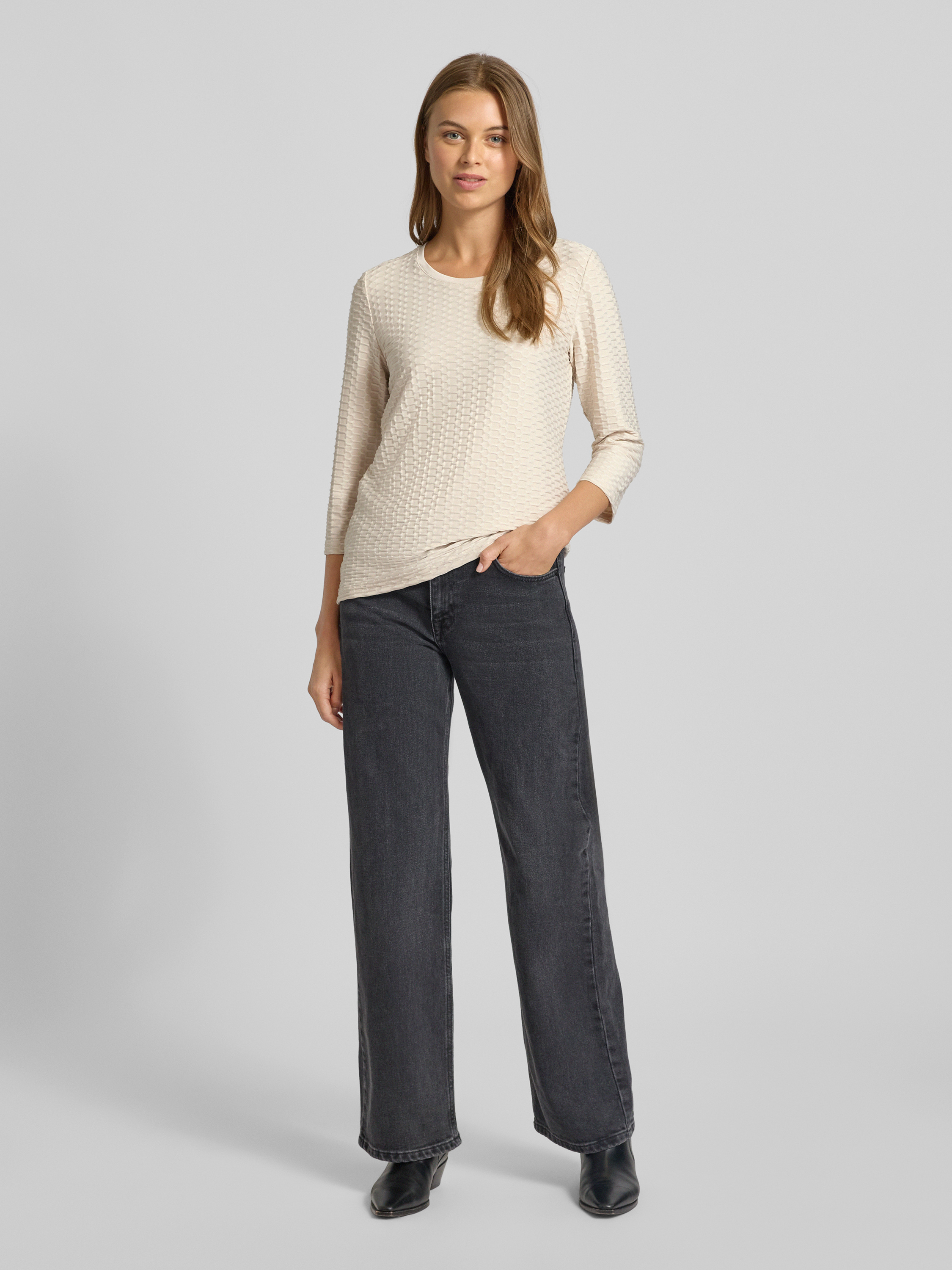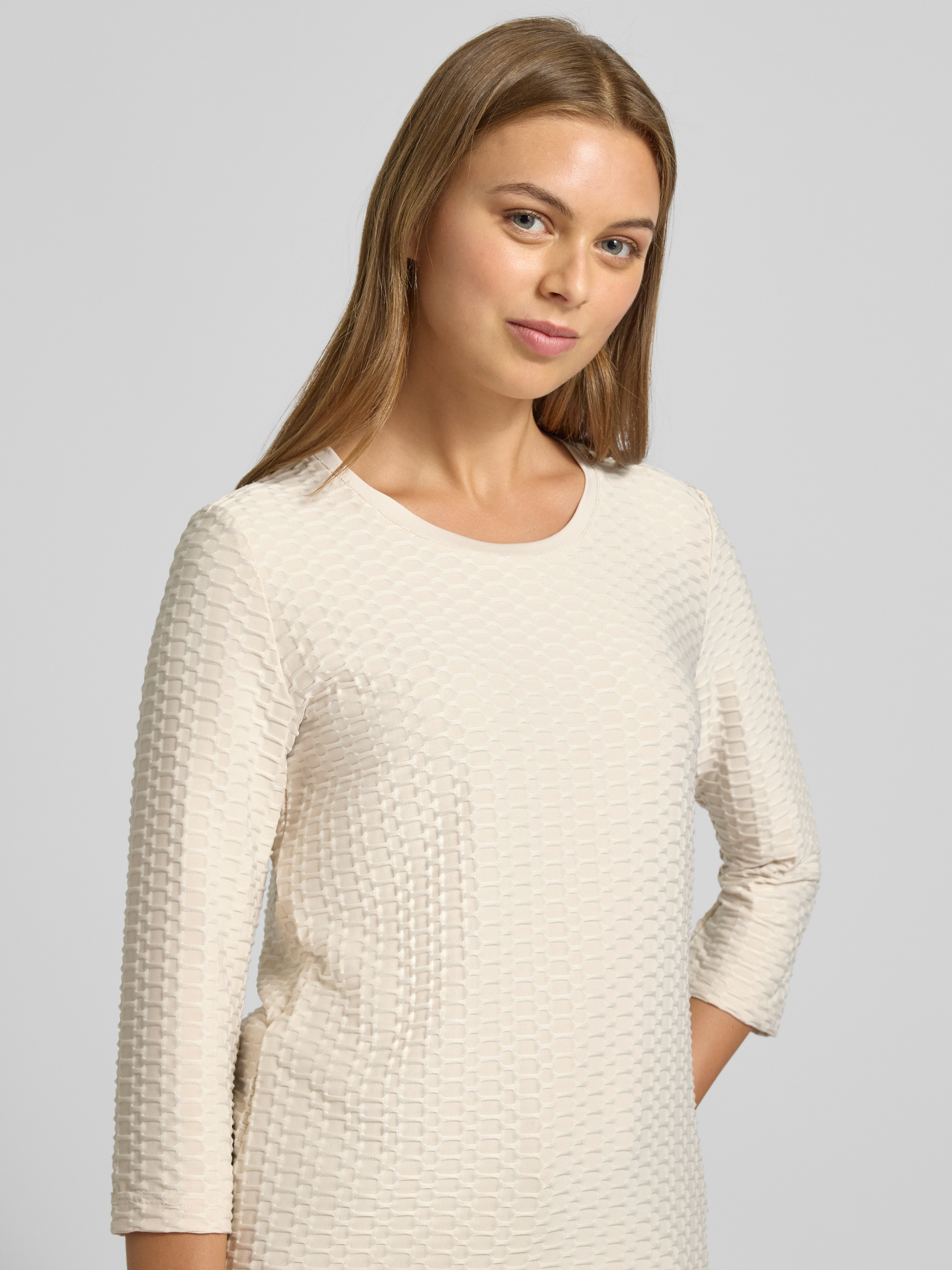 Shirt met lange mouwen en structuurmotief in beige