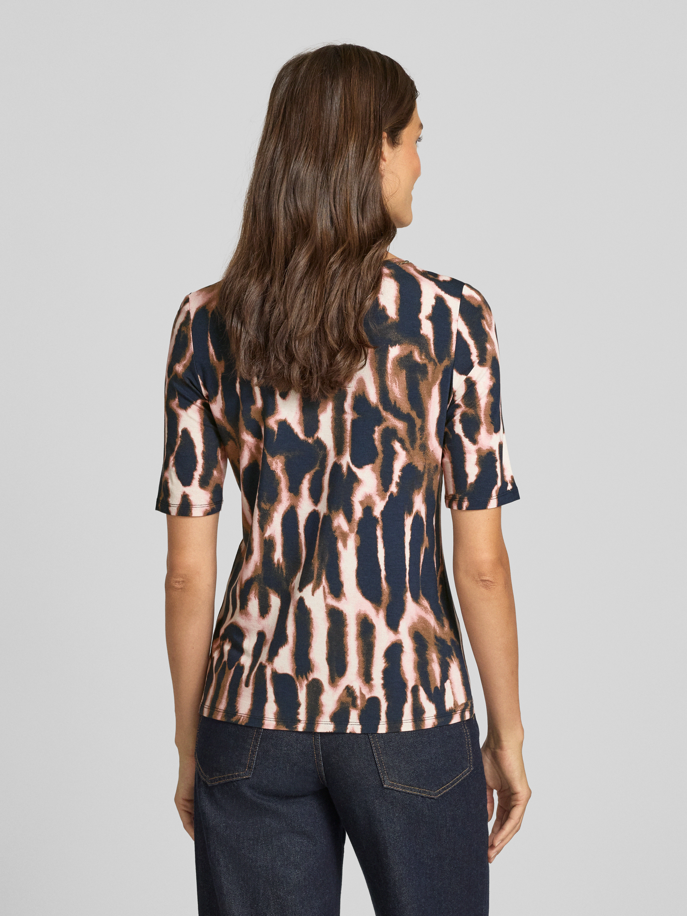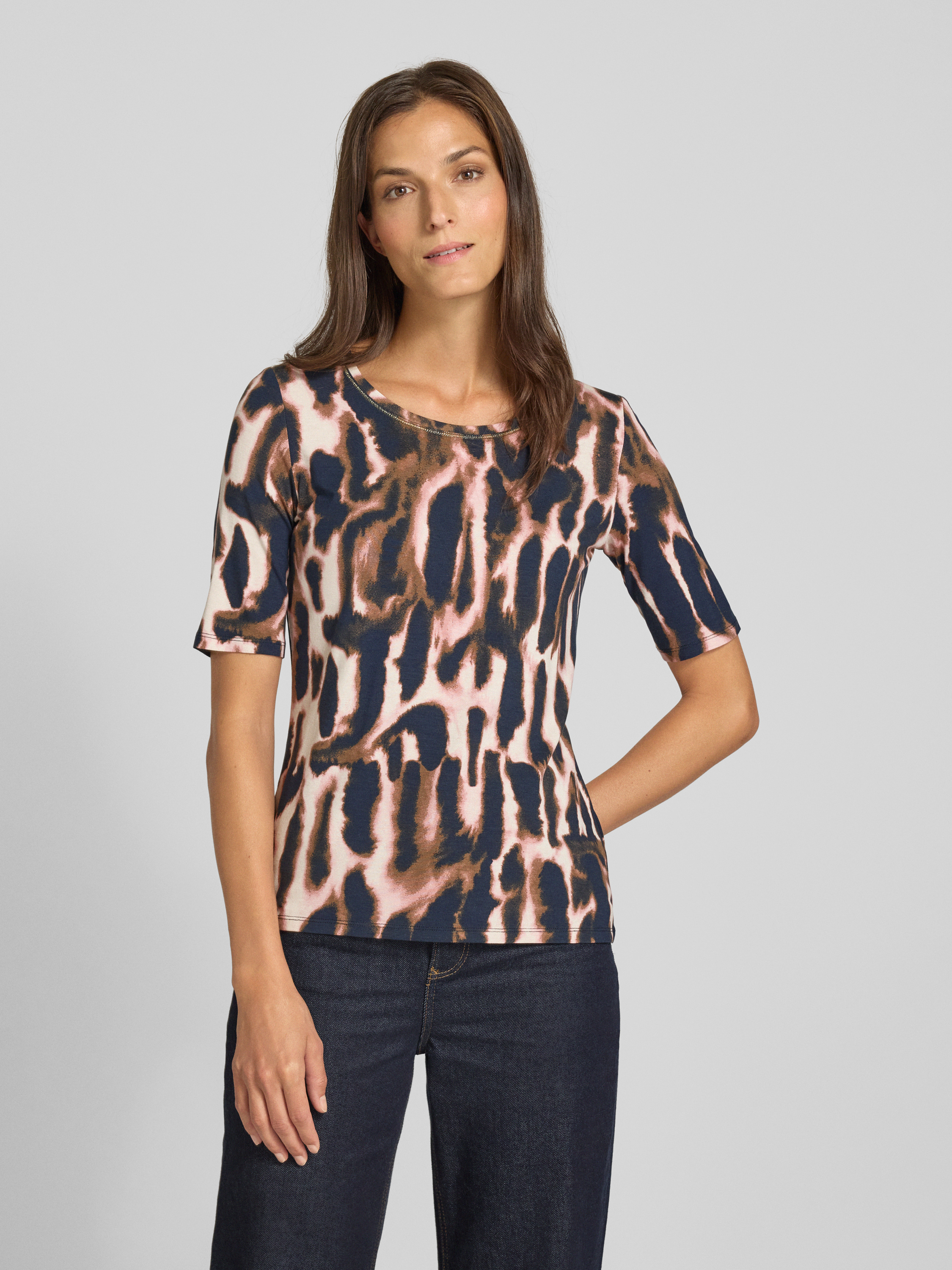 Slim fit T-shirt van viscosemix, model 'Juli'' in marineblauw