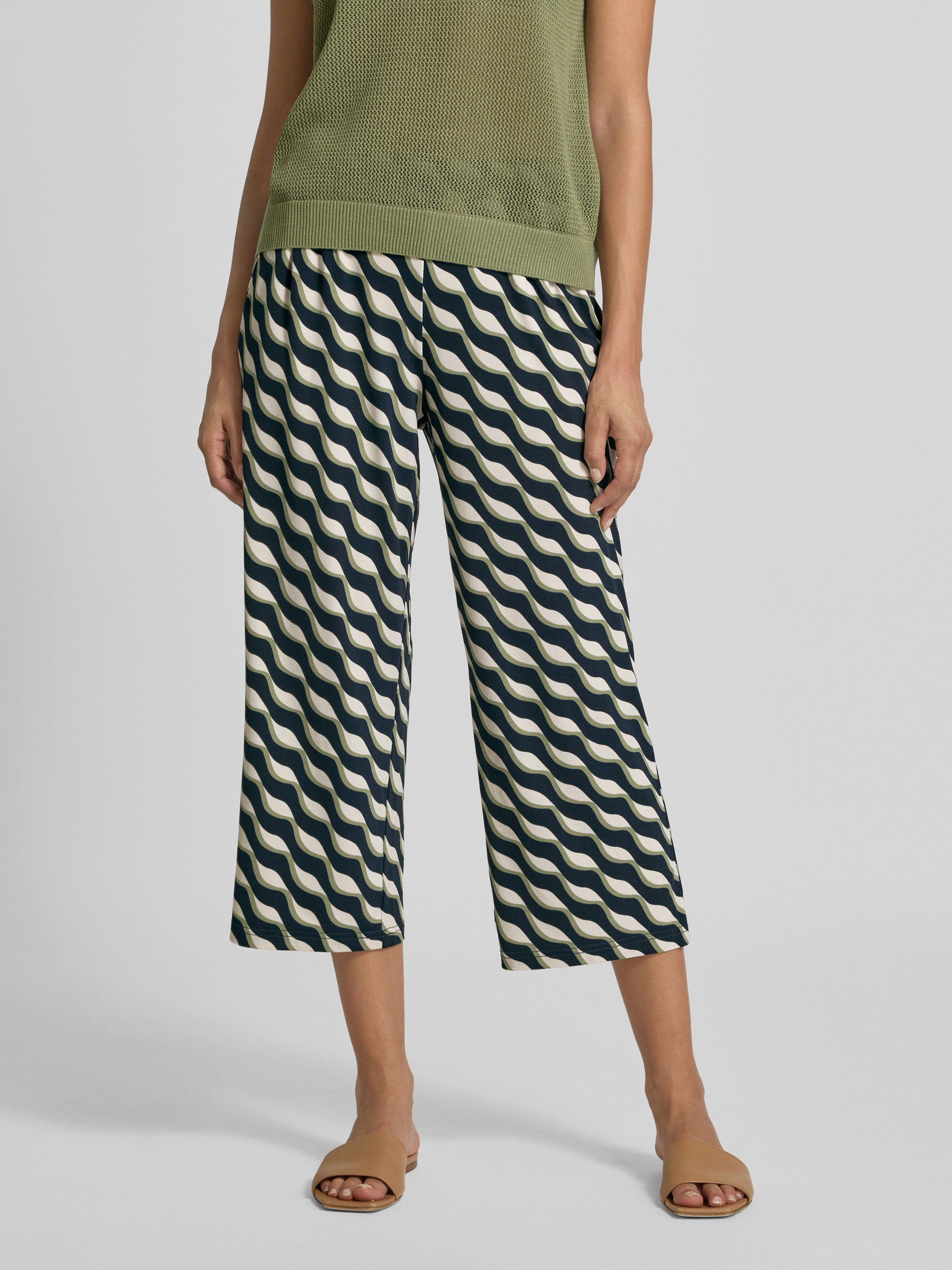 Stoffen broek met verkorte pasvorm en elastische band in marineblauw
