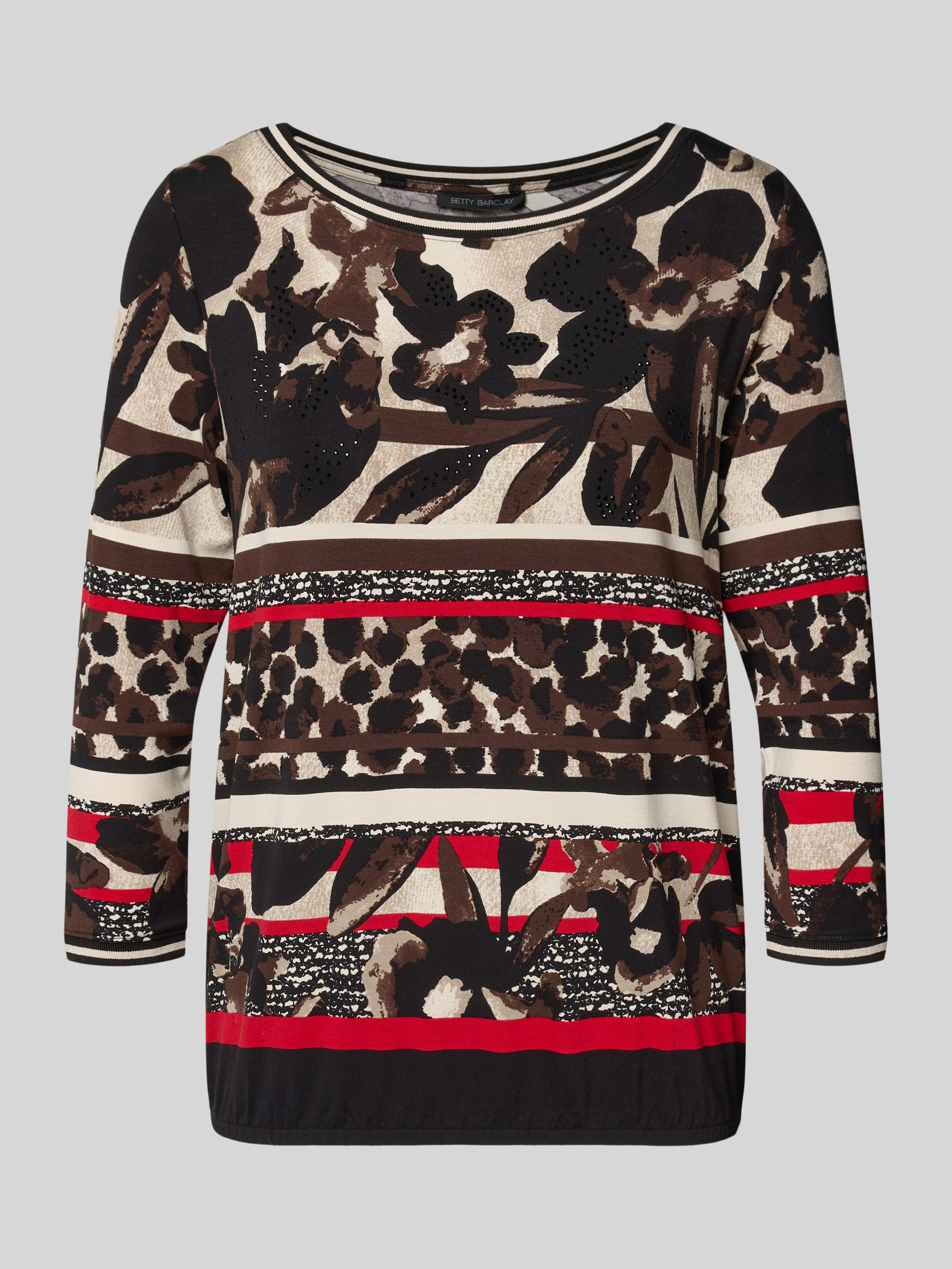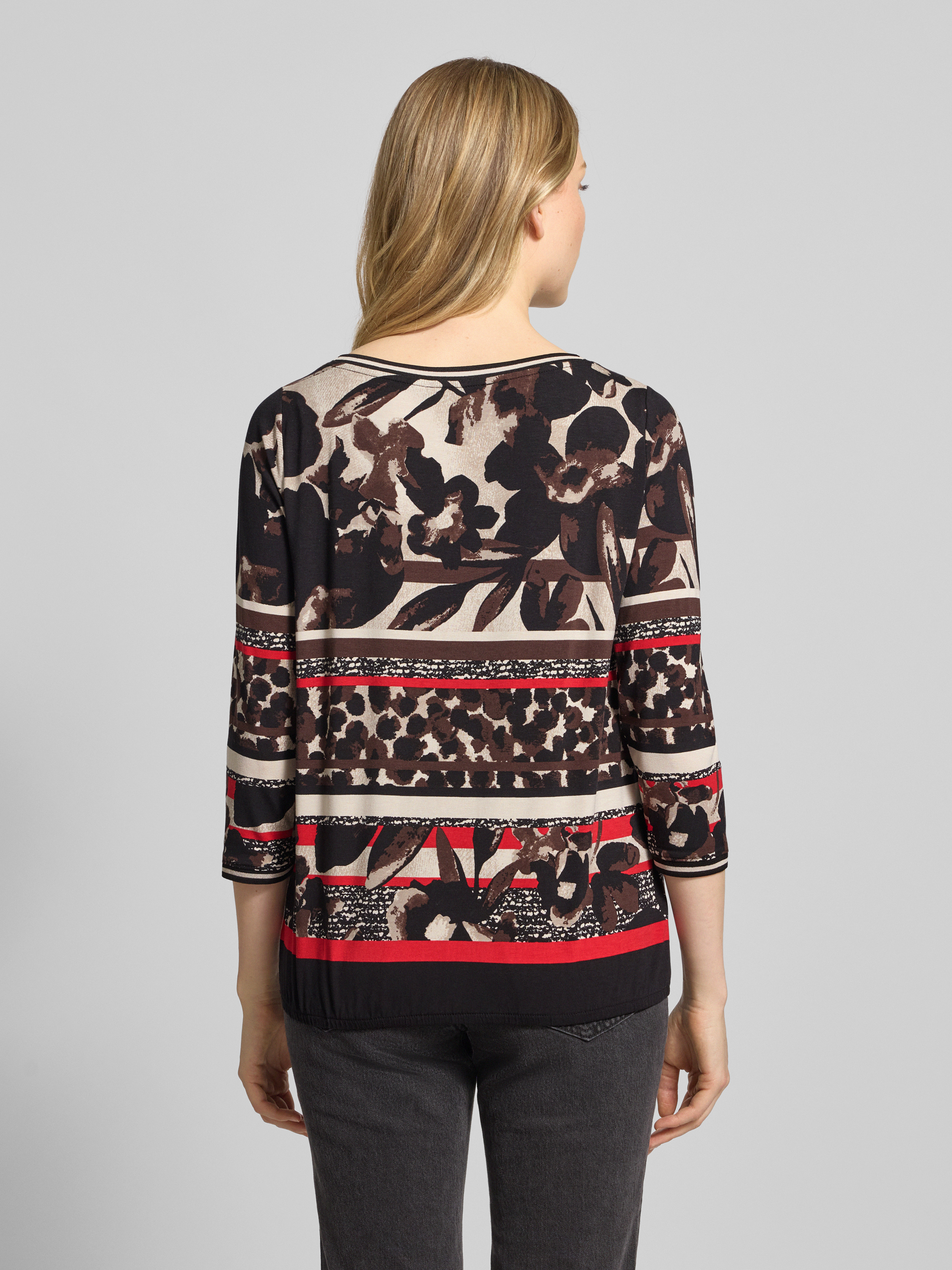 T-shirt in all-over look met 3/4-mouwen in zwart