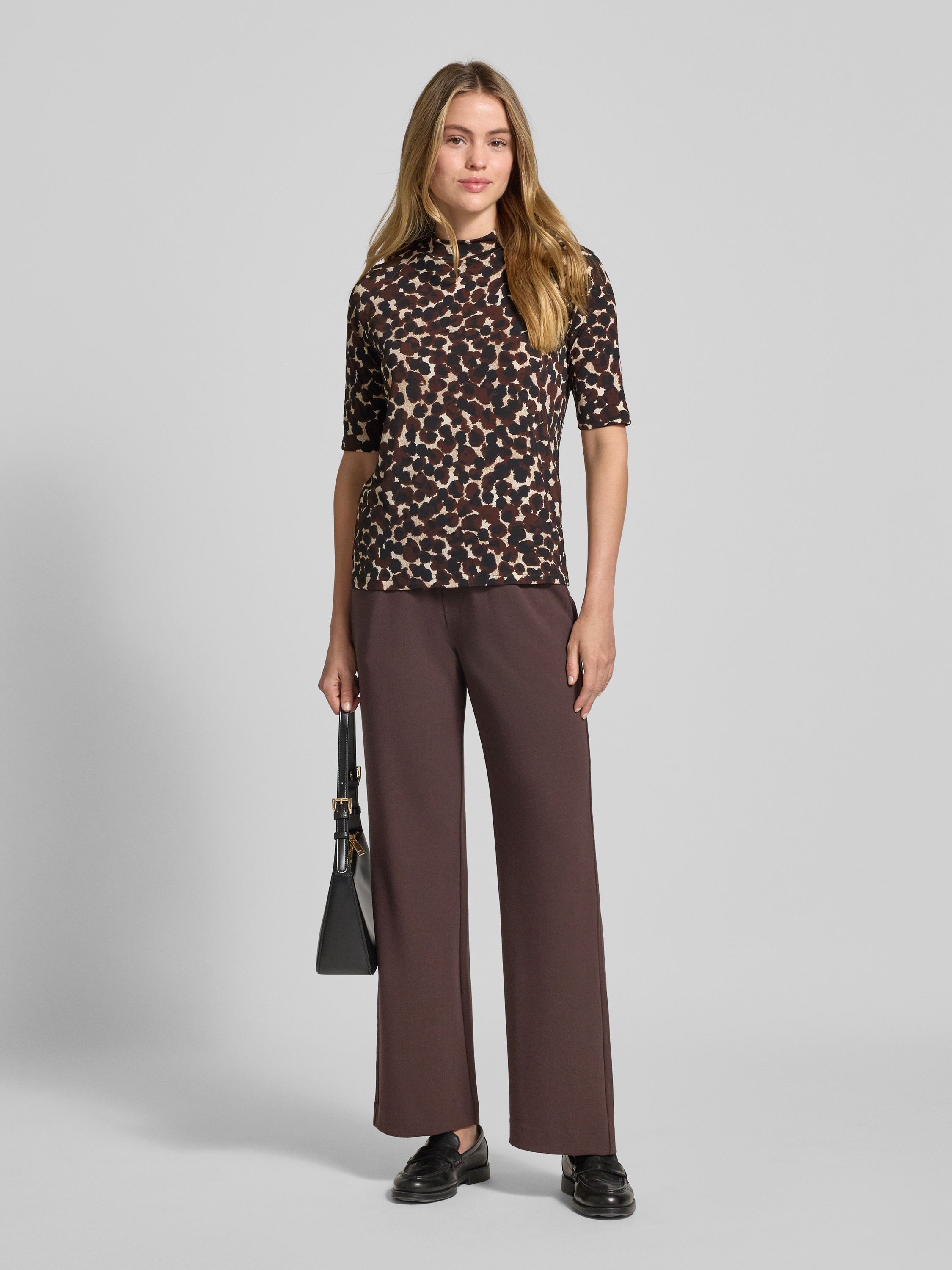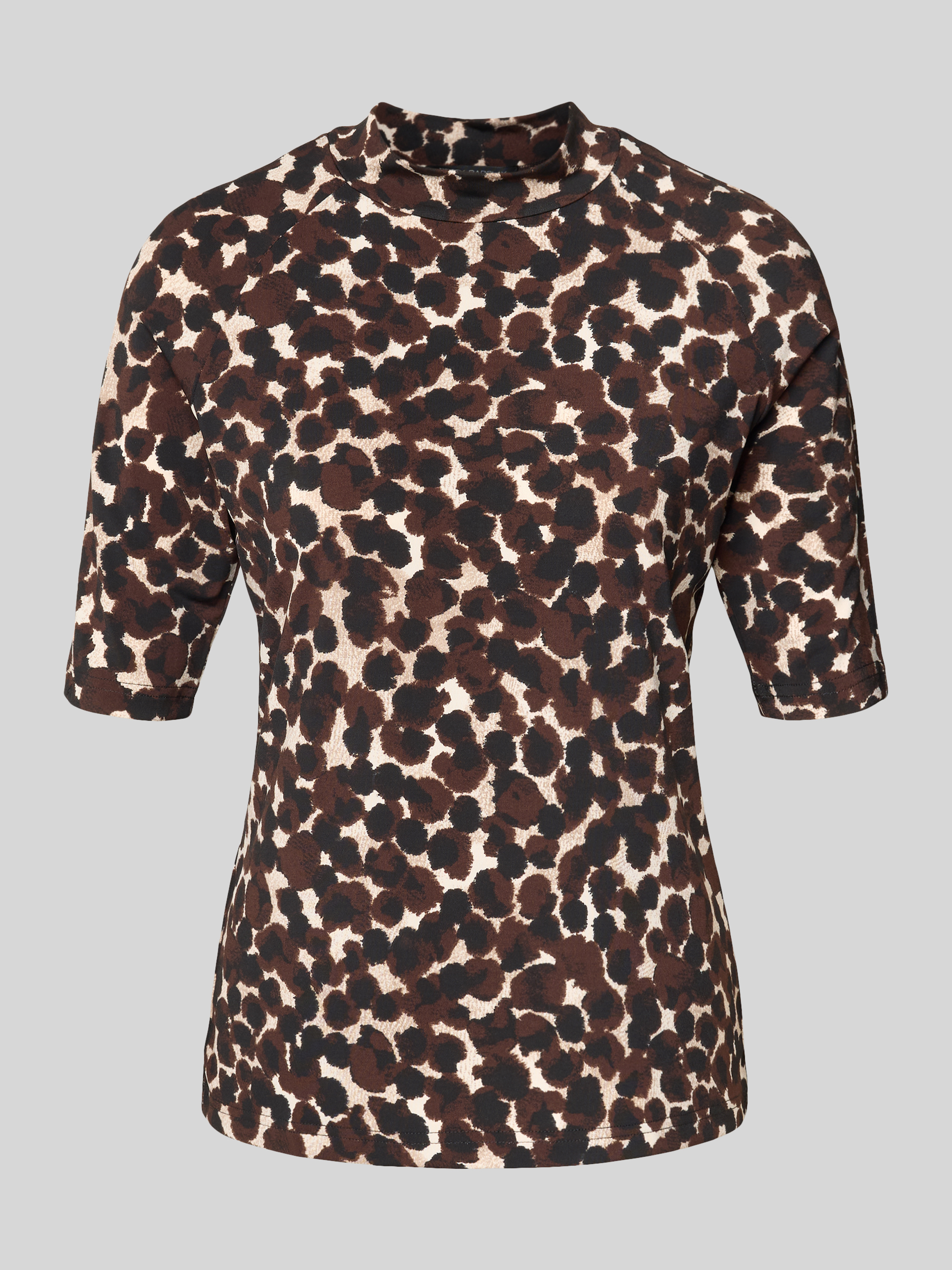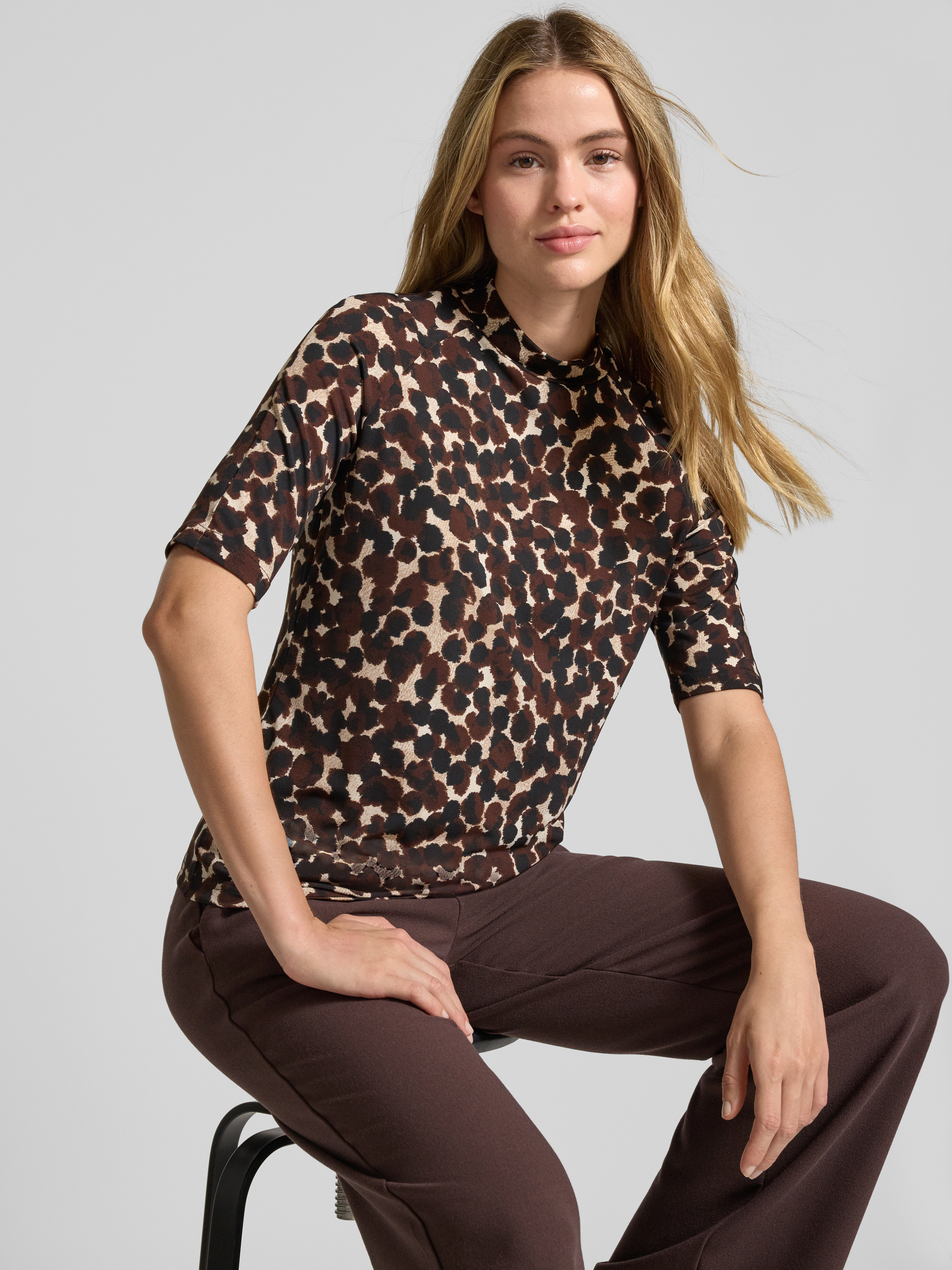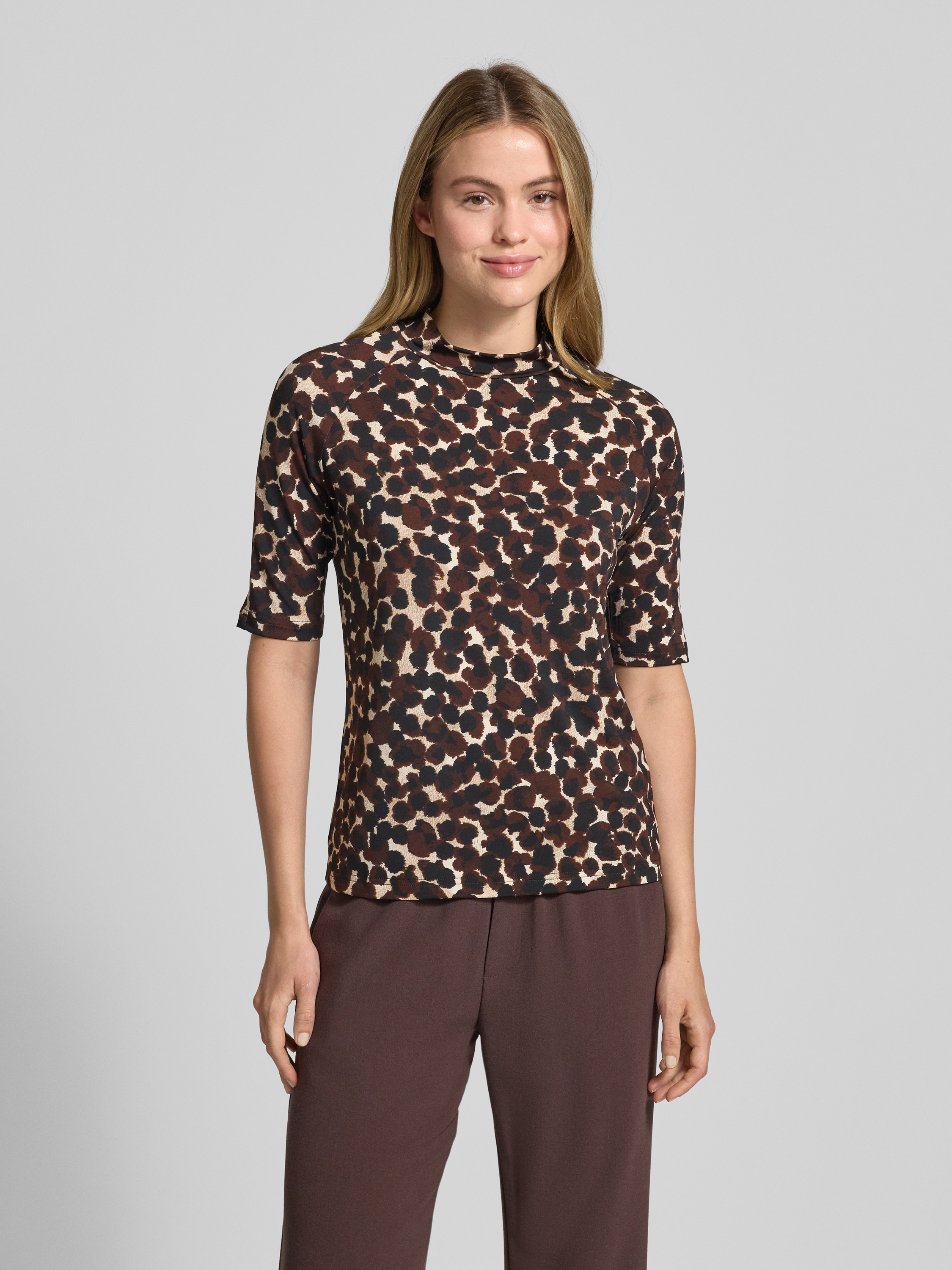 T-shirt met opstaande kraag en 1/2-mouwen in donkerbruin