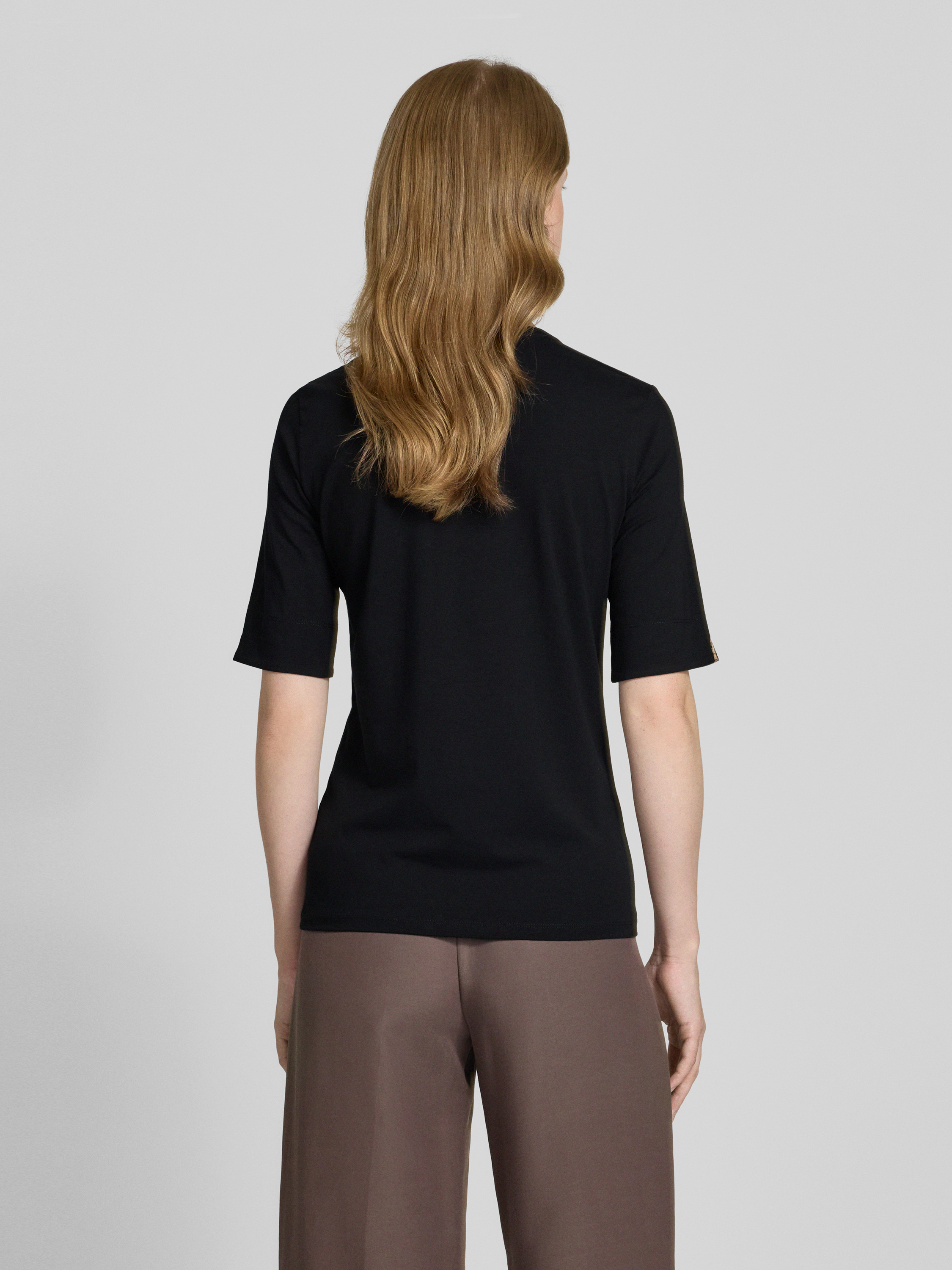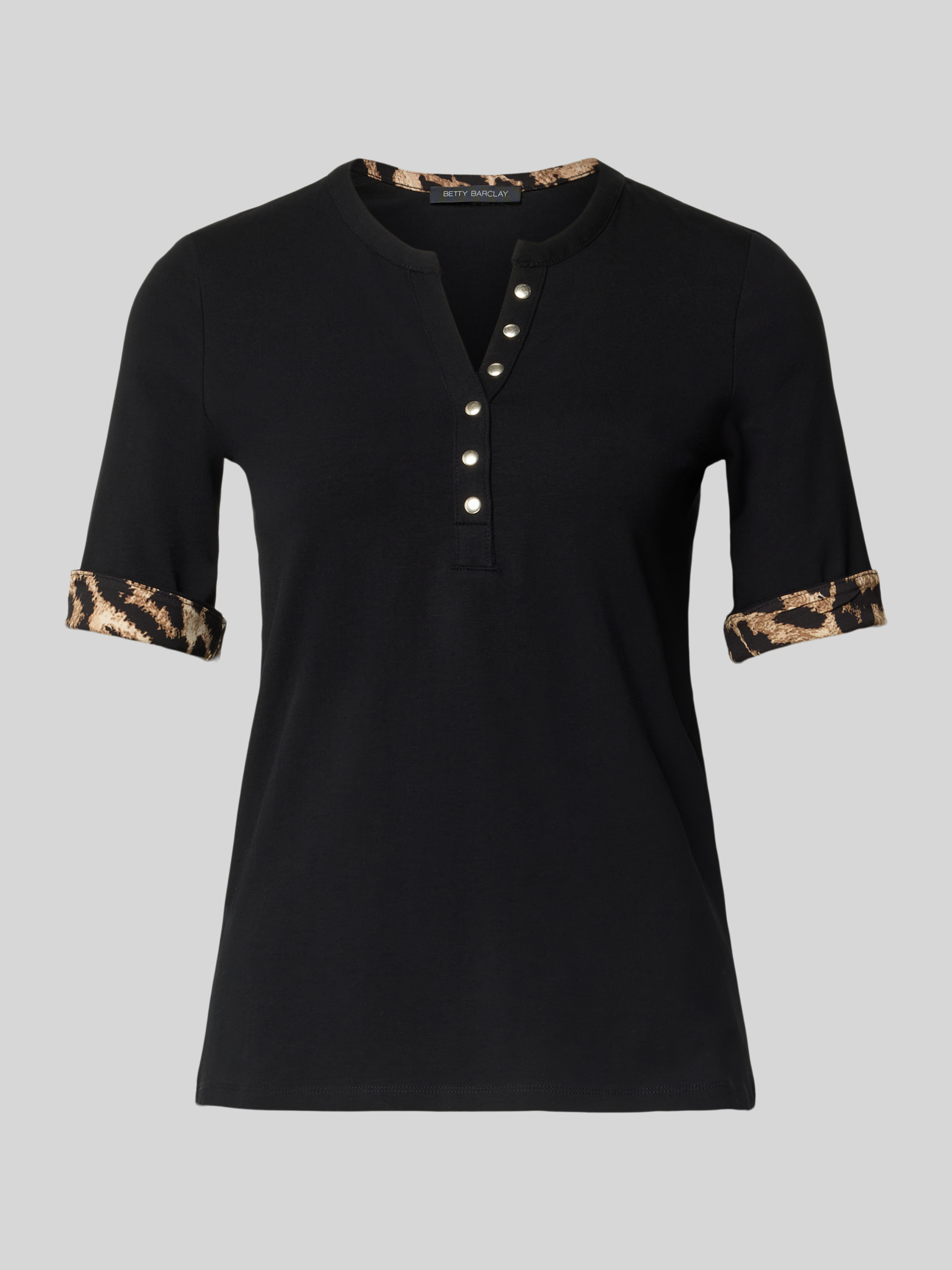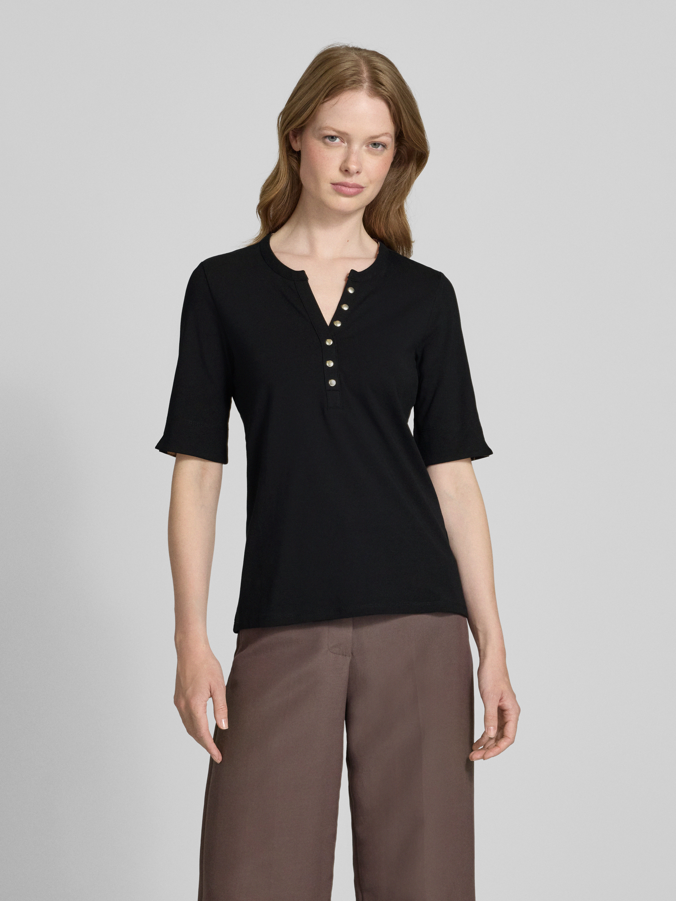 T-shirt met V-hals en knoopsluiting in zwart