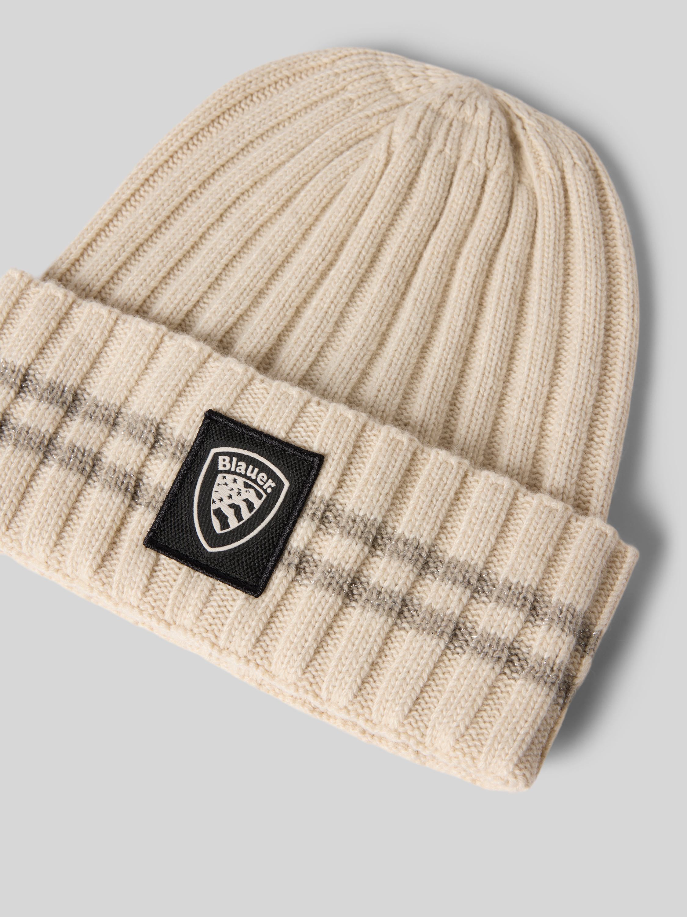 Blauer UsaBeanie van een mix van viscose en kasjmier in beige