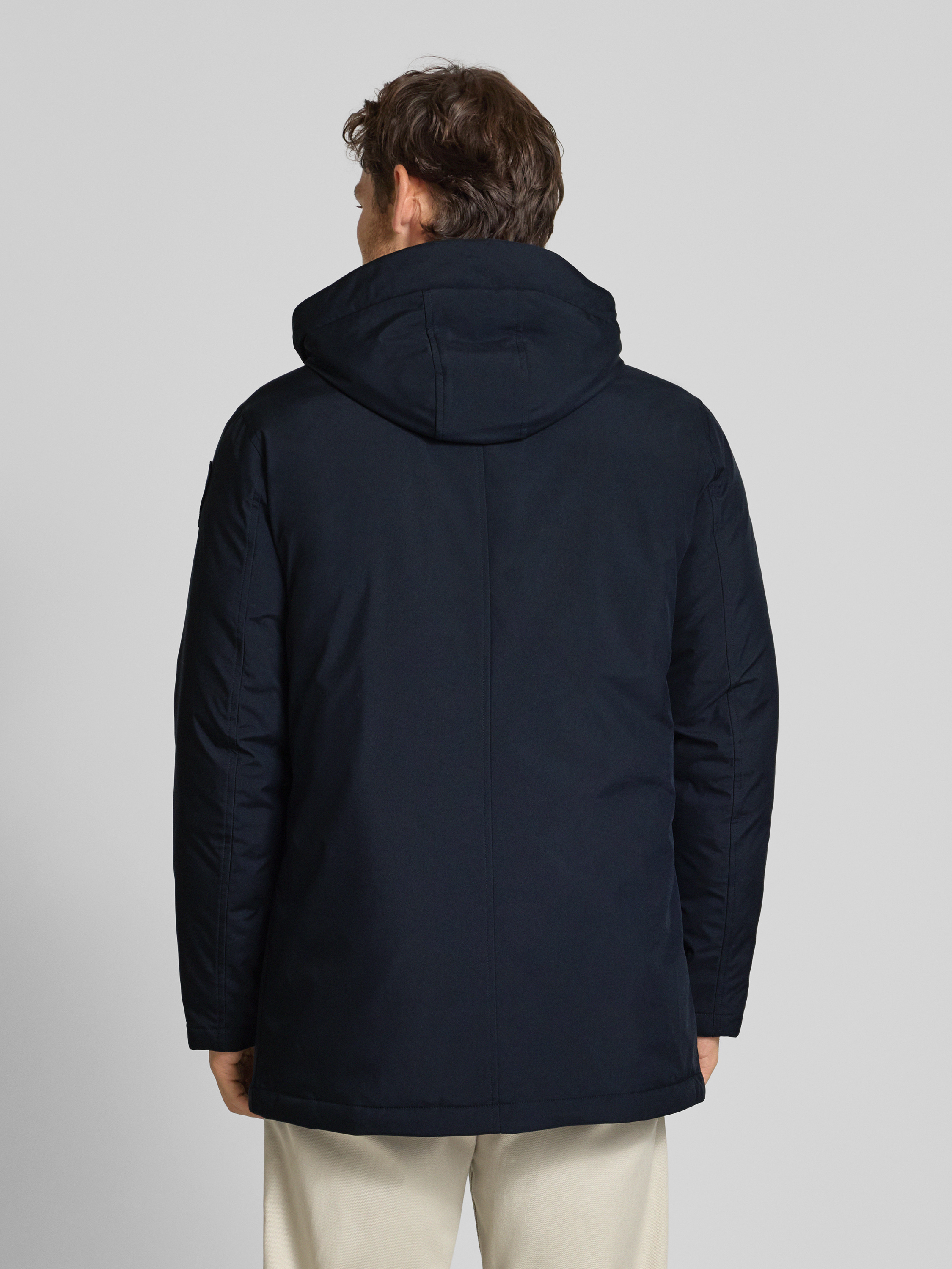 Donsjack met capuchon, model 'CHESTER' in marineblauw