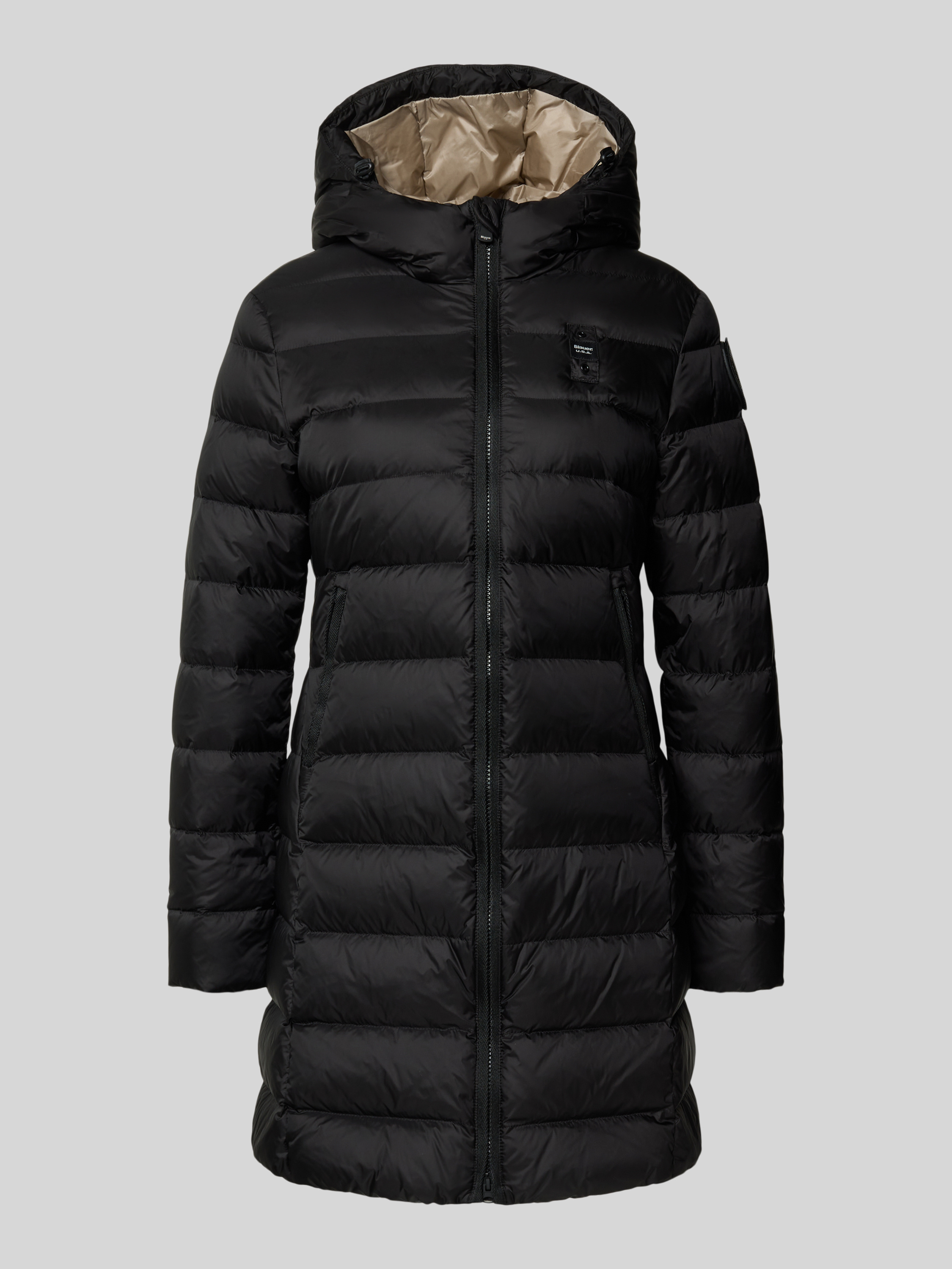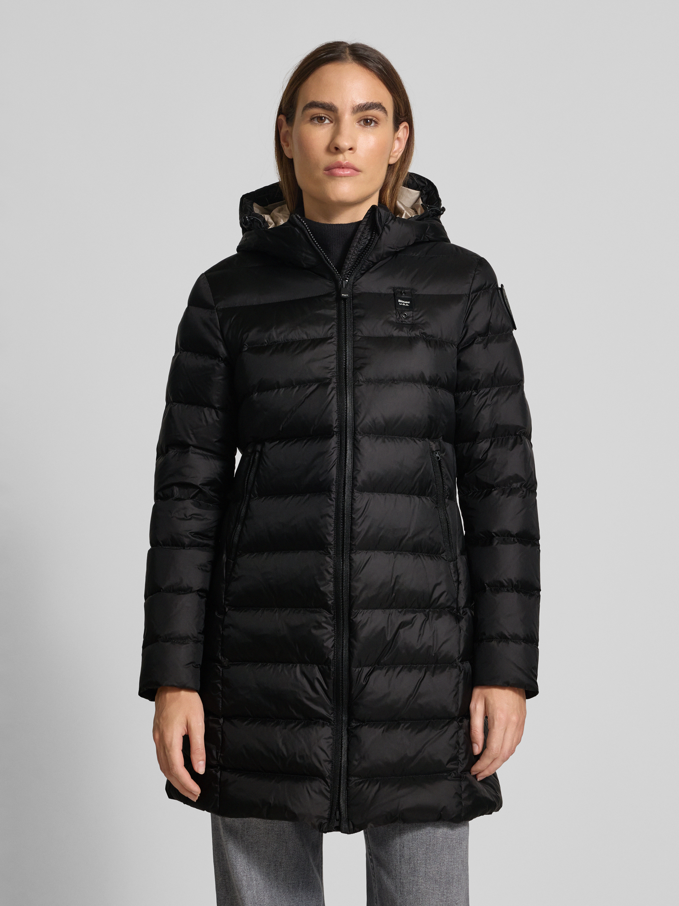 Blauer UsaLange donsjas met capuchon, model 'AGNES' in zwart