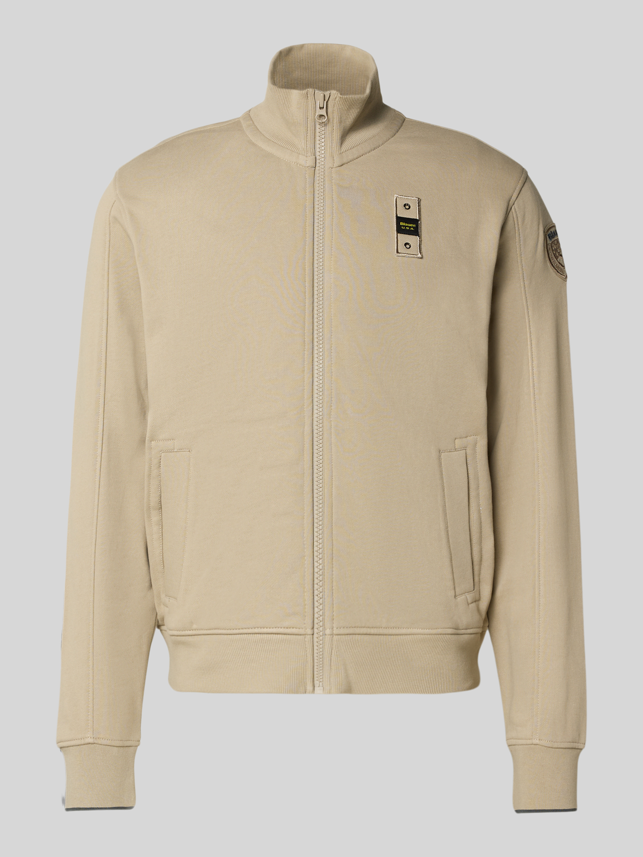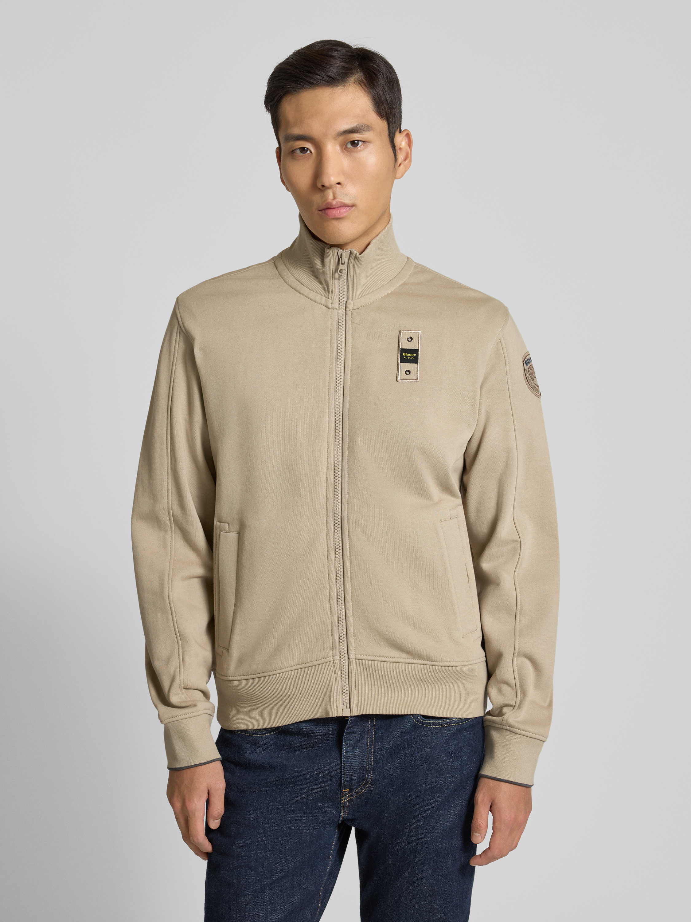 Sweatjack met opstaande kraag en labelstitching, model 'CITY' in beige