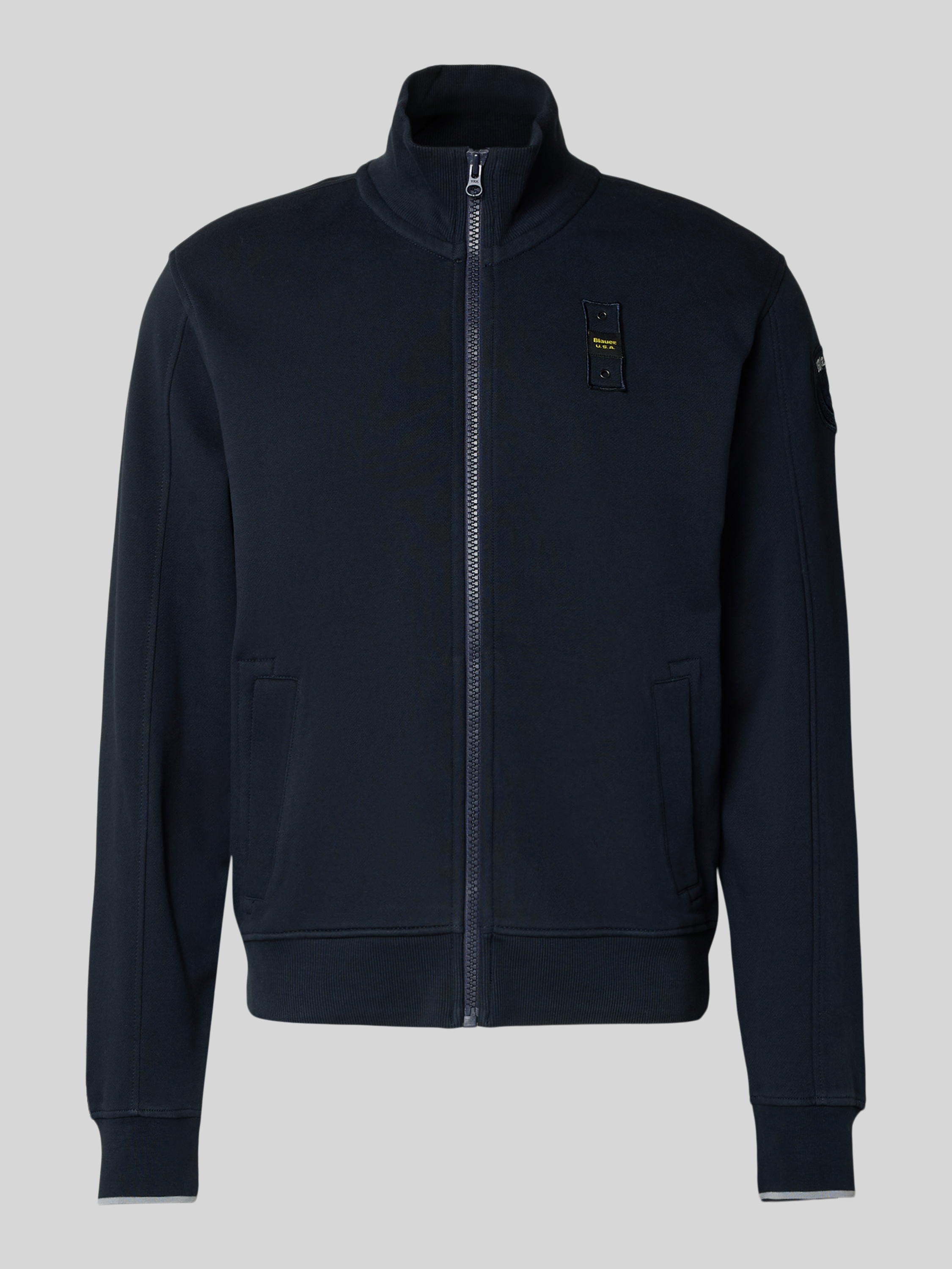 Sweatjack met opstaande kraag en labelstitching, model 'CITY' in marineblauw