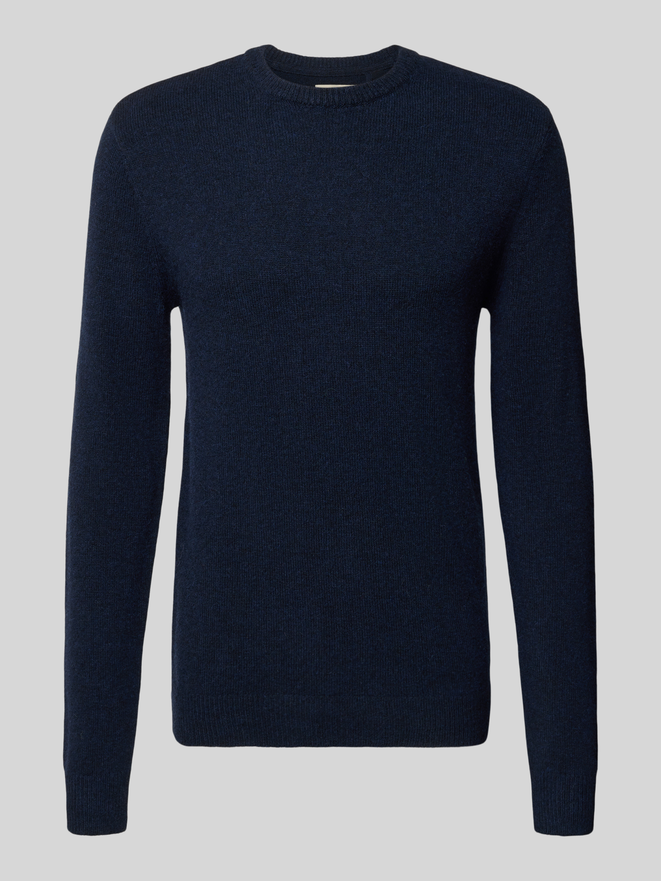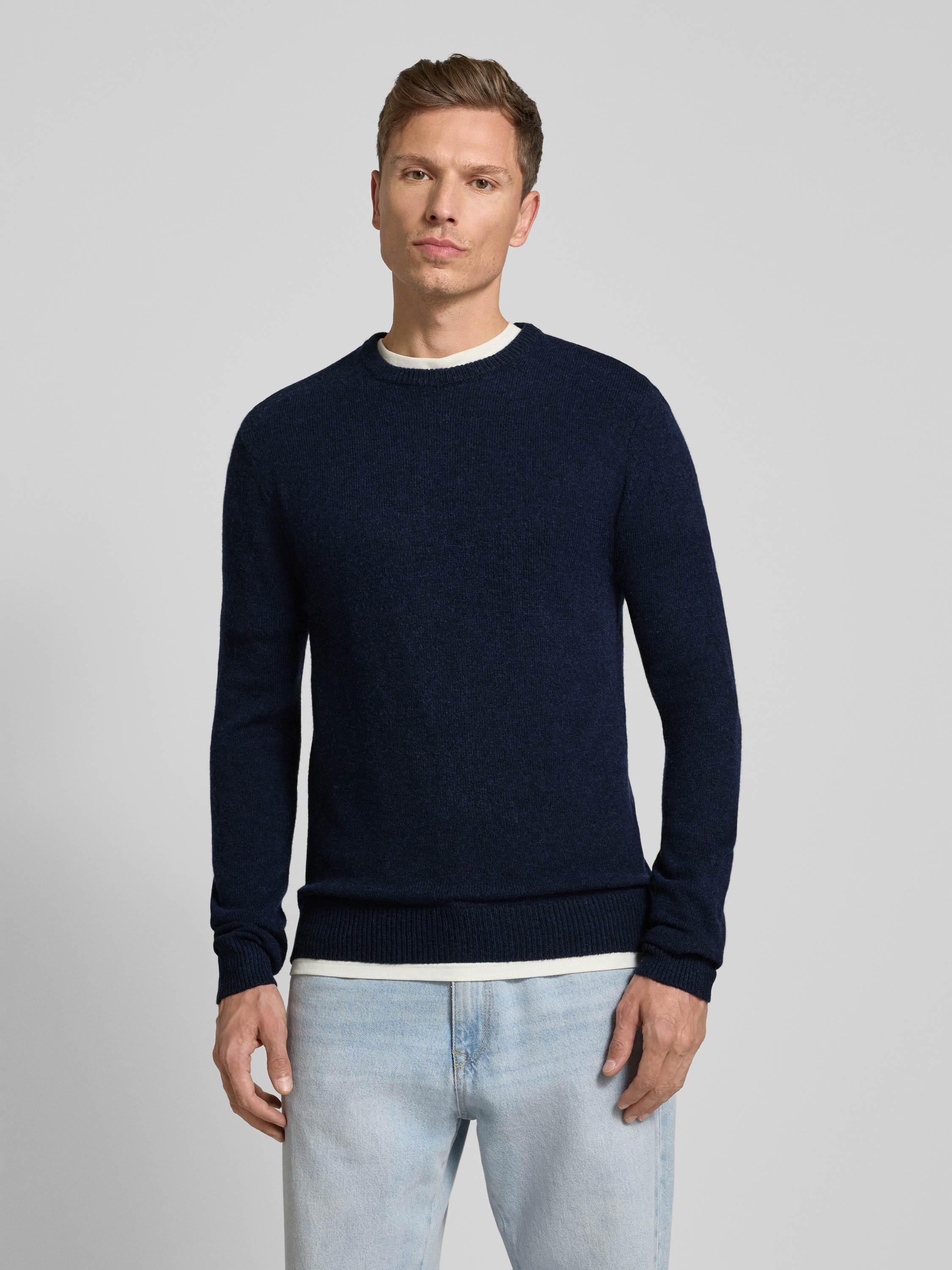 Gebreide pullover met ribboorden, model 'BRANKO' in donkerblauw gemêleerd