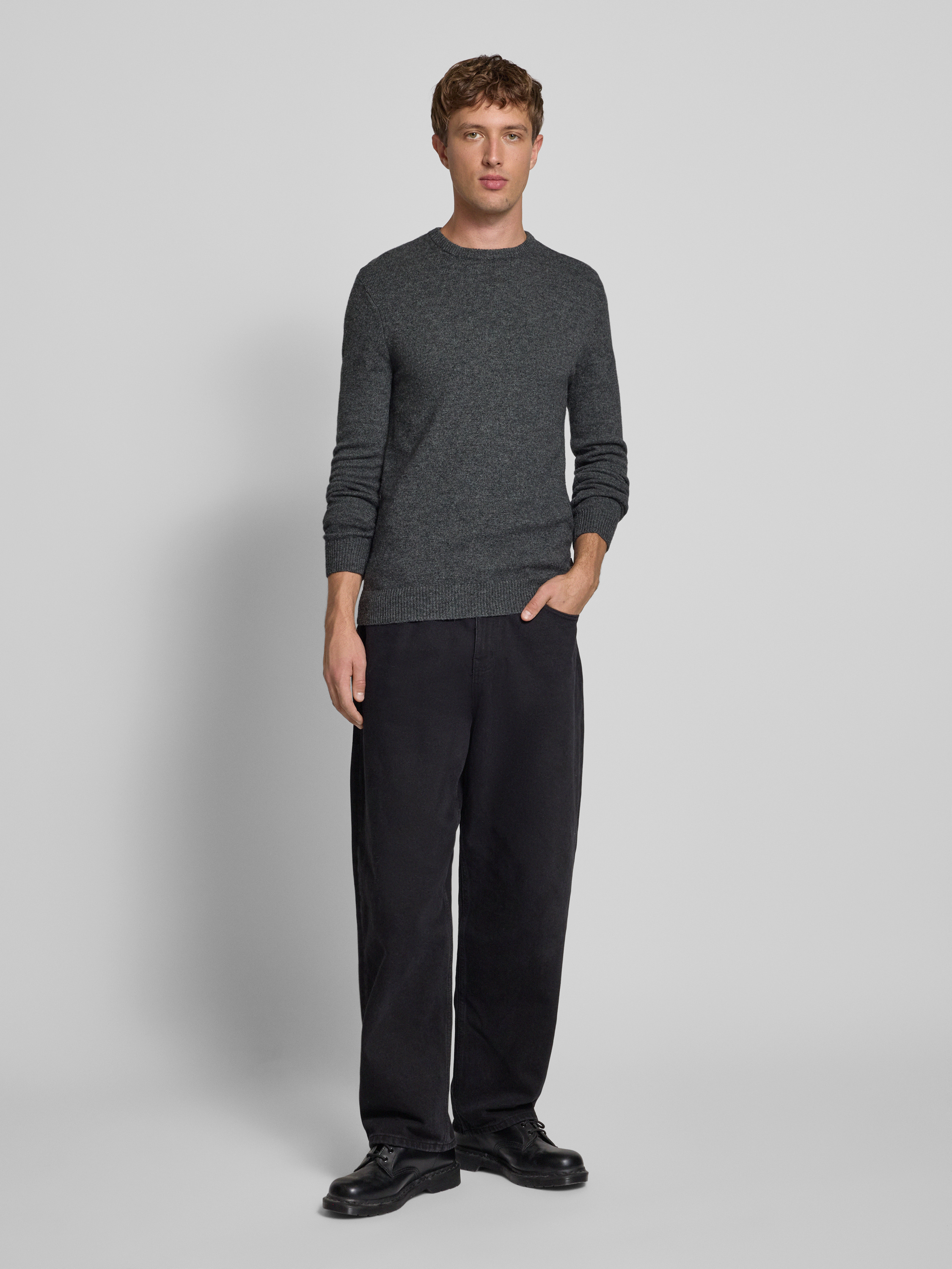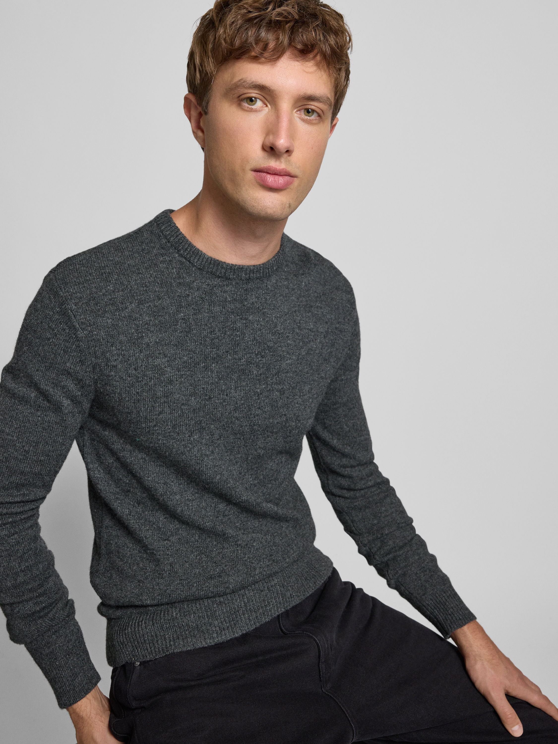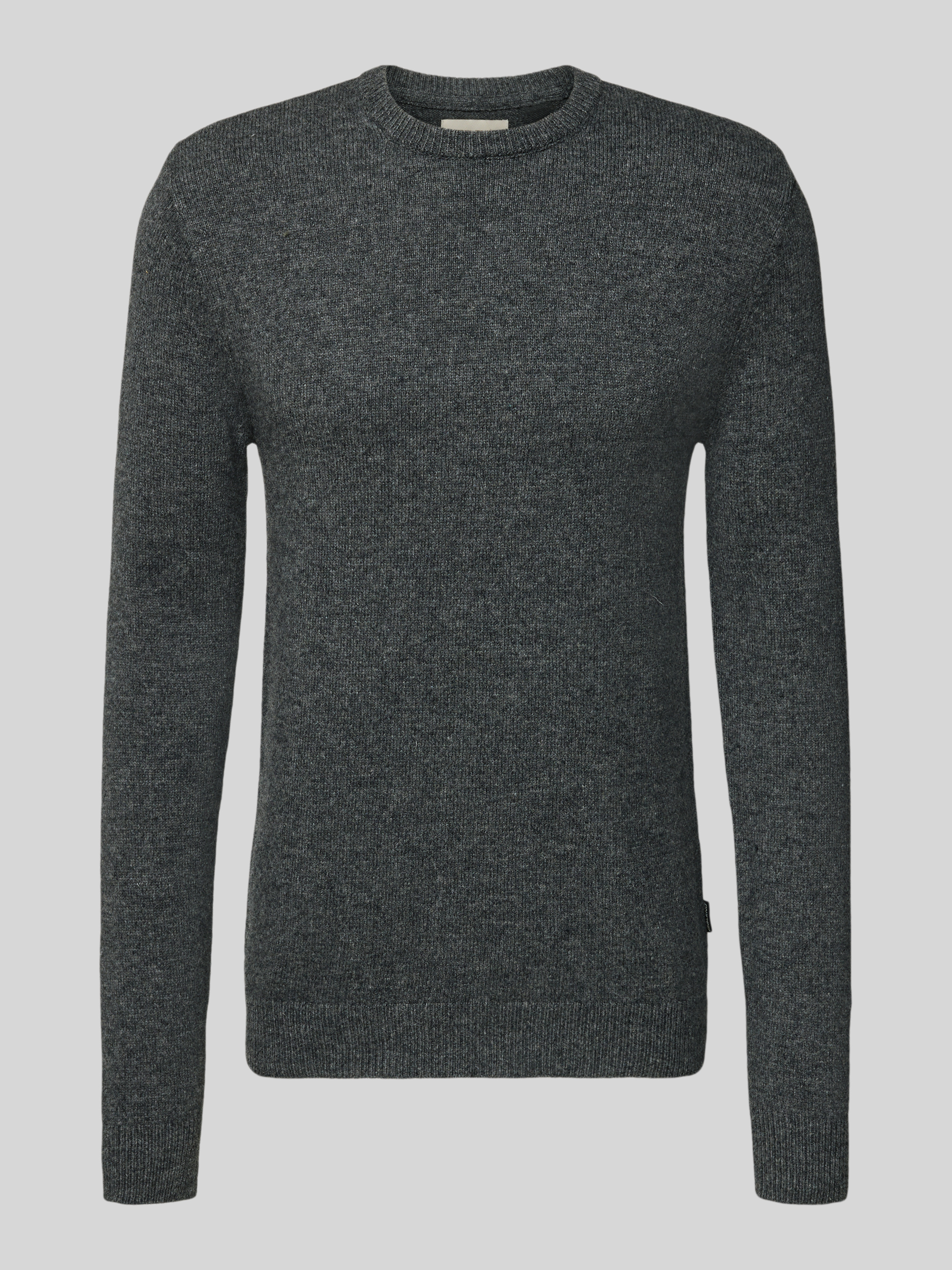 Gebreide pullover met ribboorden, model 'BRANKO' in donkergrijs gemêleerd