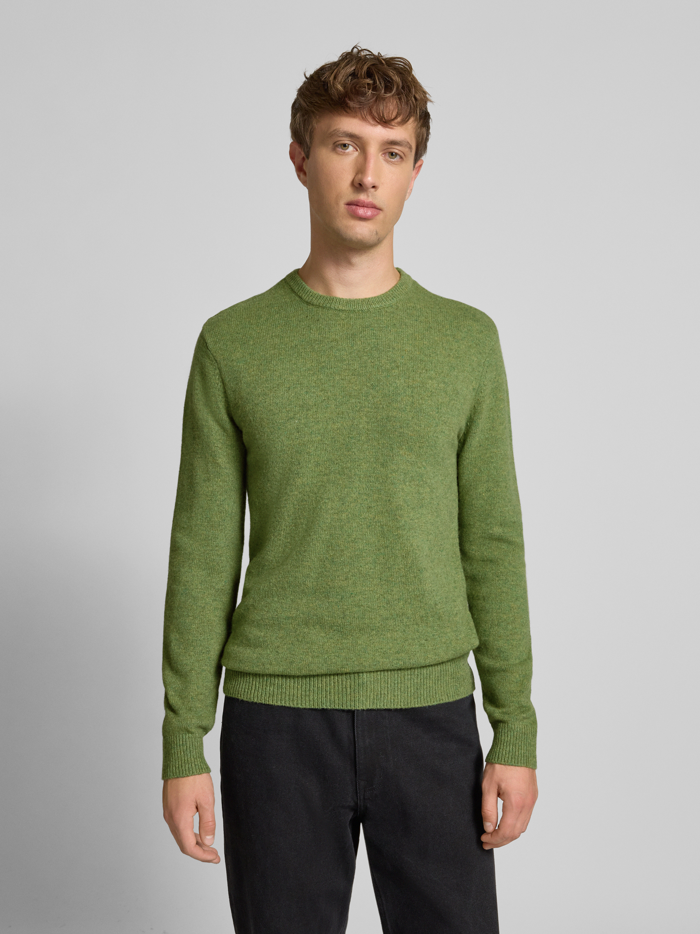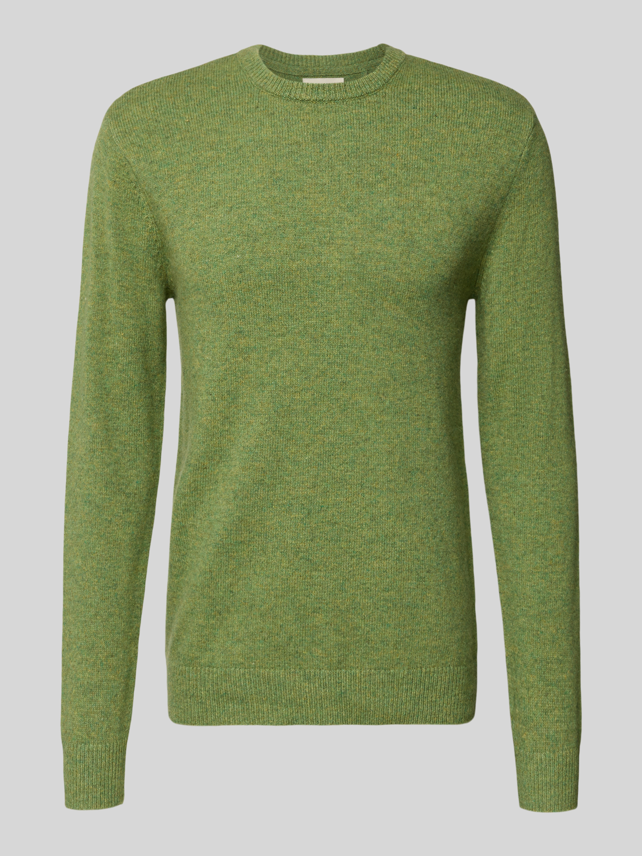 Gebreide pullover met ribboorden, model 'BRANKO' in olijfgroen gemêleerd