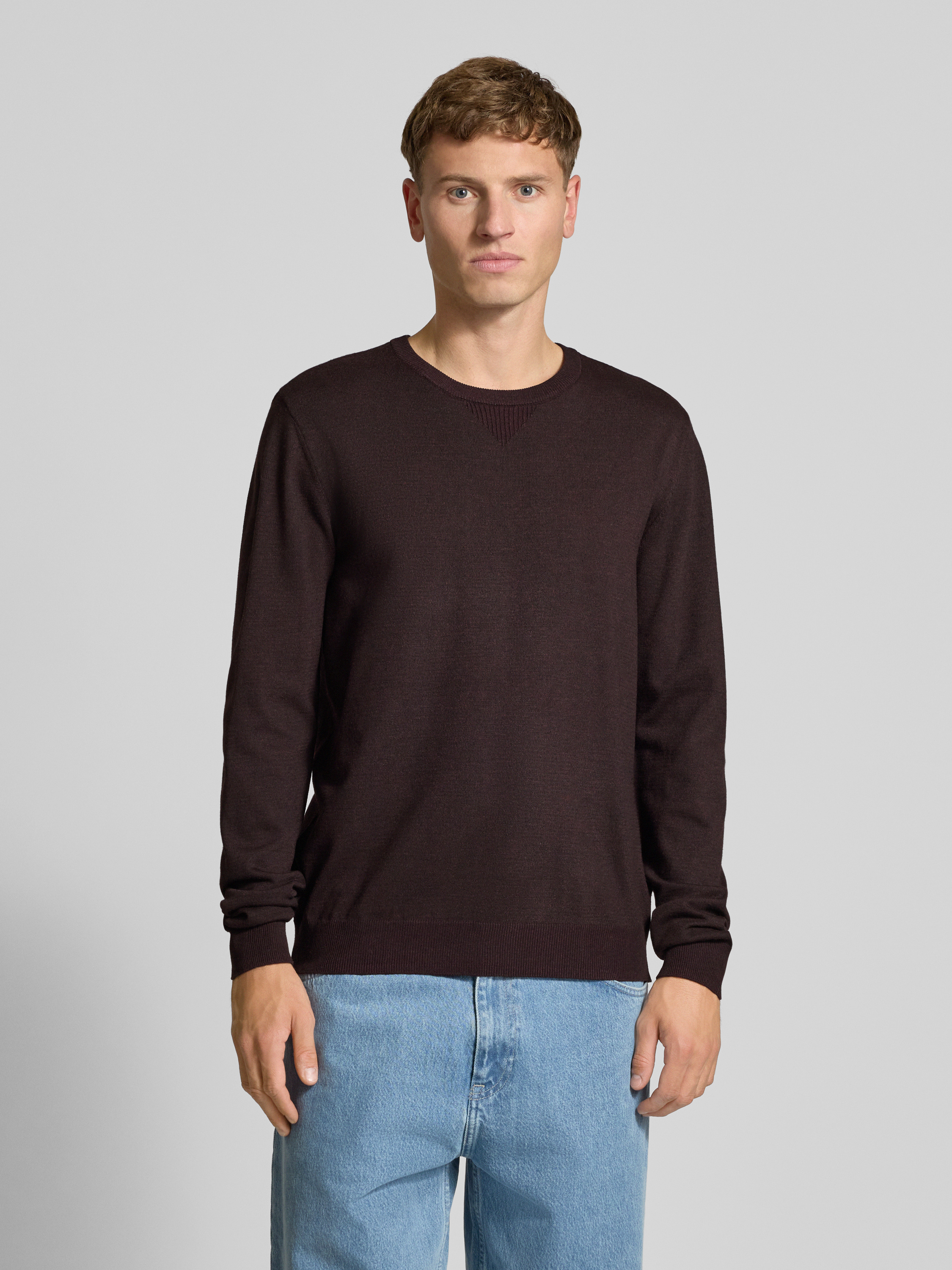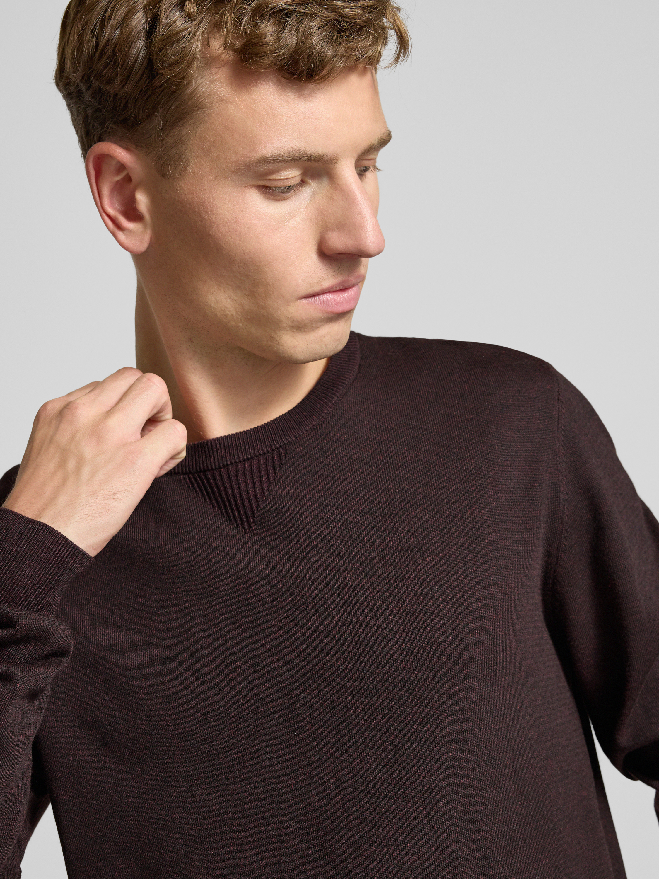 Gebreide pullover met ronde hals, model 'Bruton' in bordeaux