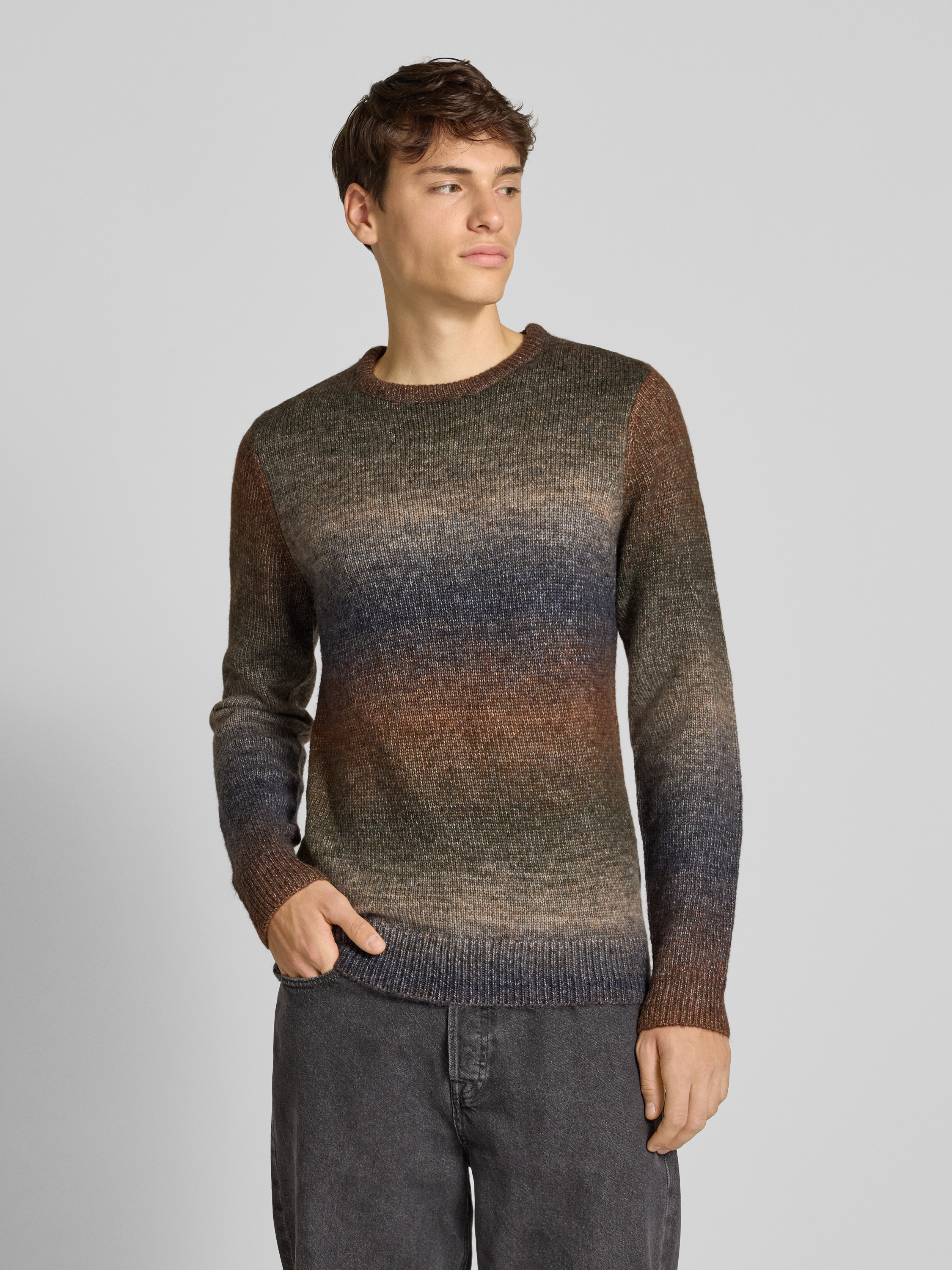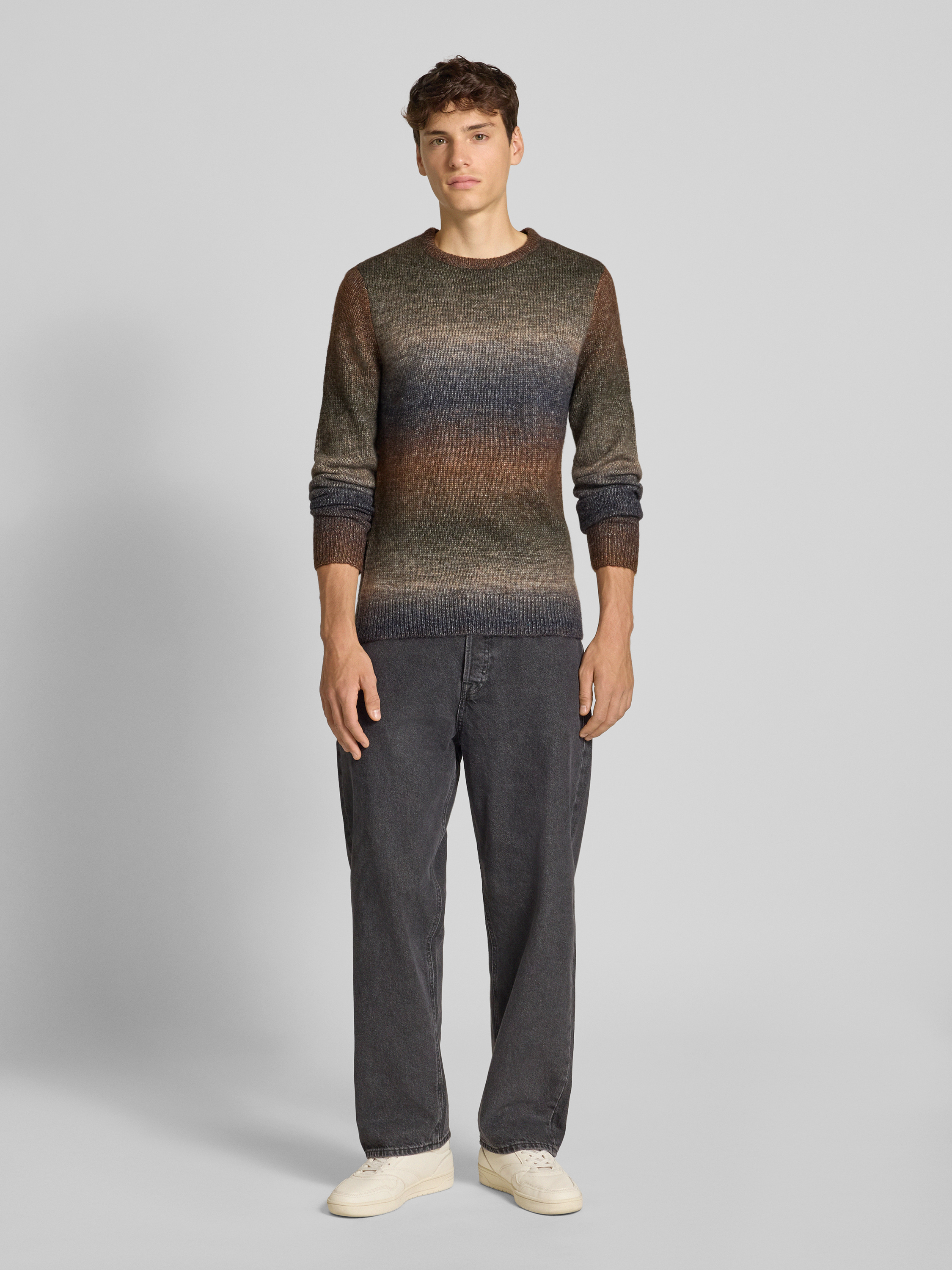 Gebreide pullover met ronde hals, model 'DANNIE' in olijfgroen