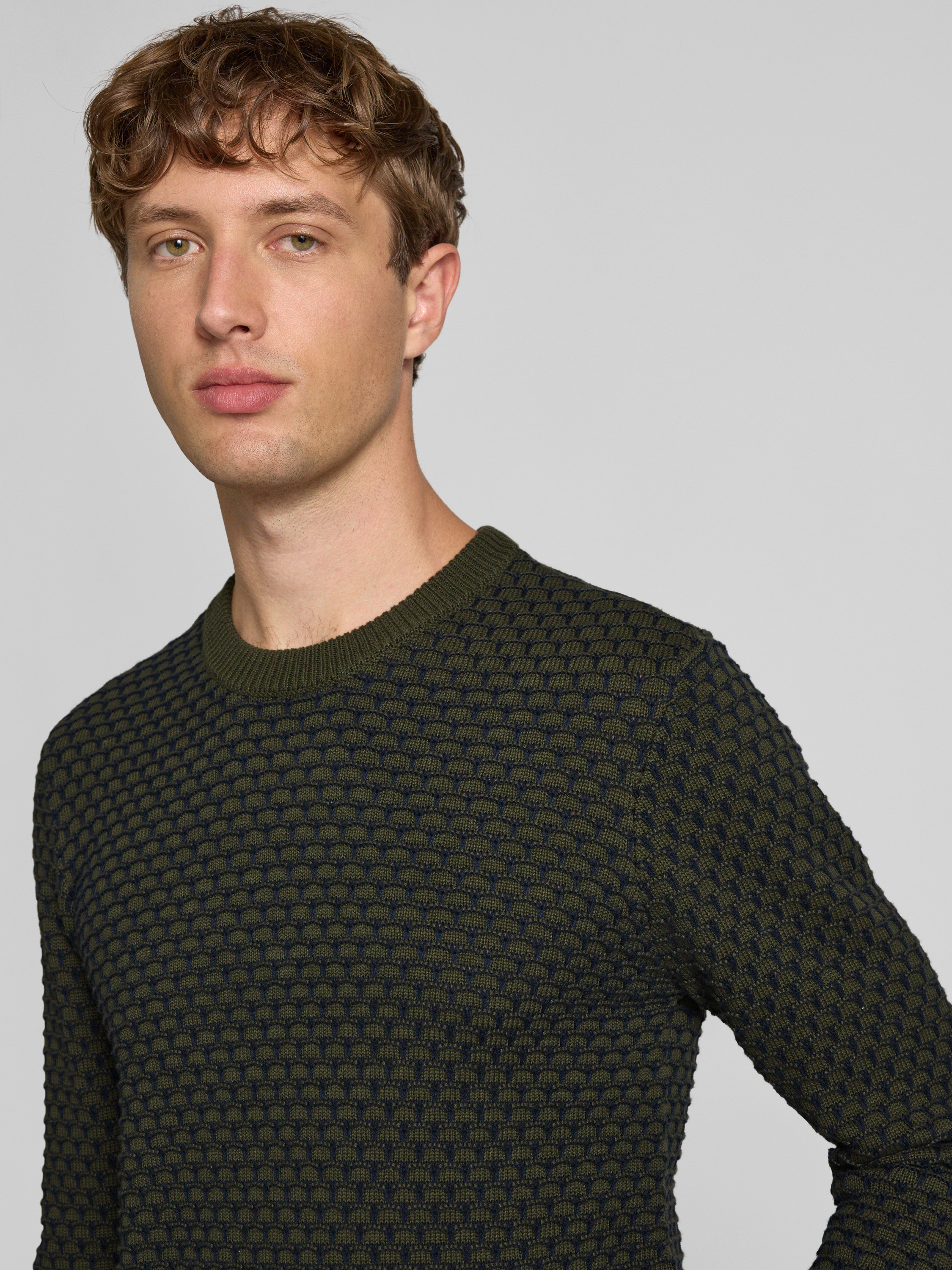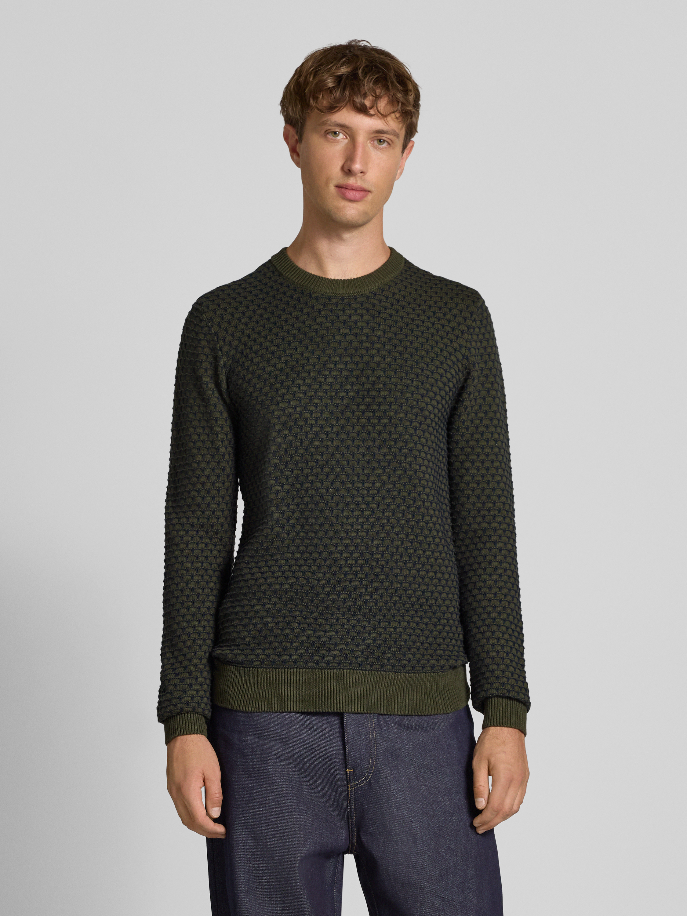 Gebreide pullover met ronde hals, model 'DONG' in olijfgroen