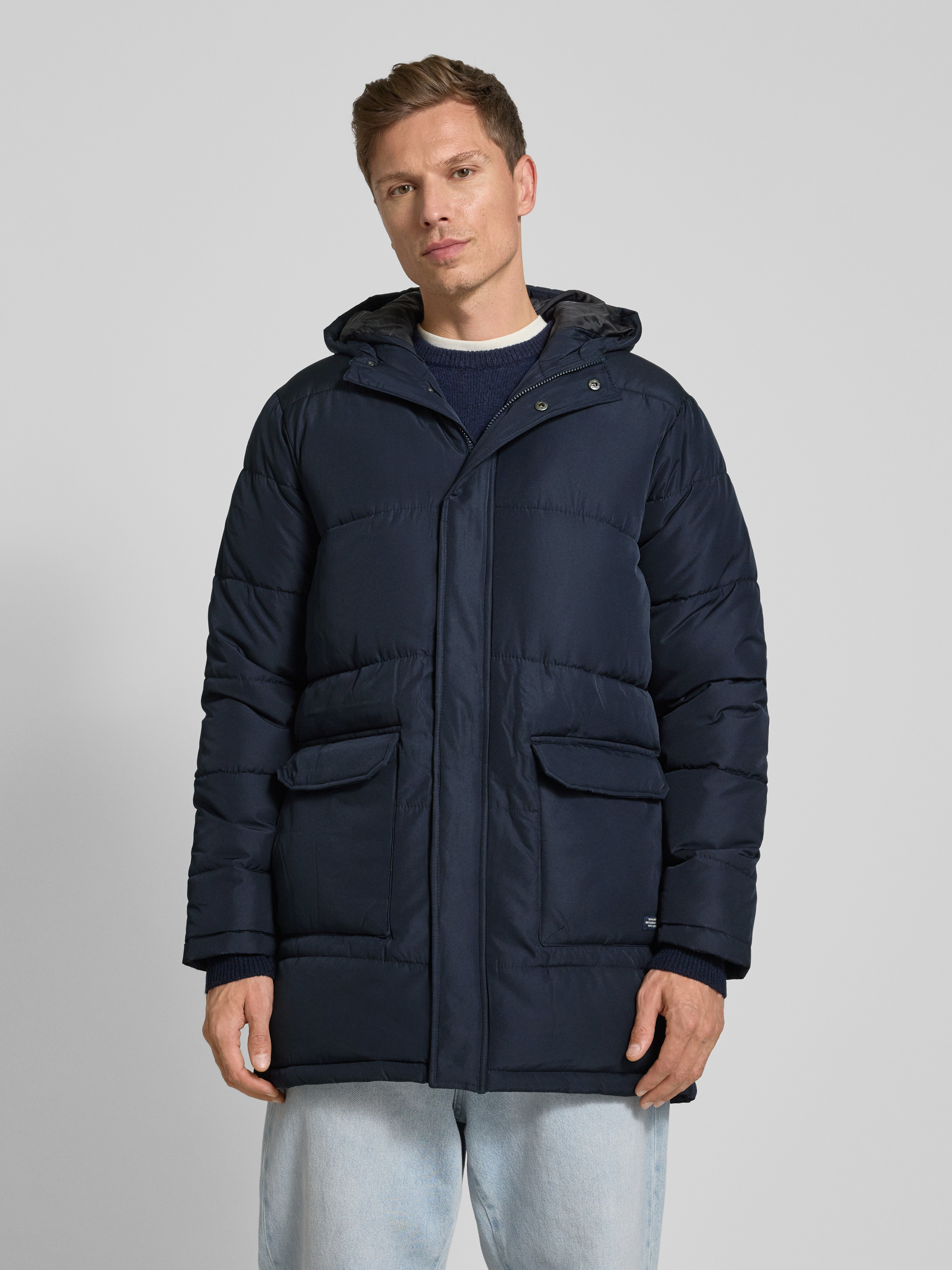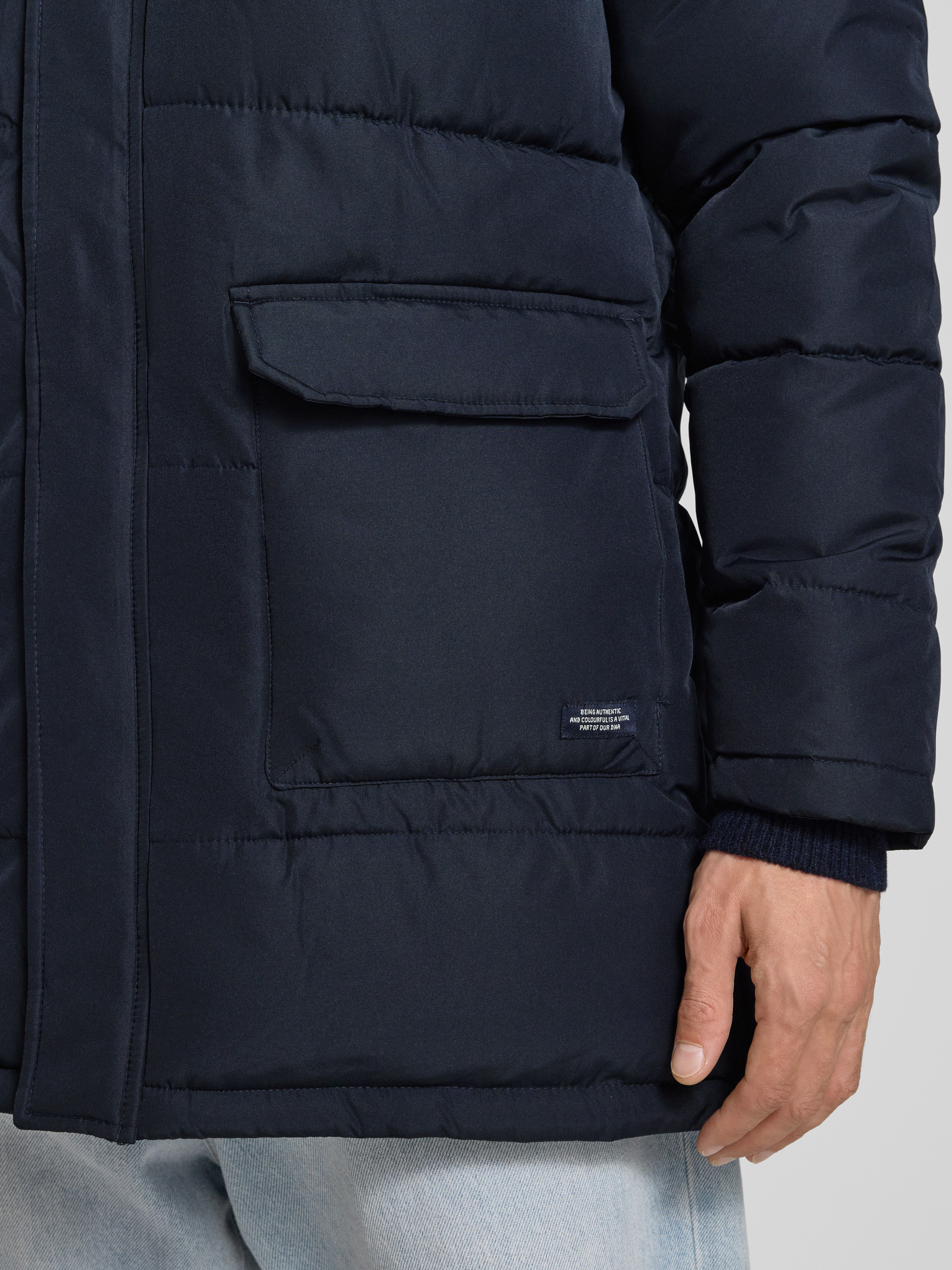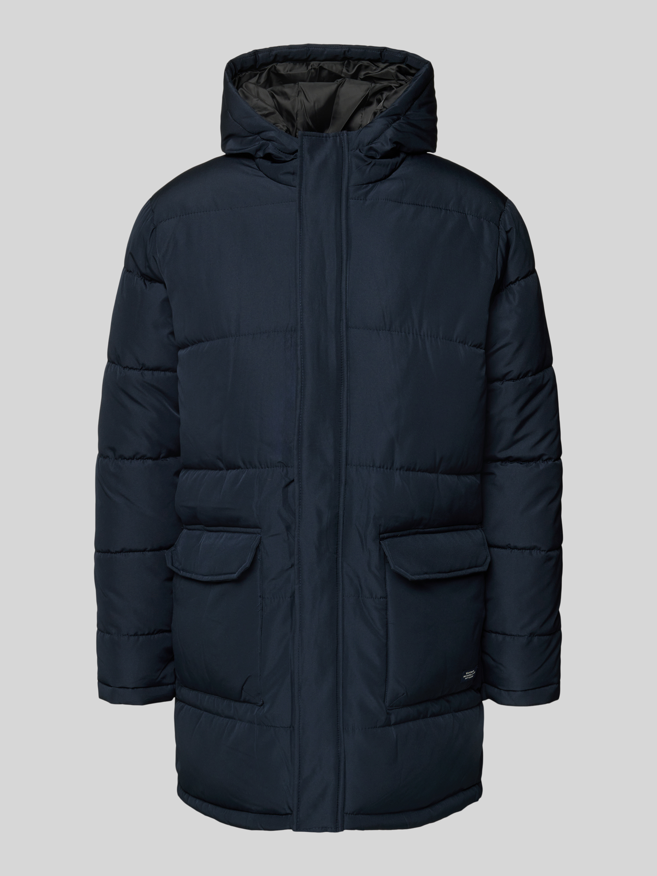 Gewatteerde lange jas met klepzakken, model 'ONLGABI' in donkerblauw