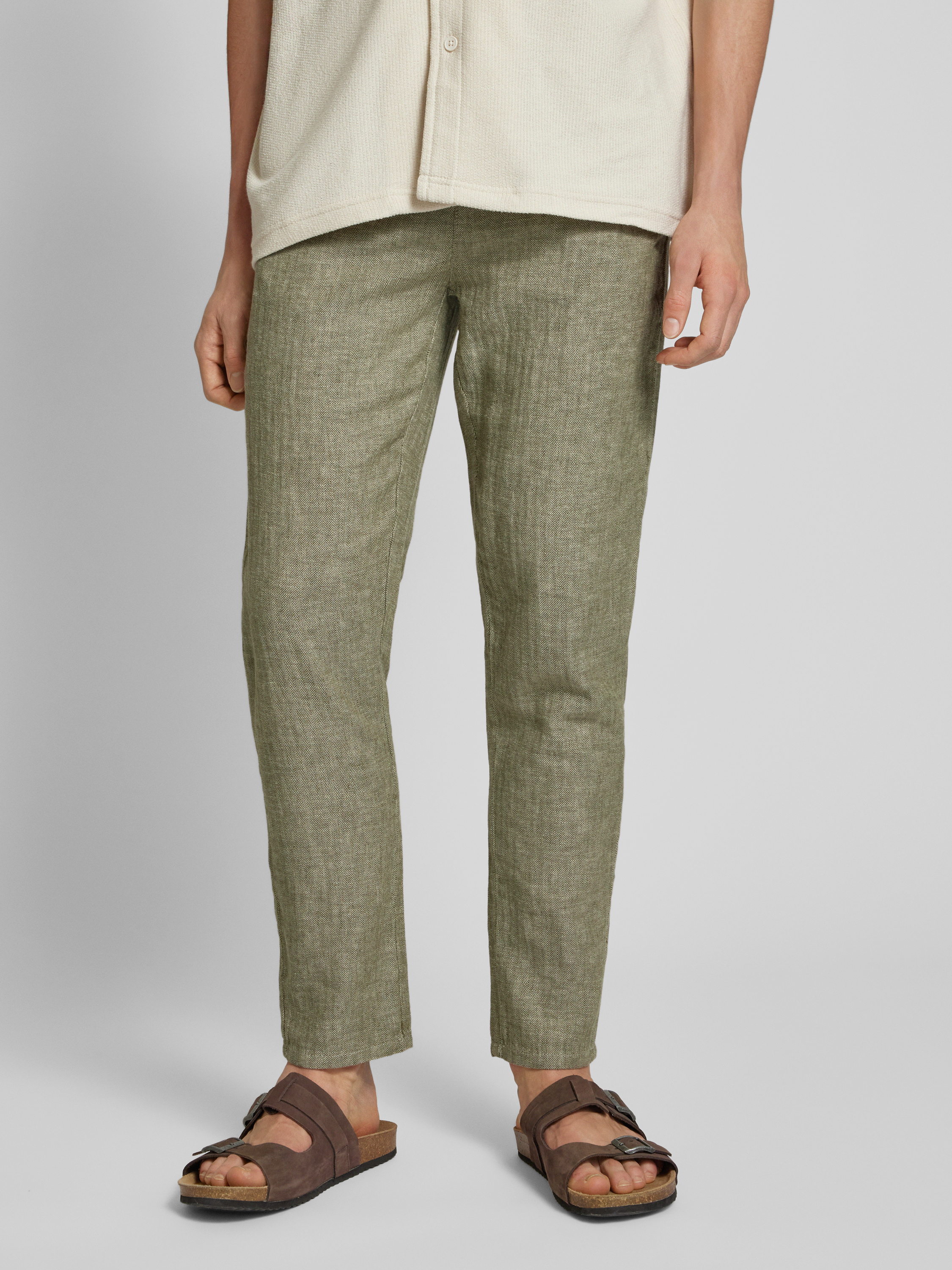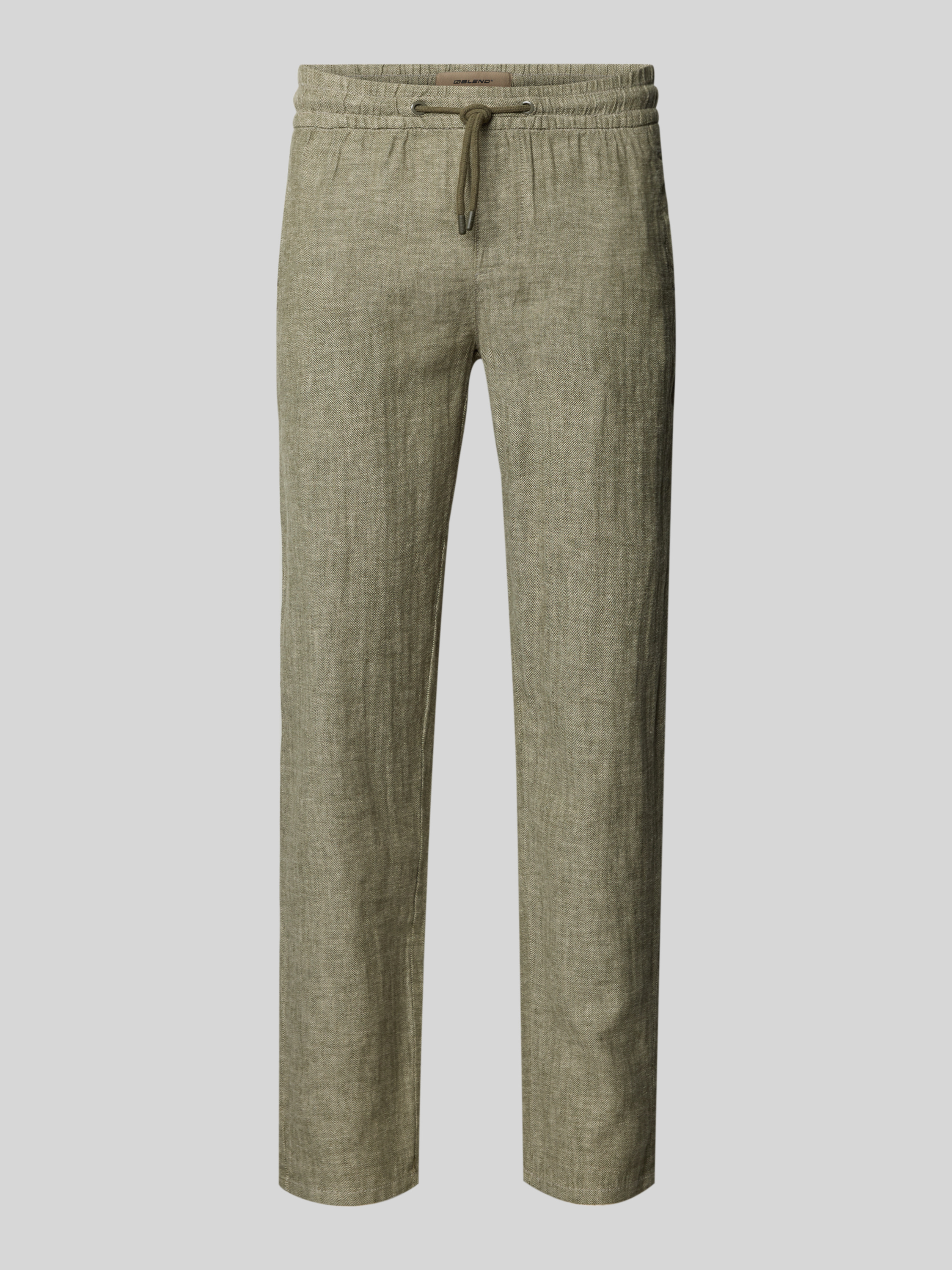 Regular fit stoffen broek met tunnelkoord, model 'MORGAN' in olijfgroen
