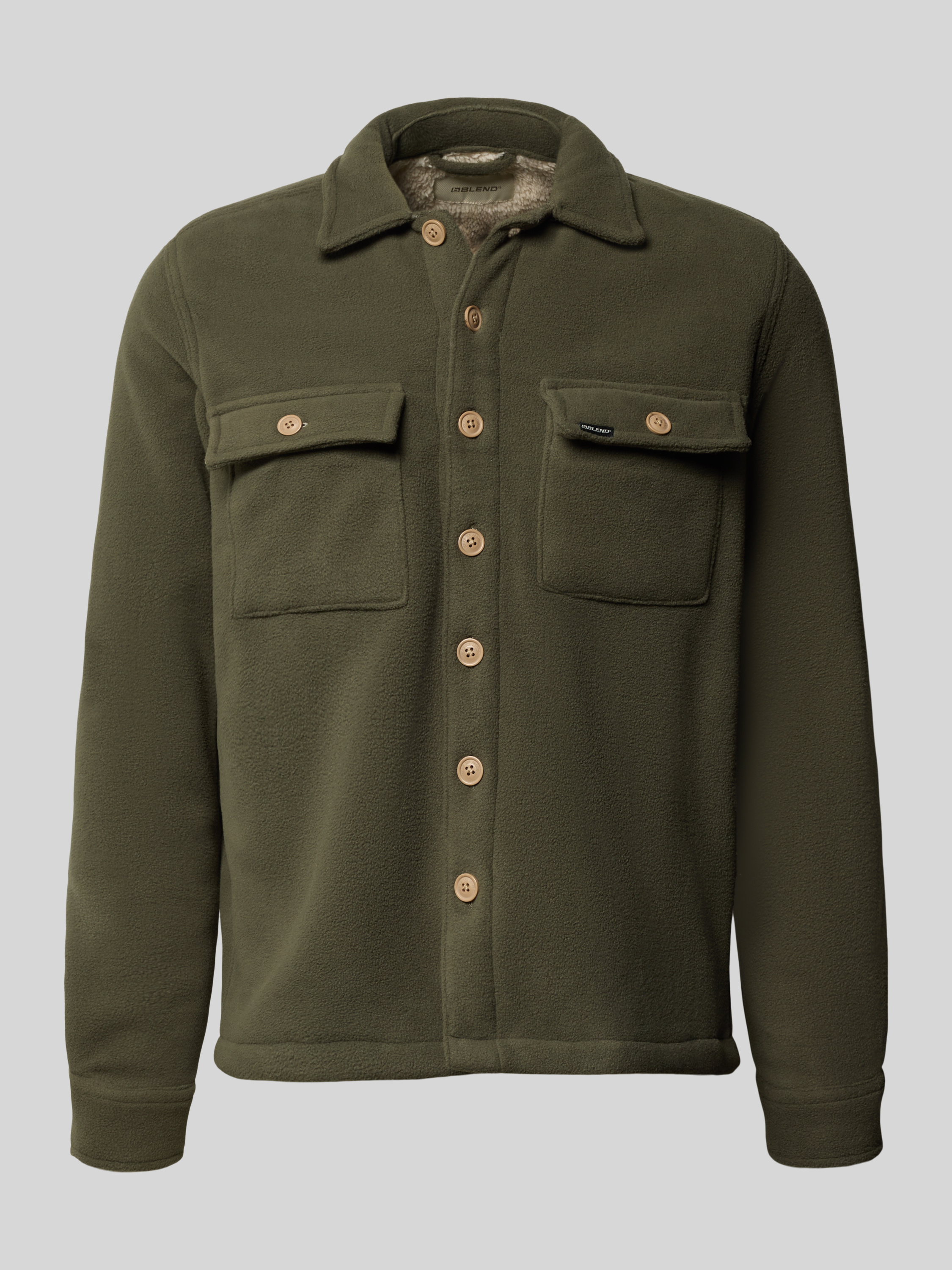 Regular fit vrijetijdsoverhemd met kentkraag, model 'BAKI' in olijfgroen